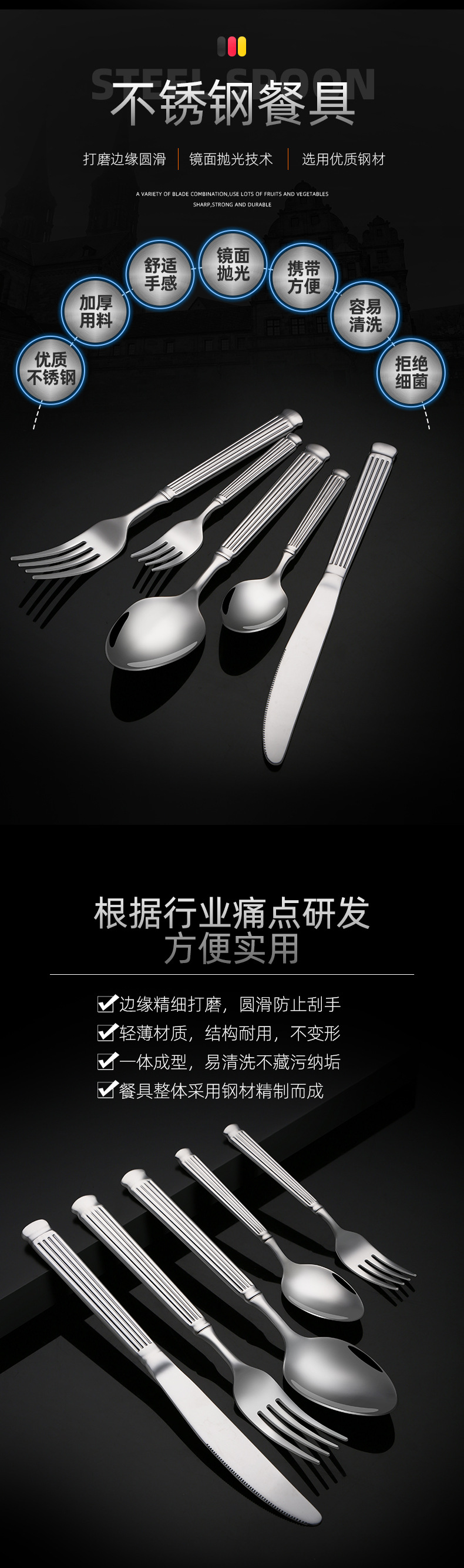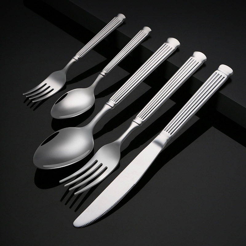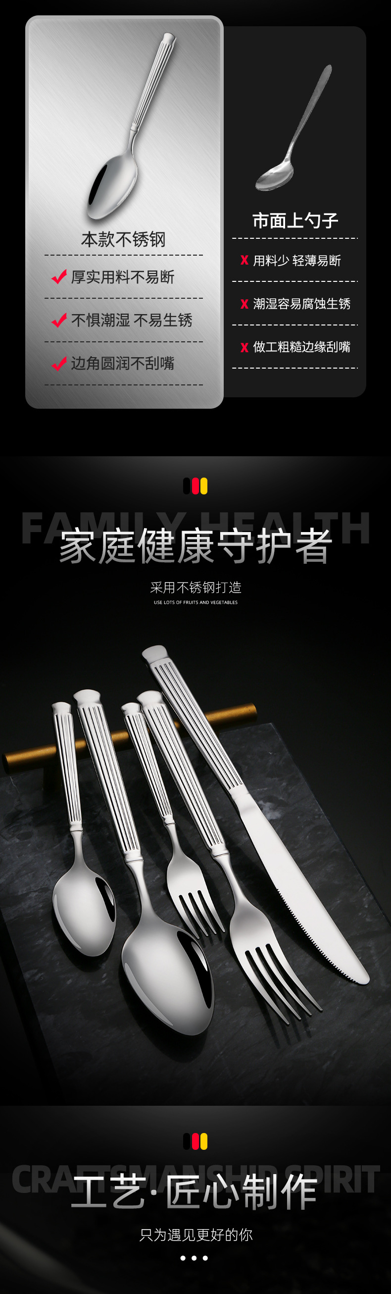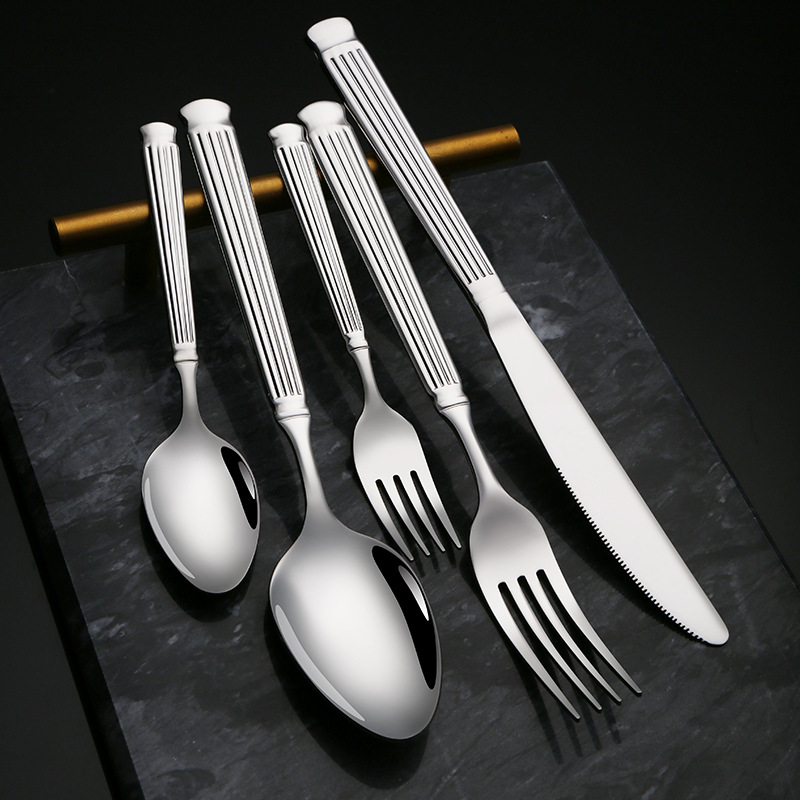 국경 간 스테인레스 스틸 로마 기둥 식기 티타늄 서양 스테이크 나이프, 포크 및 스푼 5개 메인 세트