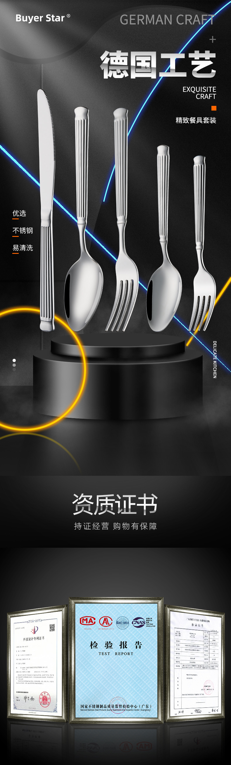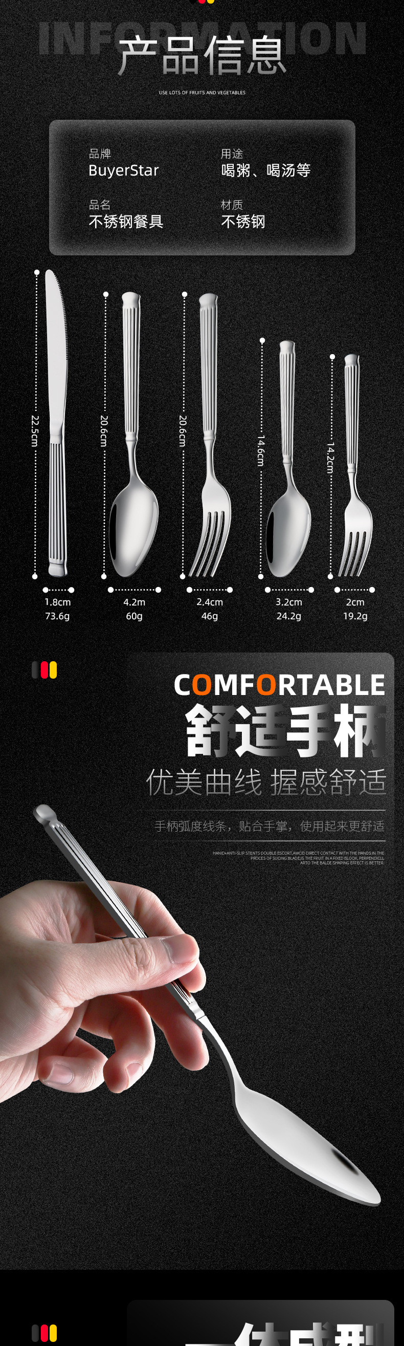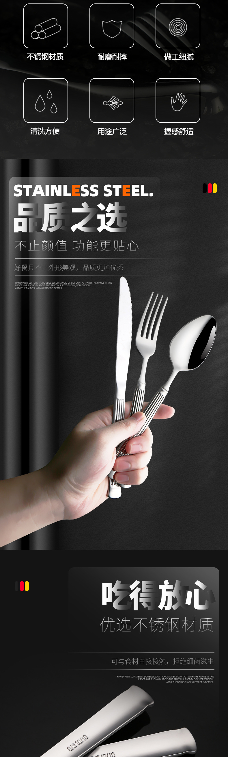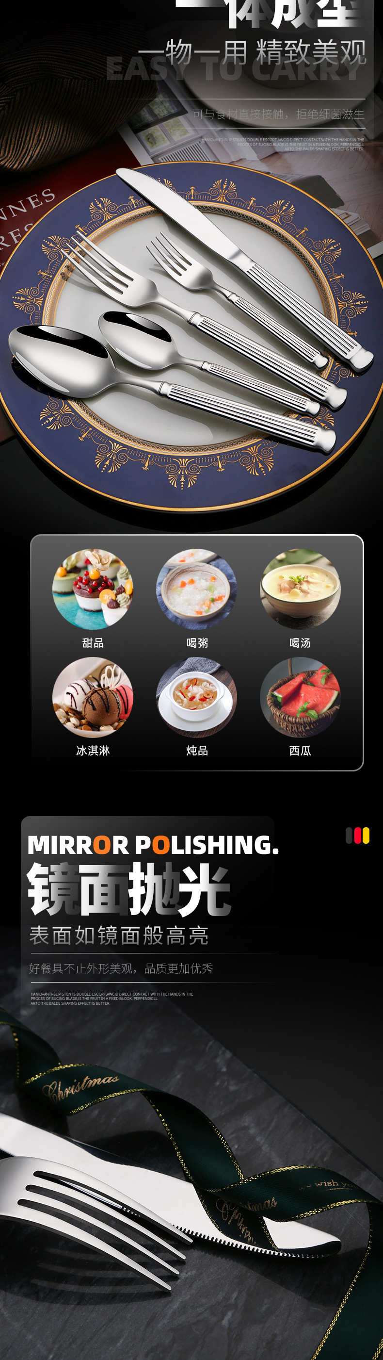 국경 간 스테인레스 스틸 로마 기둥 식기 티타늄 서양 스테이크 나이프, 포크 및 스푼 5개 메인 세트