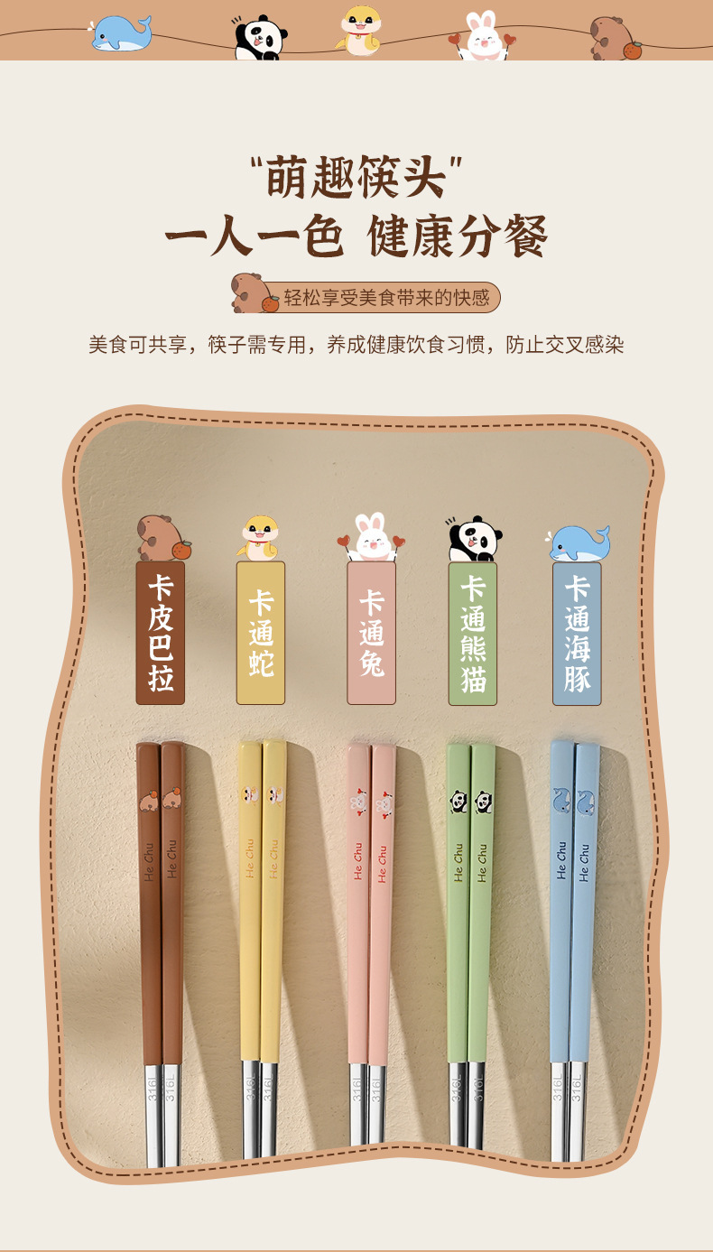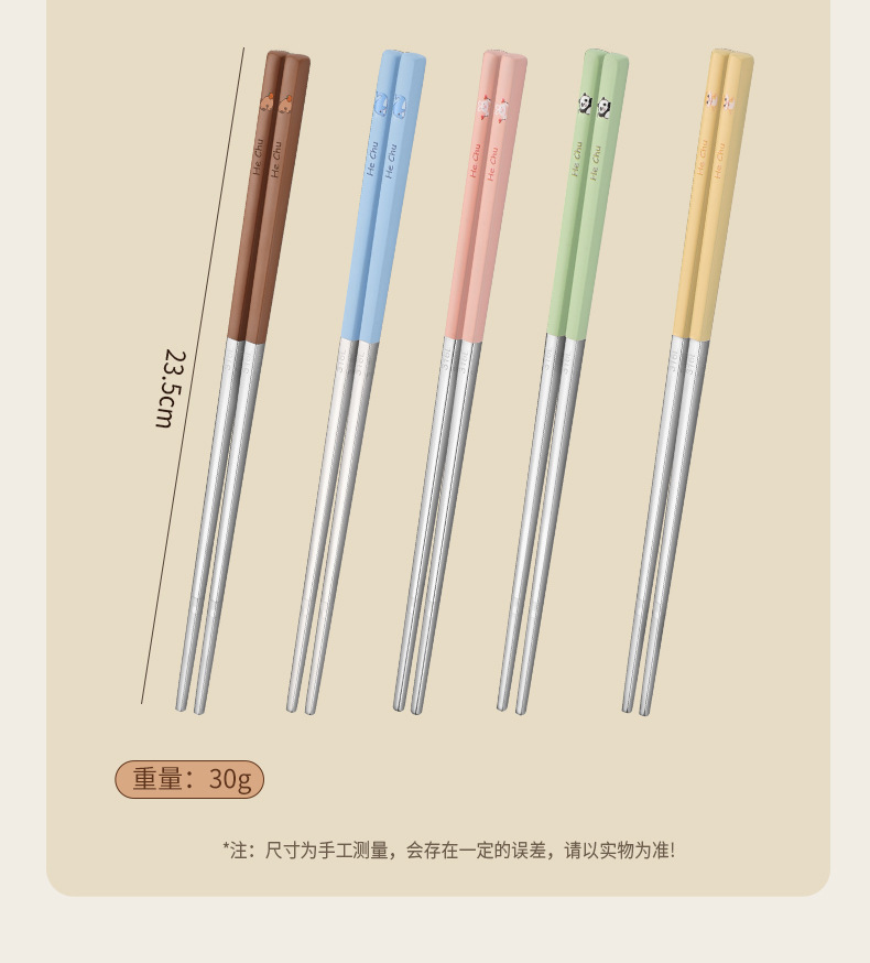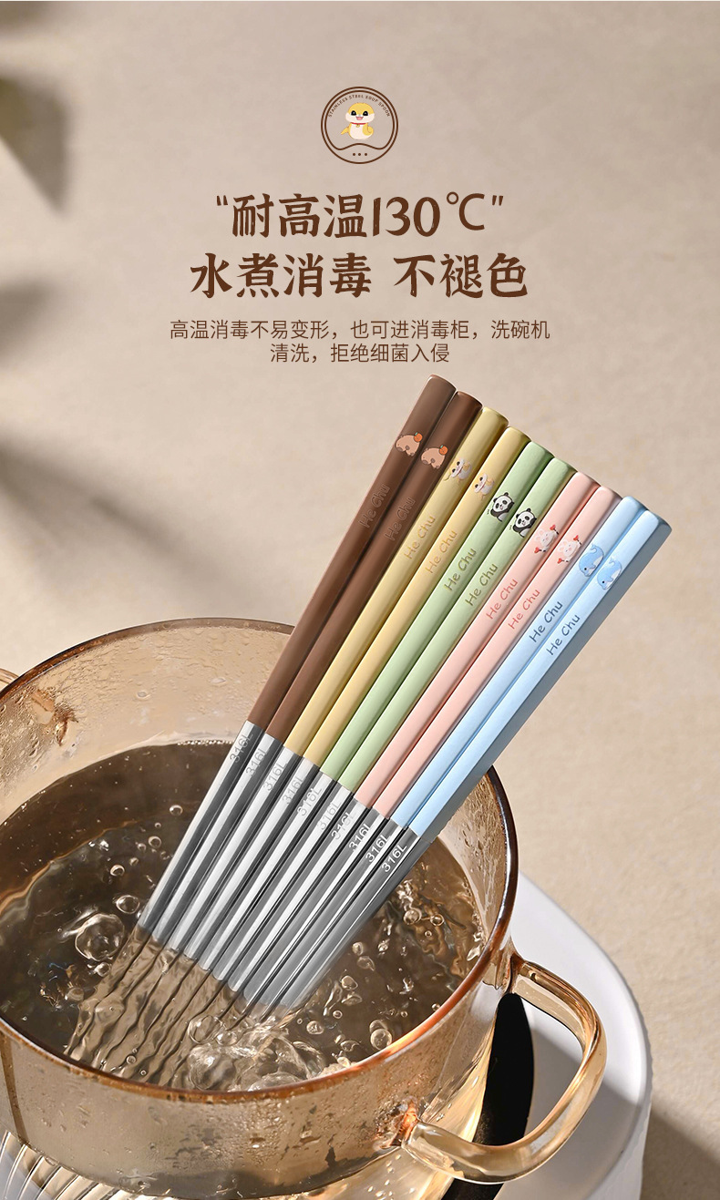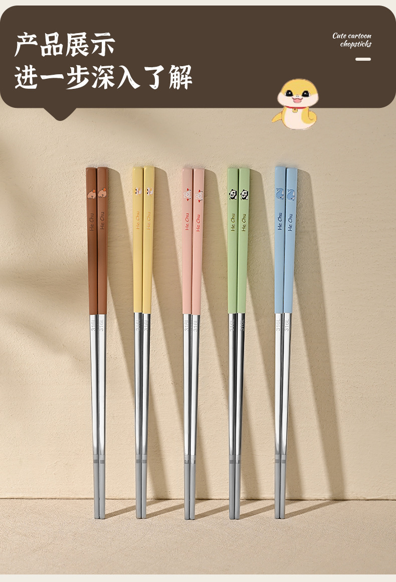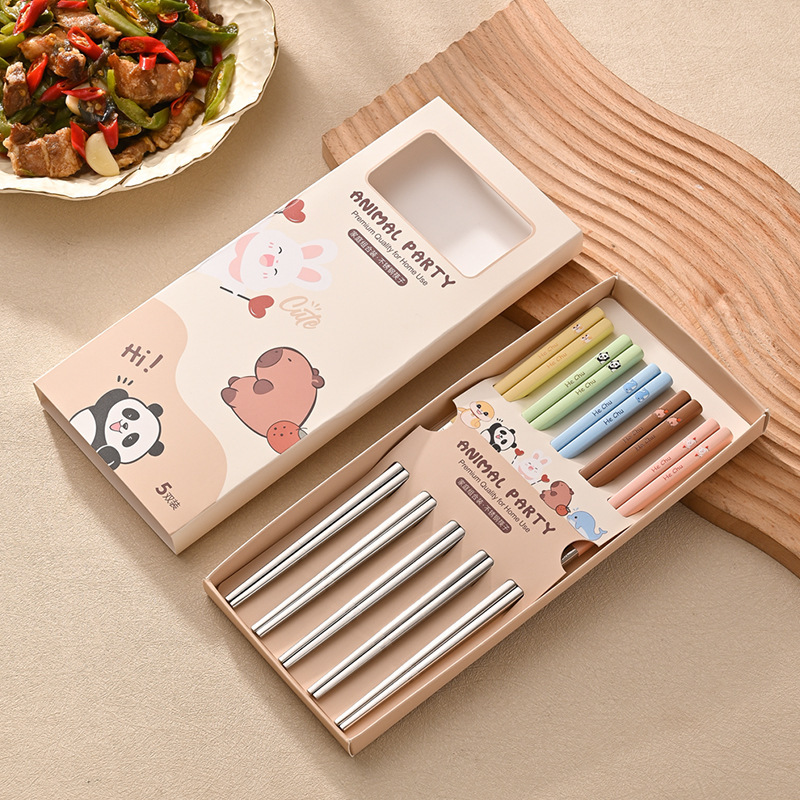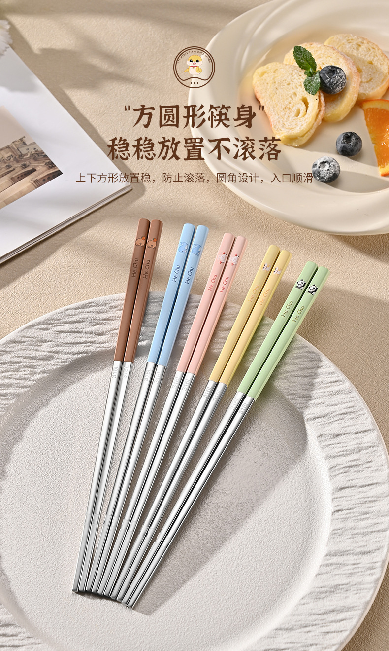316 식품 등급 스테인리스 식기류 젓가락, 컬러풀한 만화 로고, 가정용 고급 젓가락 세트, 미끄럼 방지 및 화상 방지