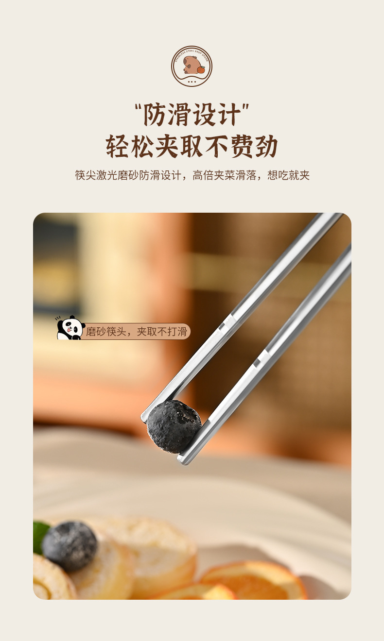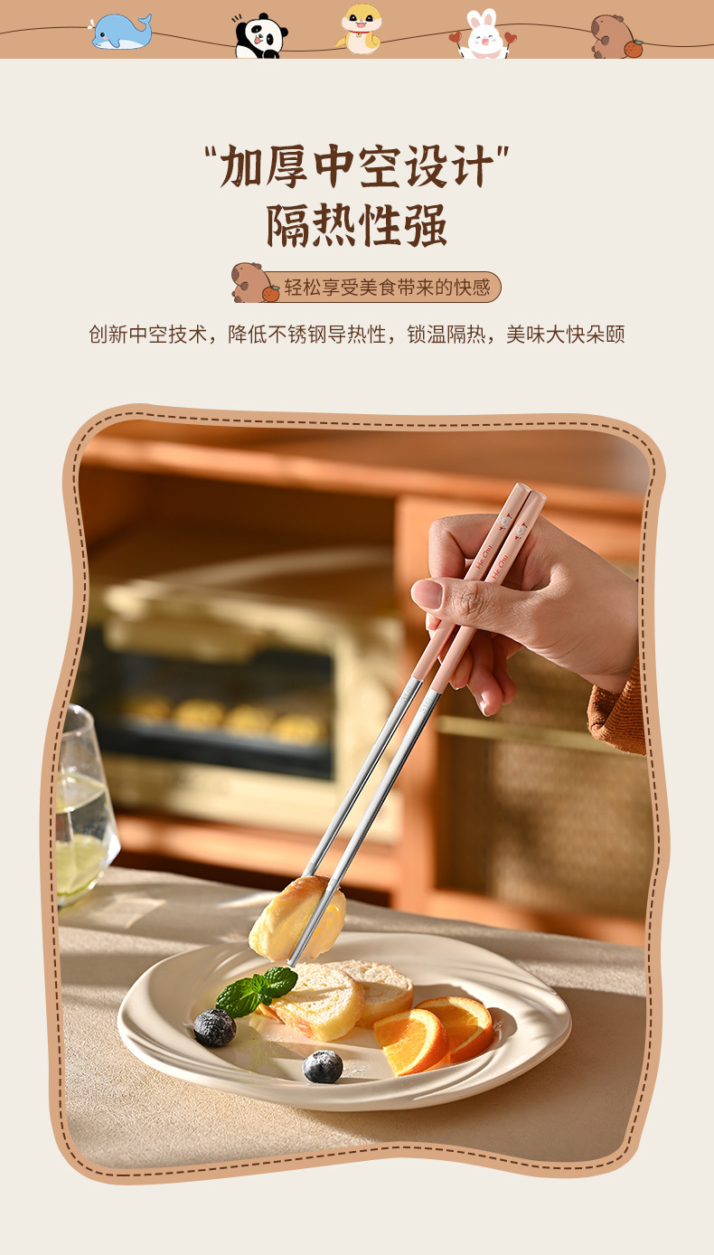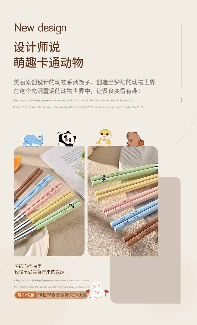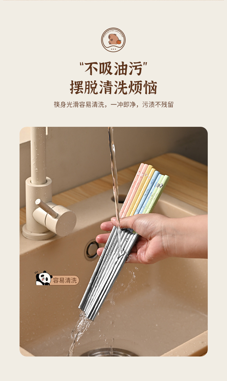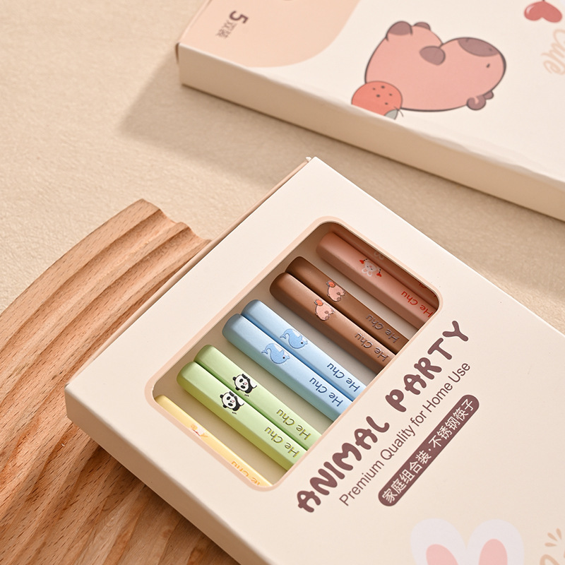 316 식품 등급 스테인리스 식기류 젓가락, 컬러풀한 만화 로고, 가정용 고급 젓가락 세트, 미끄럼 방지 및 화상 방지