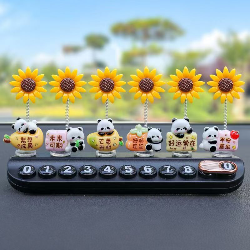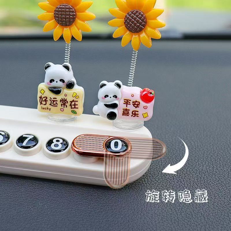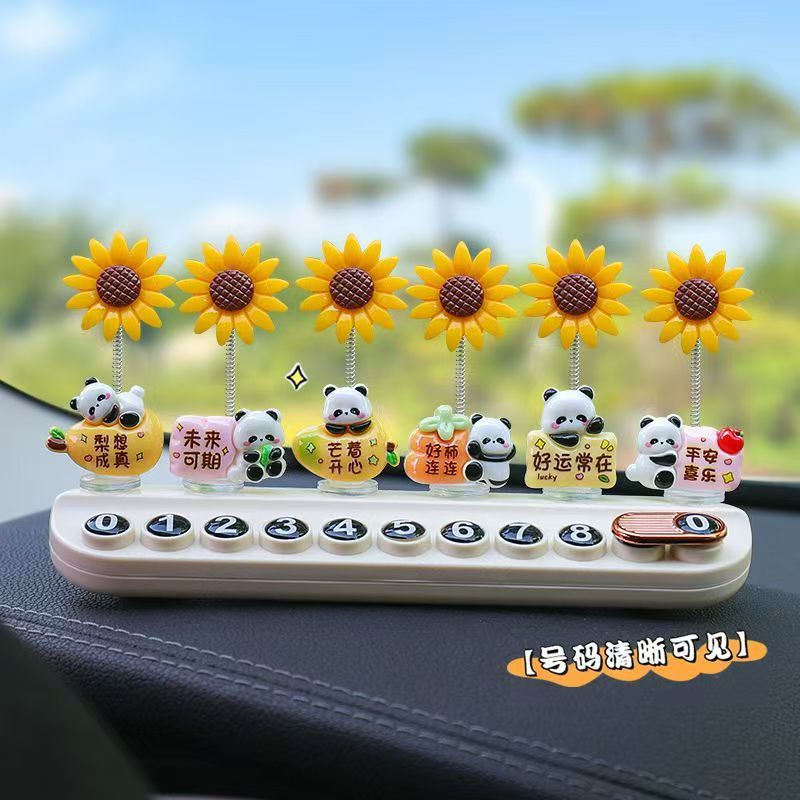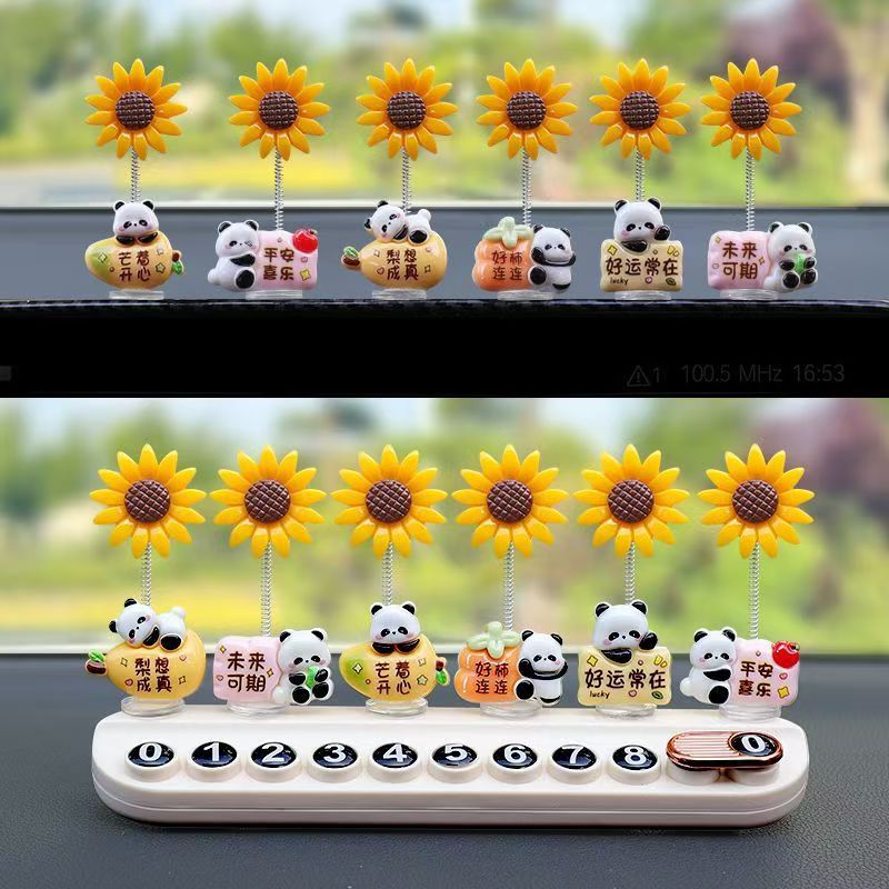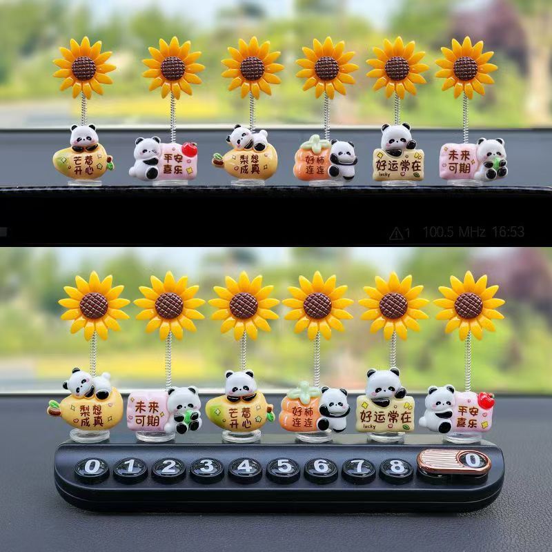 자동차 장식품, 귀여운 팬더, 해바라기, 중앙 제어 화면, 감압 인형, 자동차 실내 장식품, 새로운 인터넷 연예인 장식품