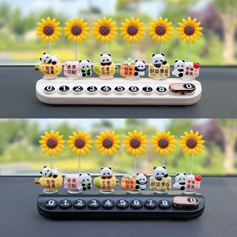 흔들리는 머리 팬더 해바라기 + 블랙 아로마테라피 주차 표시