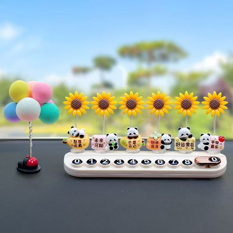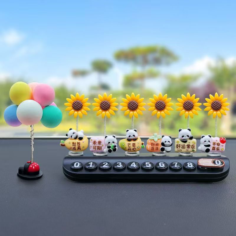흔들리는 머리 팬더 해바라기 + 베이지 아로마테라피 주차 표시 + 다채로운 풍선
