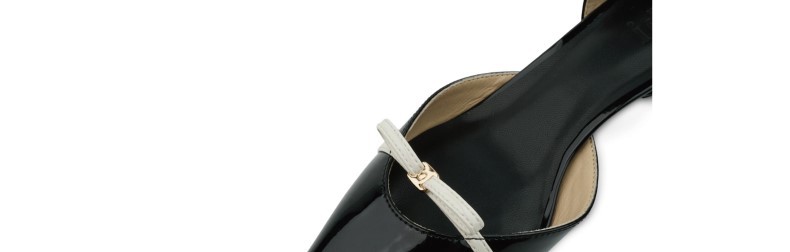 재고 있음: 포인티드 토, 리본, 메탈 버클, 앞굽이 막힌 디자인, 얕은 입구, 얇은 굽 샌들, 여성용 앞굽이 막힌 샌들, 뒷굽이 막힌 샌들