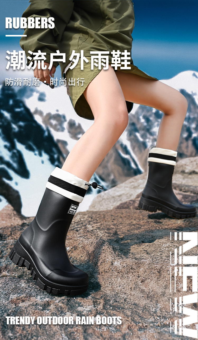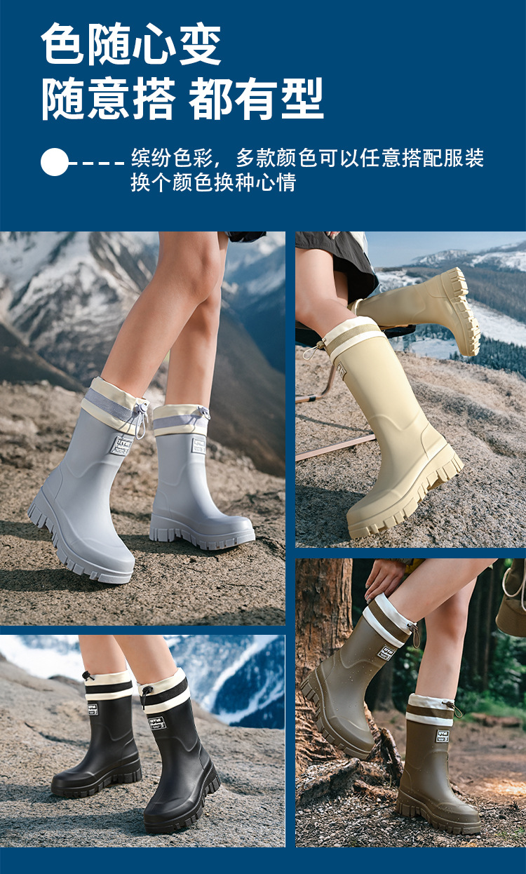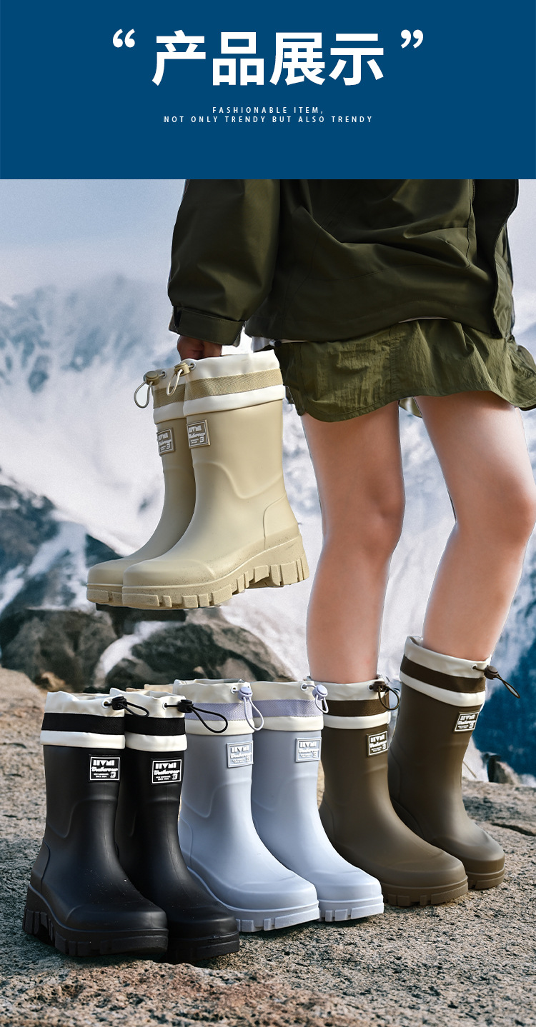 여성용 크로스보더 하이탑 레인부츠, 패셔너블한 레인부츠, 아웃도어 미드탑 방수화, 벨벳으로 두껍고 따뜻한 고무신, 묵은 부츠