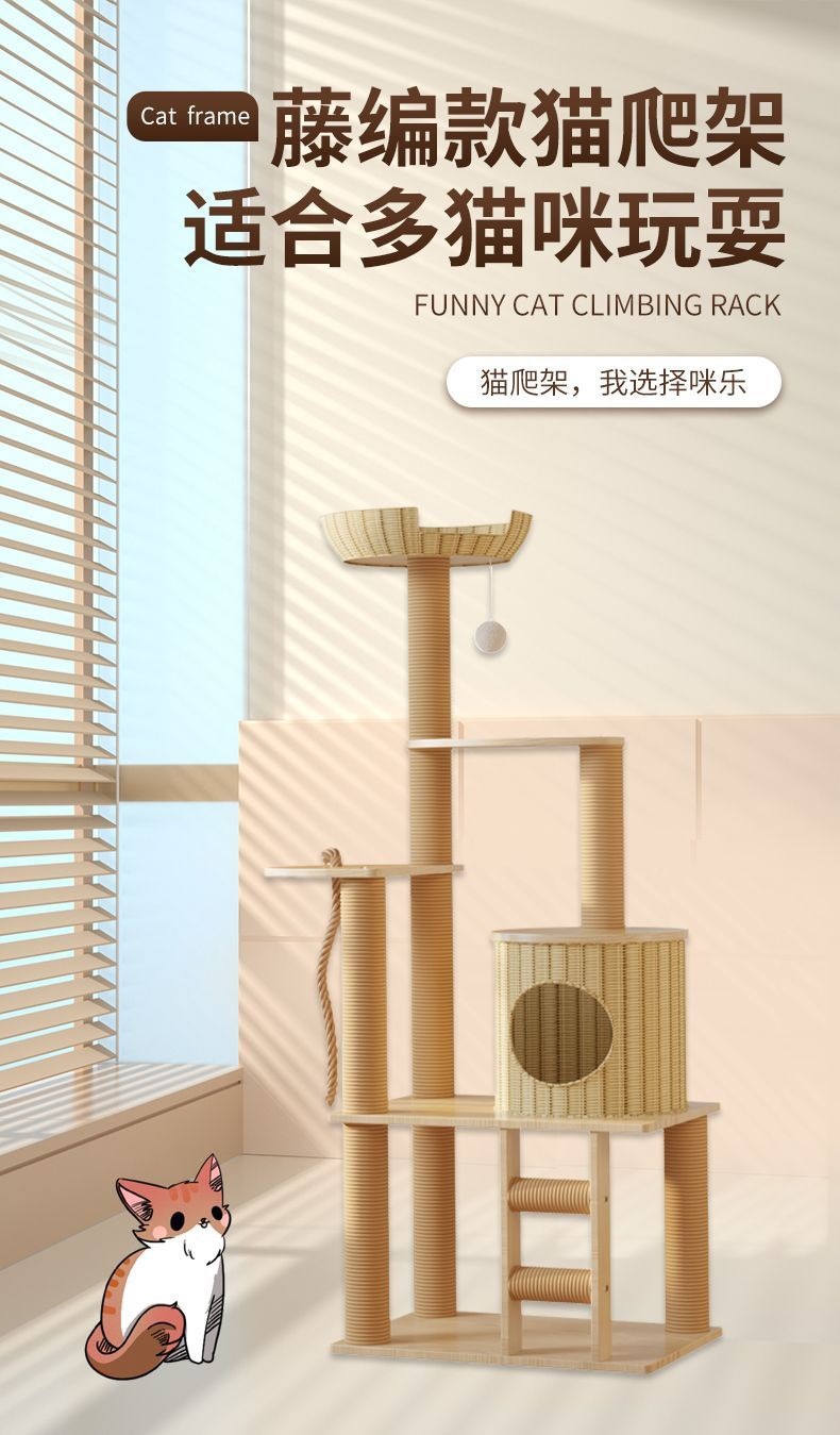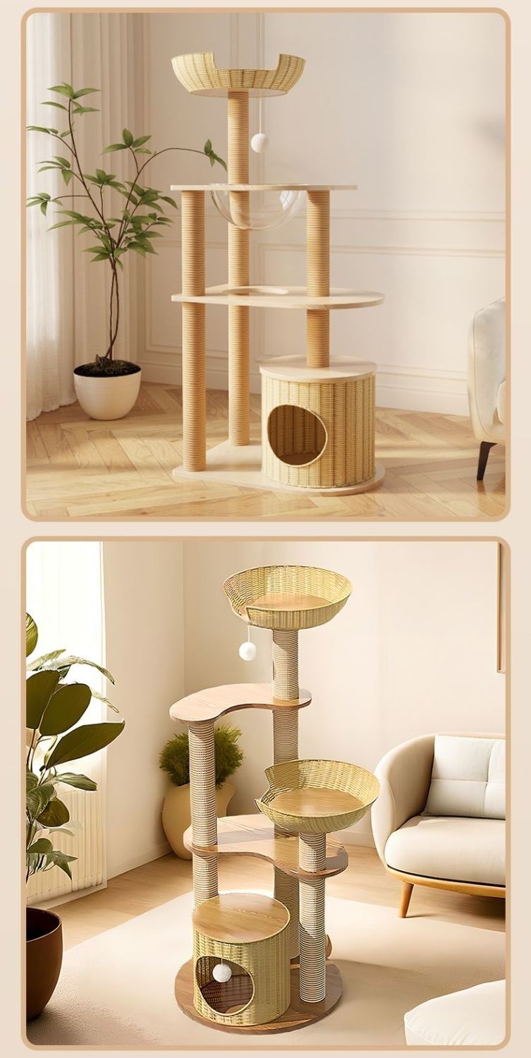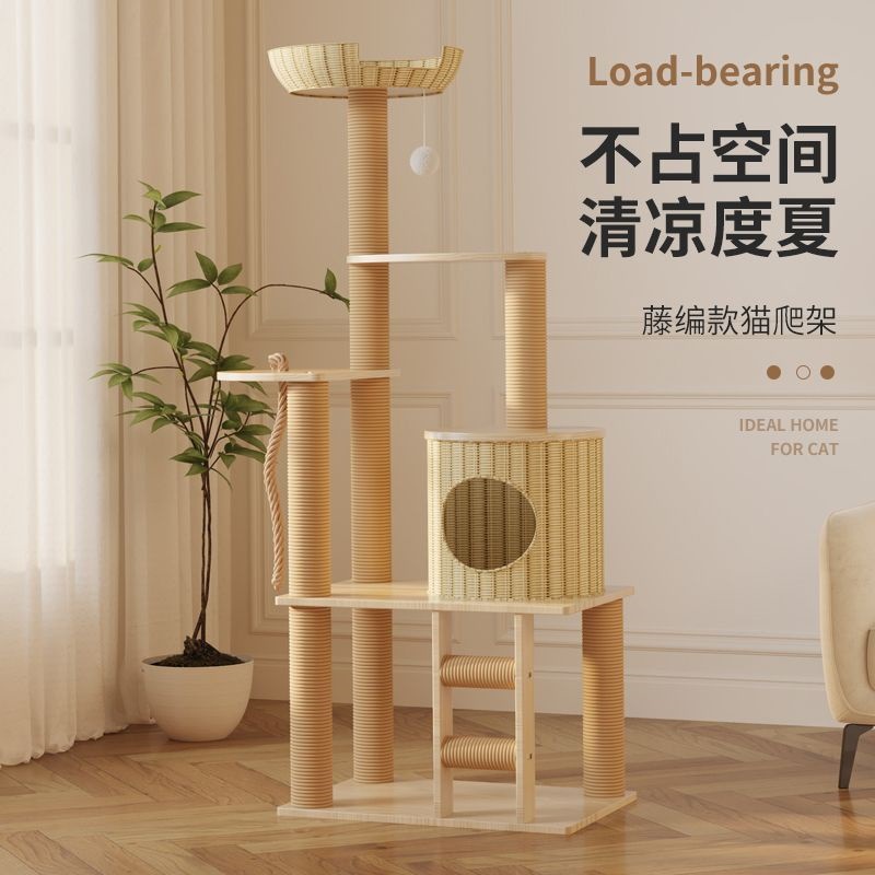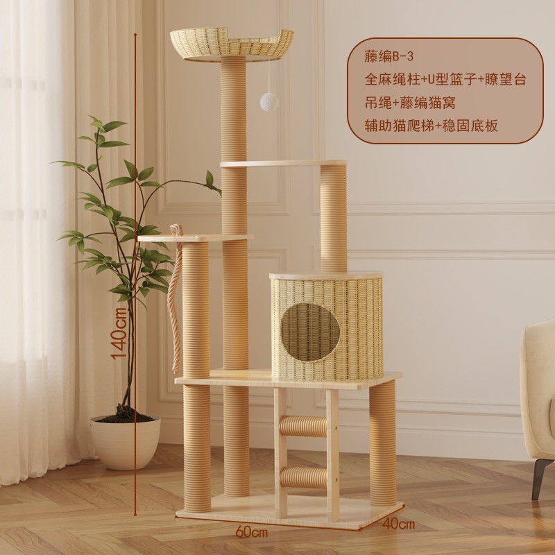 사계절 사용 가능한 등나무 고양이 클라이밍 프레임, 일체형 대형, 공간 절약형, 고급 고양이 우주 캡슐, 고양이 장난감, 고양이 둥지, 고양이 트리