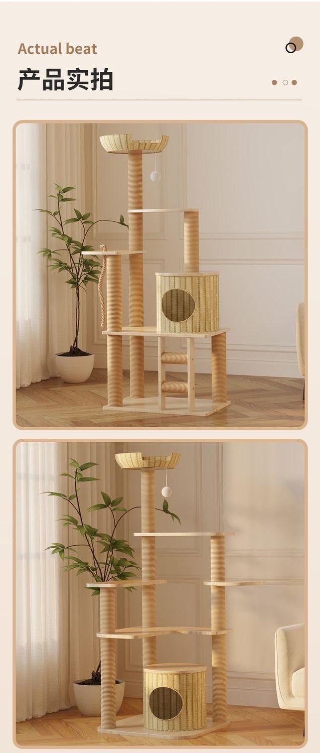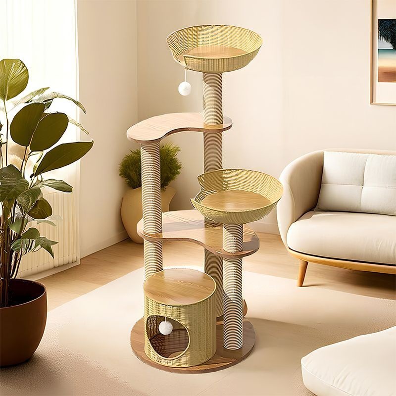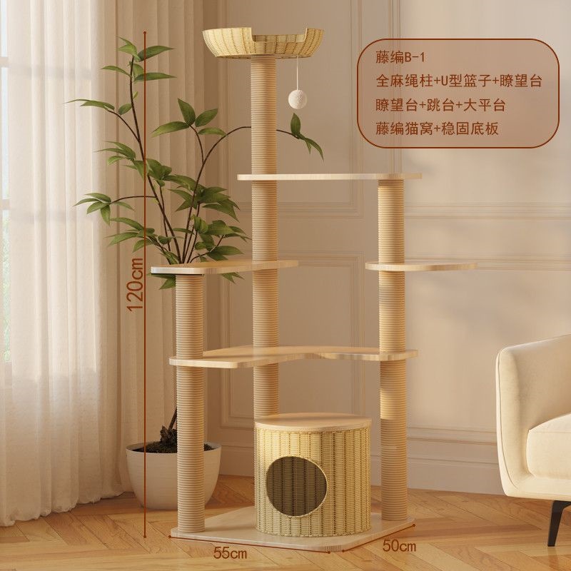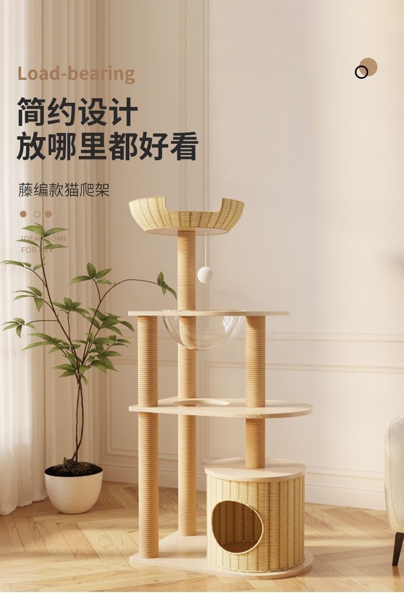 사계절 사용 가능한 등나무 고양이 클라이밍 프레임, 일체형 대형, 공간 절약형, 고급 고양이 우주 캡슐, 고양이 장난감, 고양이 둥지, 고양이 트리