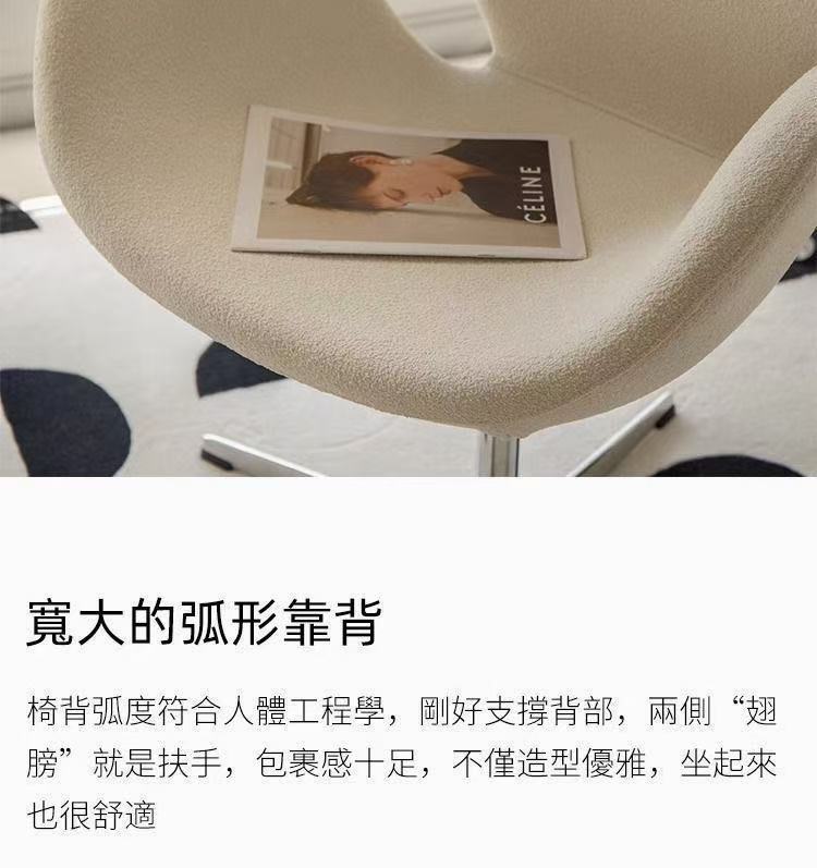 북유럽 심플 회전 싱글 소파 의자 인터넷 연예인 레저 의자 와비사비 크림 스타일 백조 의자 컴퓨터 의자