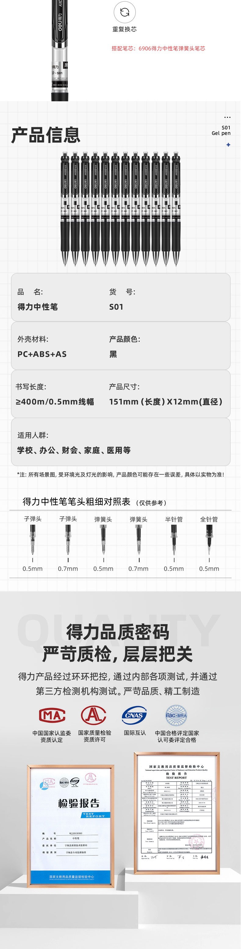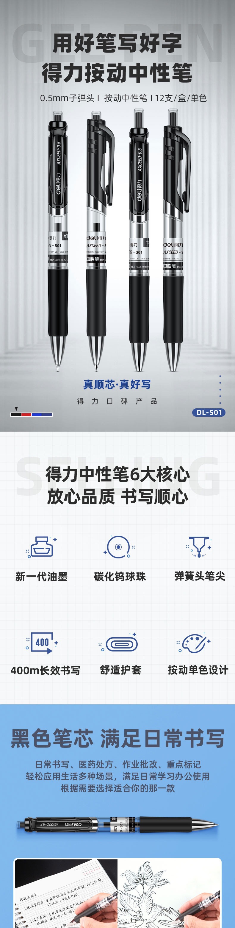 델리(DeLi) 클릭형 젤펜 사무용 클래식 필기구 0.5mm 학생 시험용 S01 애니메이션 디자인
