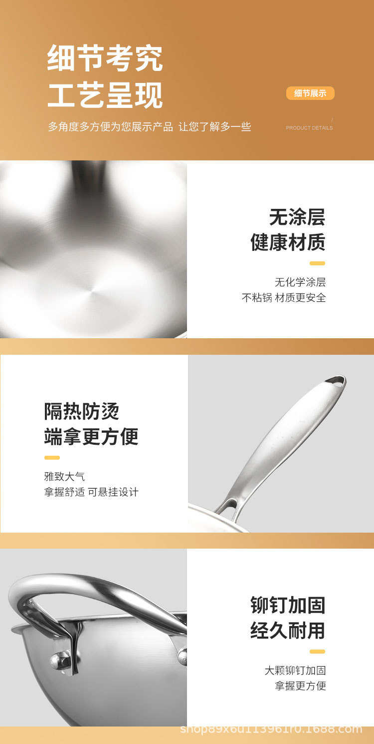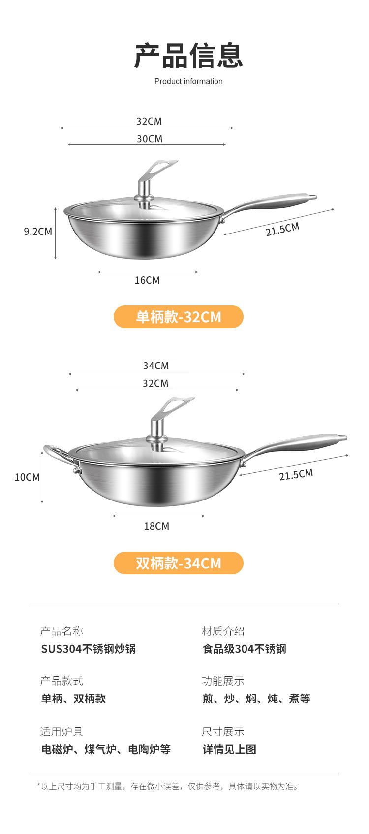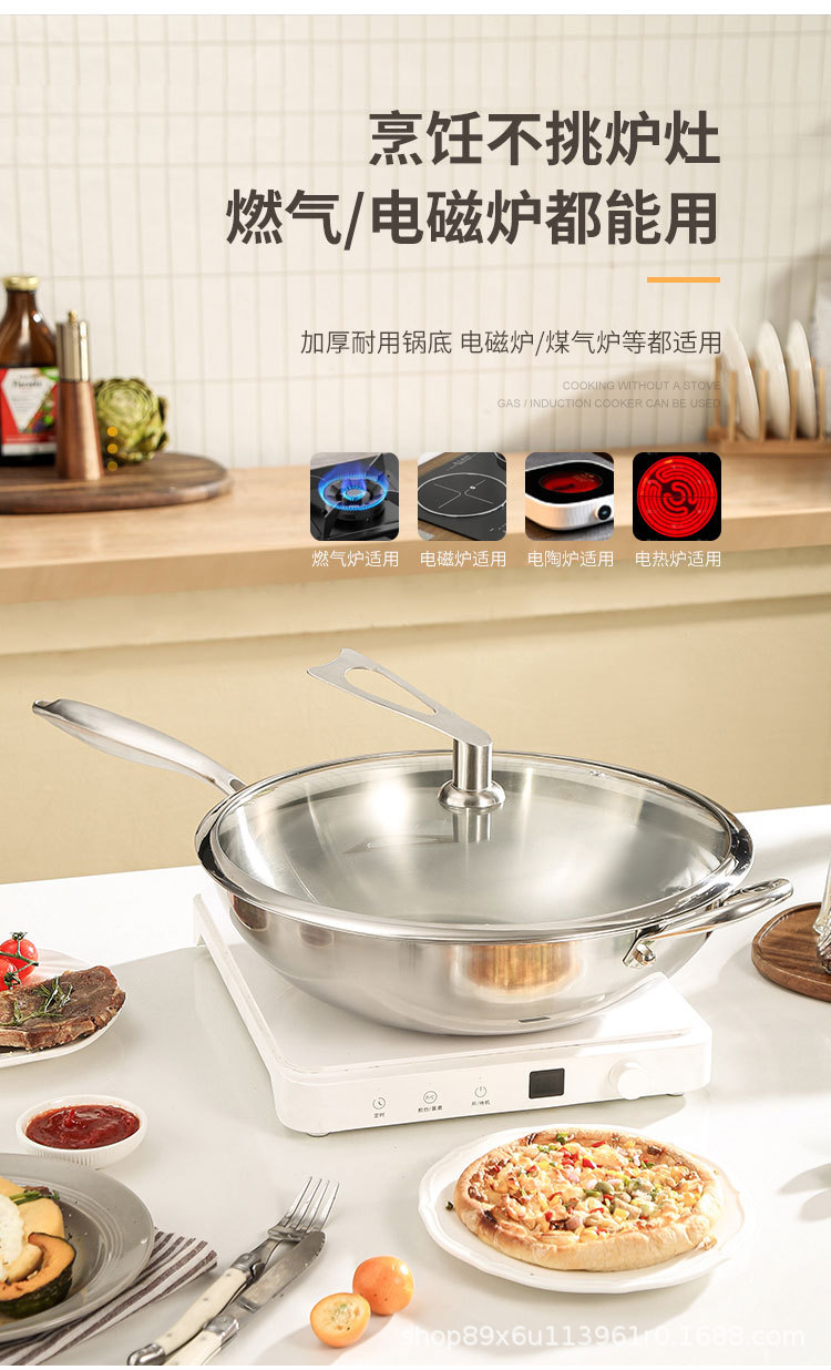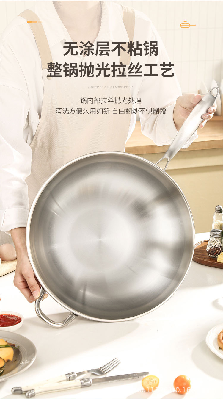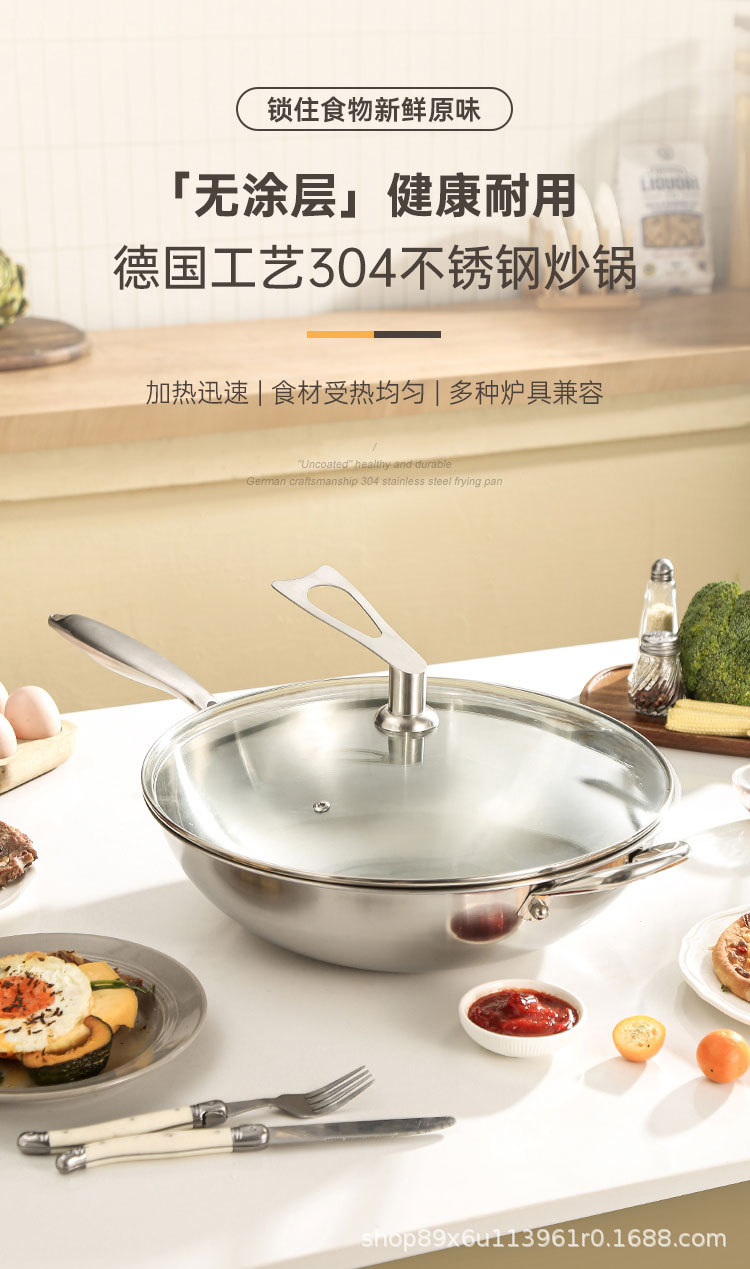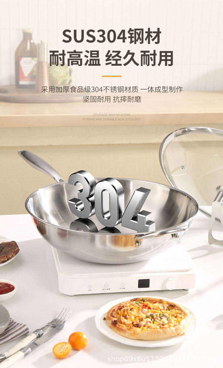 304 스테인레스 스틸 냄비 코팅되지 않은 가정용 저연기 요리 냄비 식품 등급 특수 프라이팬