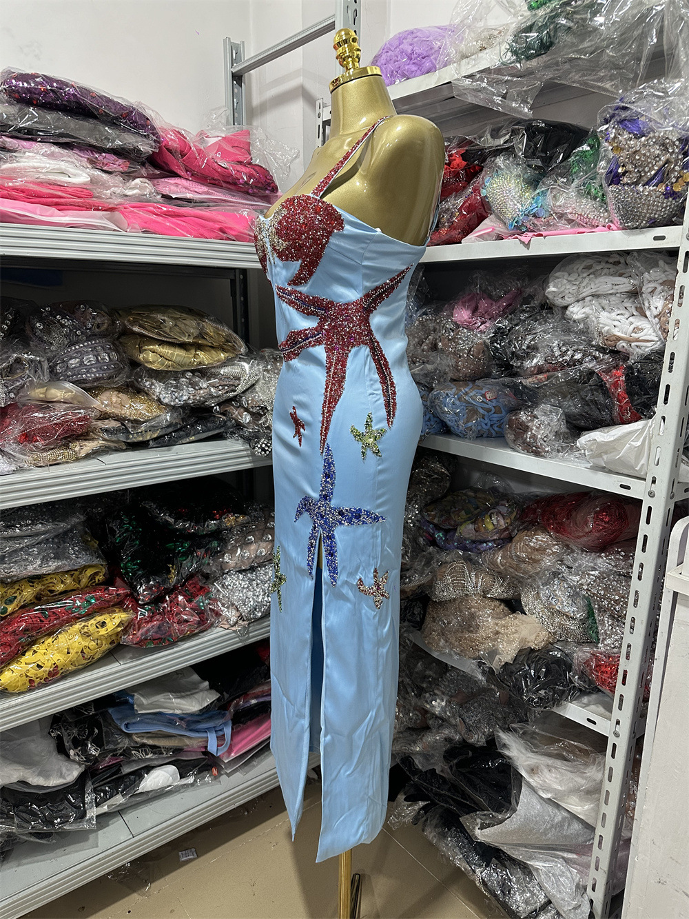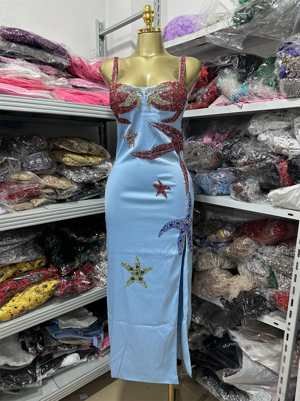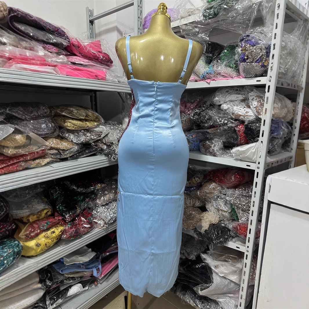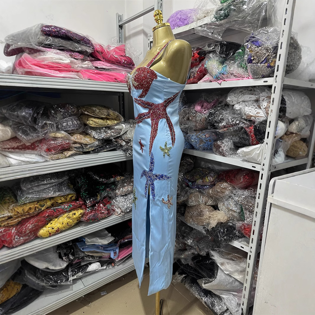국경을 넘나드는 실물 촬영 새로운 슬림핏 패셔너블한 개성 디자인 불가사리 핫 다이아몬드 슬릿 드레스 비치 여성 의류