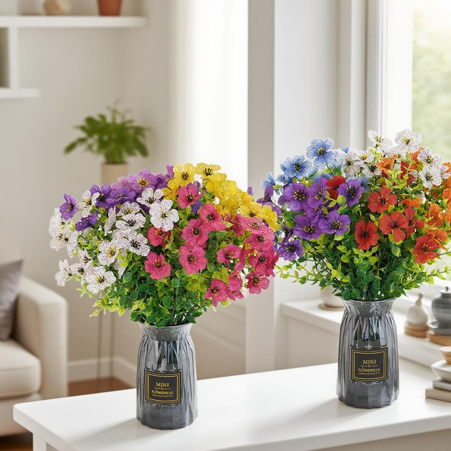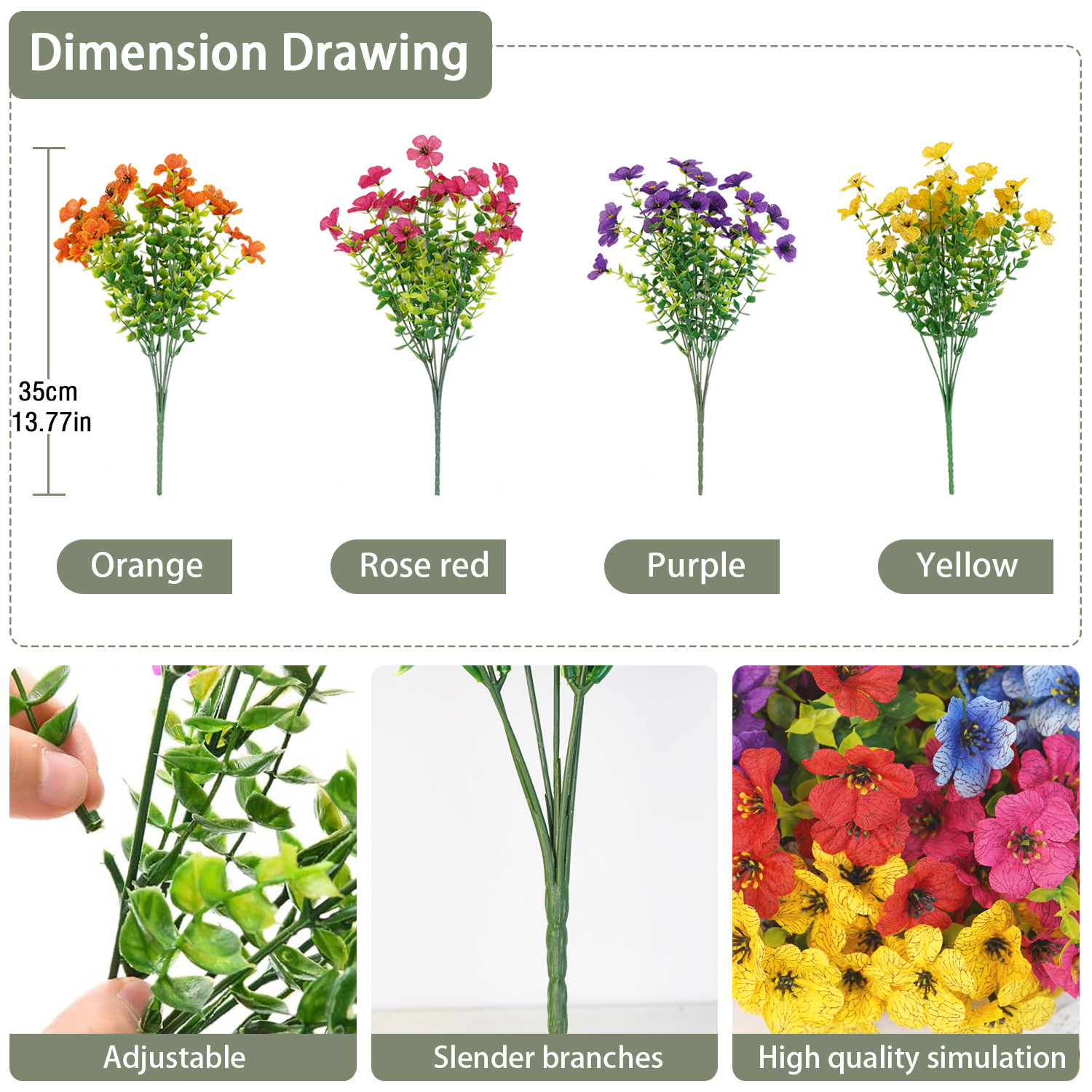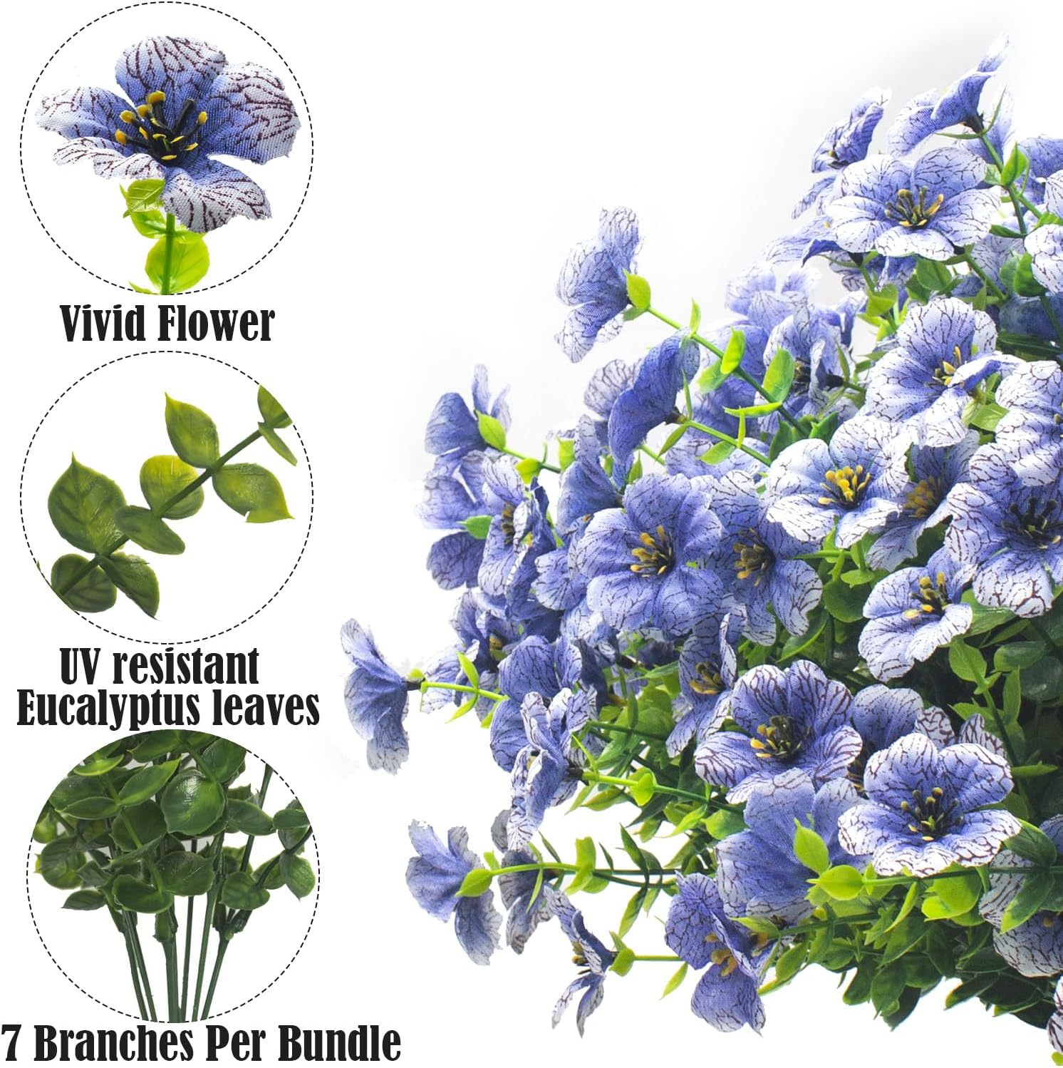 HUANGTAO 인공 시뮬레이션 꽃 7 포크 유칼립투스 바이올렛 홈 인테리어 장식품 작은 데이지 가짜 꽃 실크 꽃