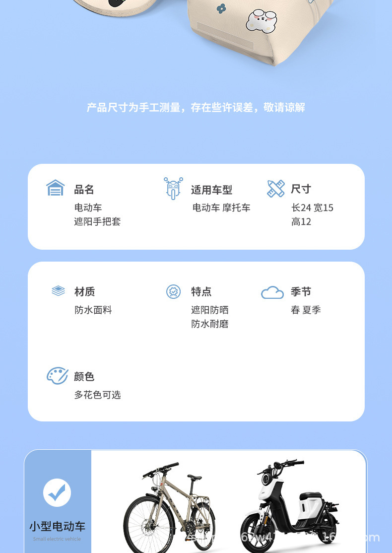 여름 방수 및 방풍 차양 가정용 커버 오토바이 핸드 가드 새로운 도매 전기 자동차 태양 보호 장갑 핸들 바 커버