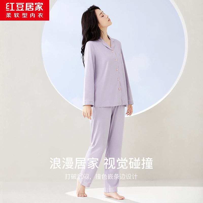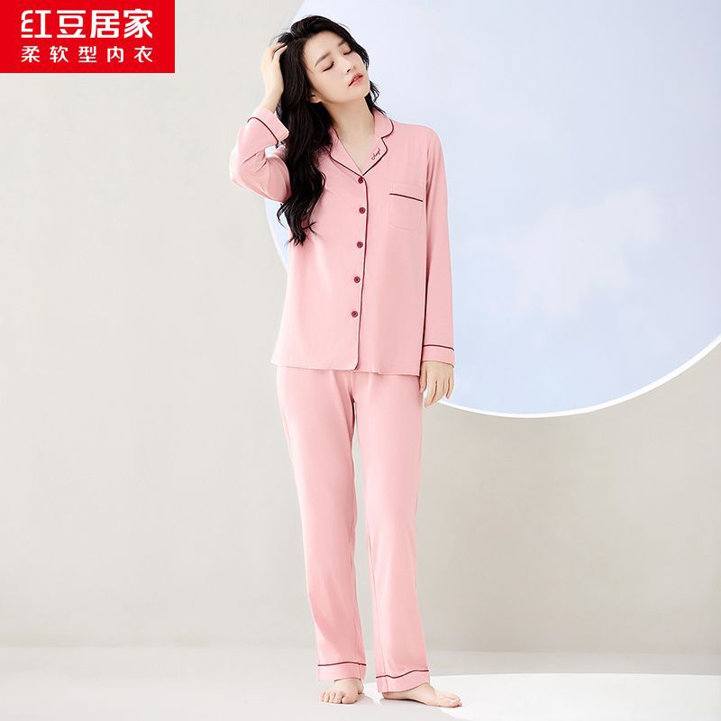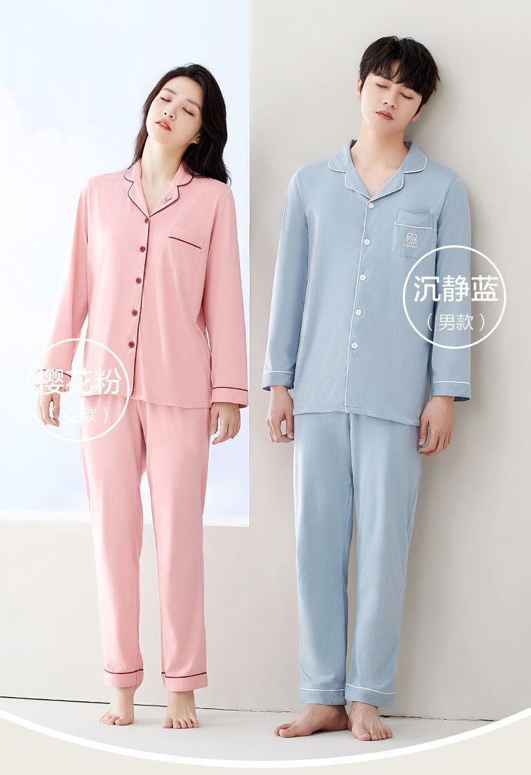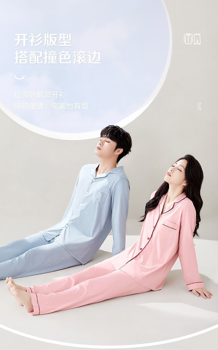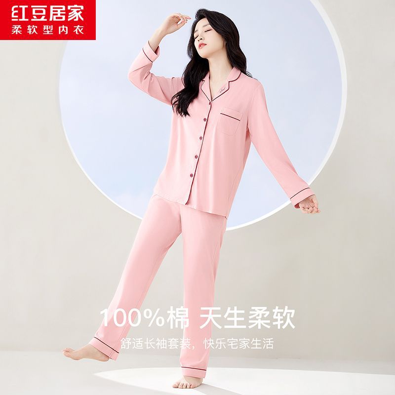 Hongdou Home 100% 면 얇은 잠옷 봄과 가을 새로운 커플 잠옷 세트 솔리드 컬러 긴팔 가정 의류