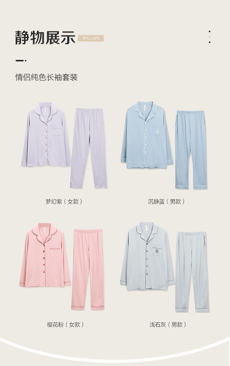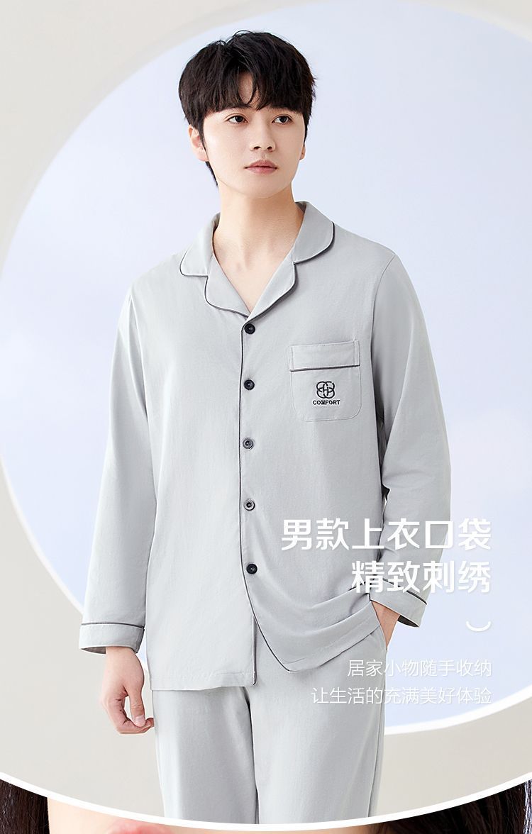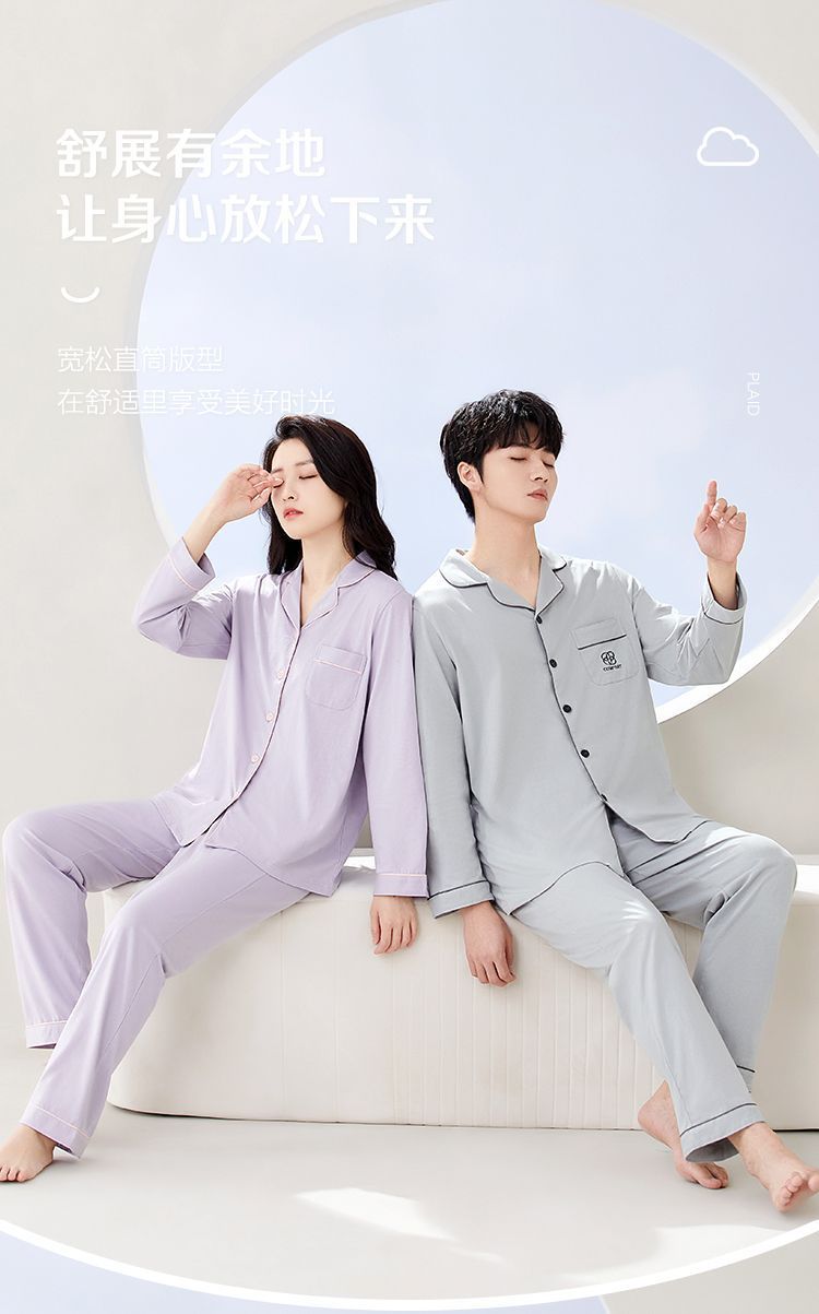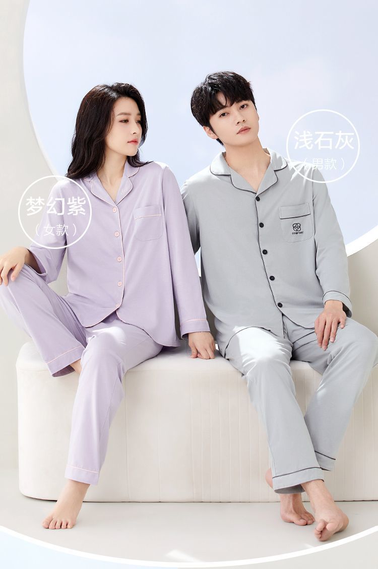 Hongdou Home 100% 면 얇은 잠옷 봄과 가을 새로운 커플 잠옷 세트 솔리드 컬러 긴팔 가정 의류