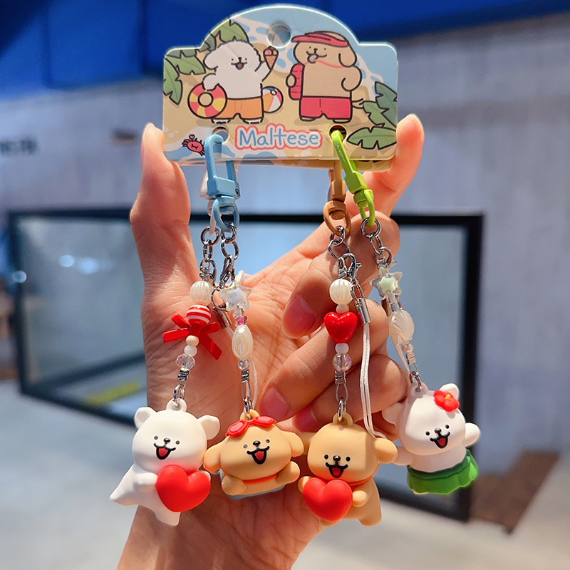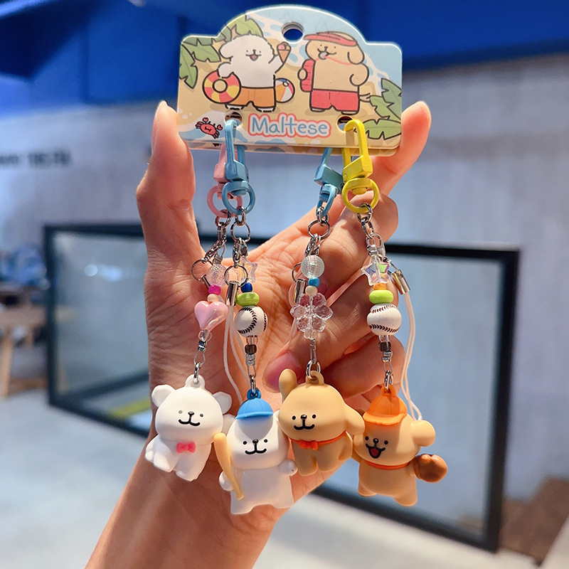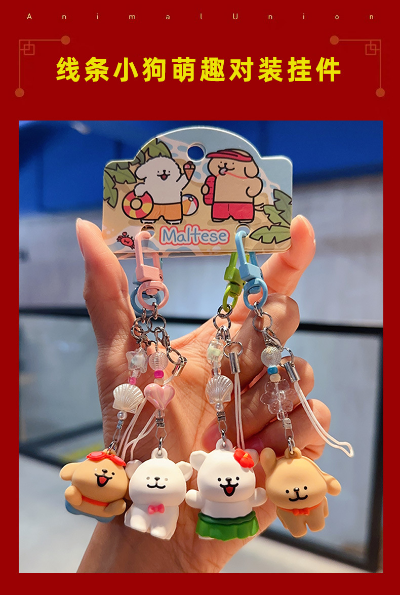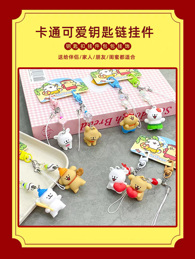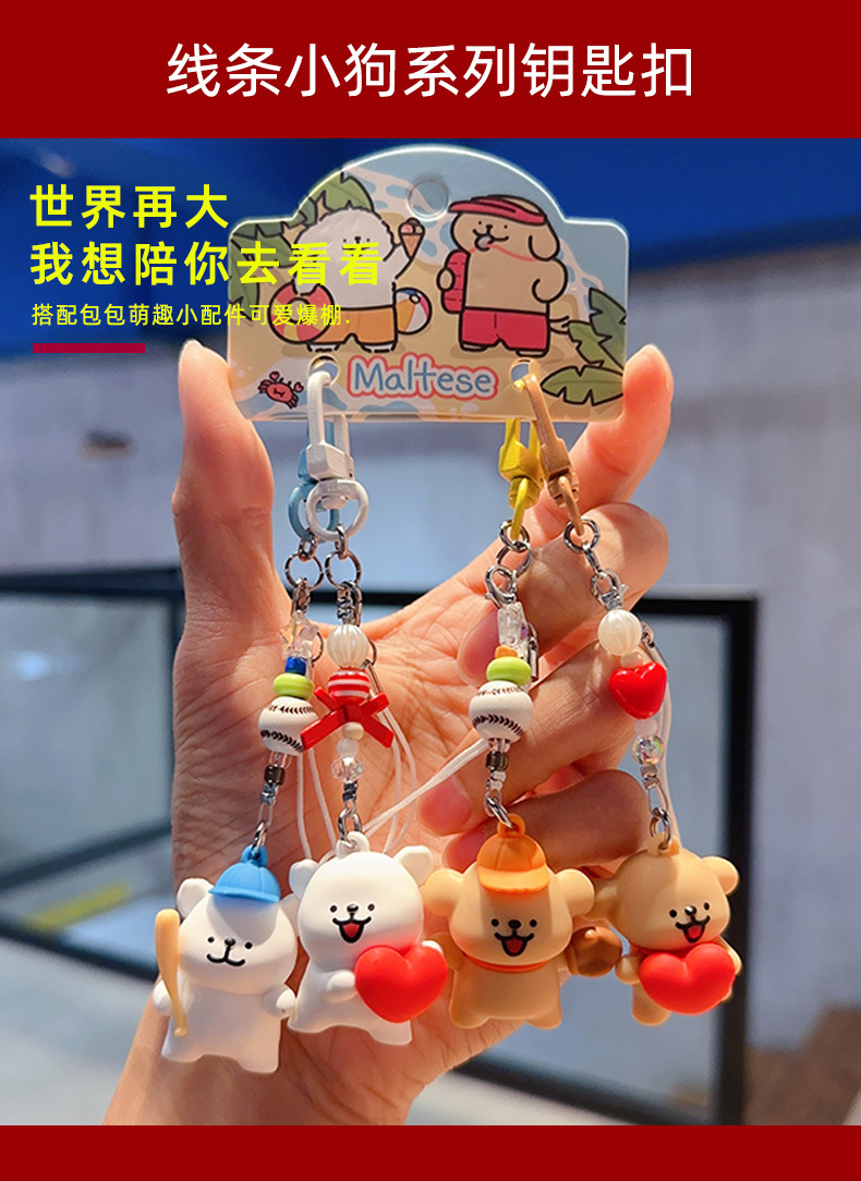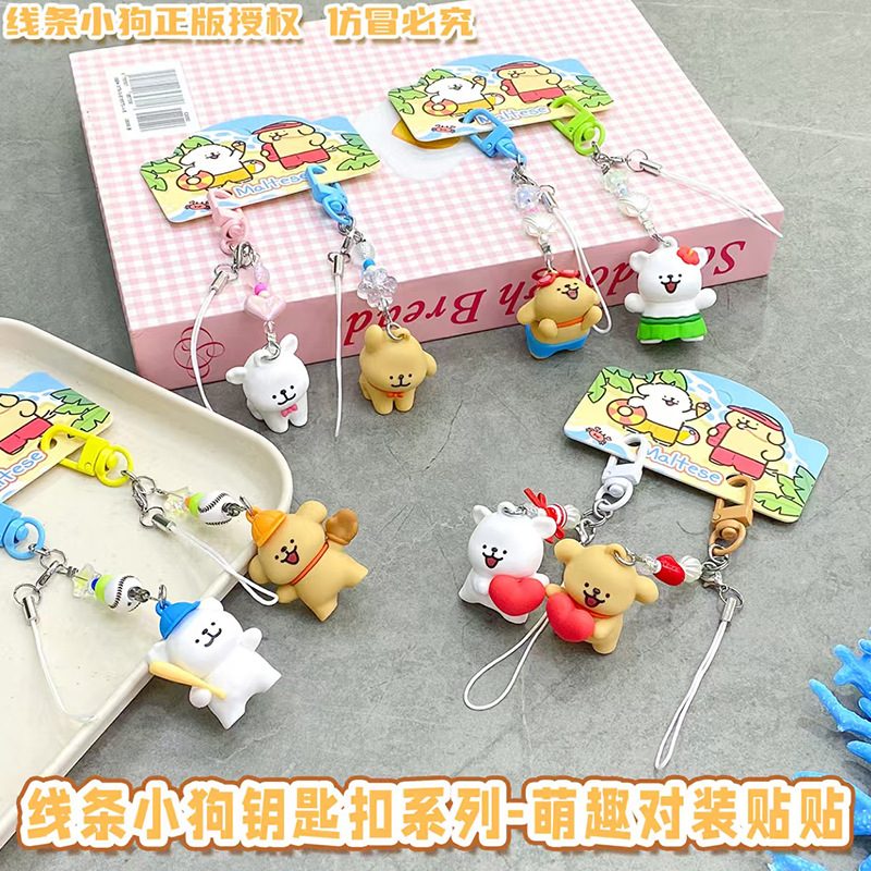 정품 귀여운 라인 강아지 귀여운 휴대 전화 펜던트 만화 키 체인 커플 학교 가방 열쇠 고리