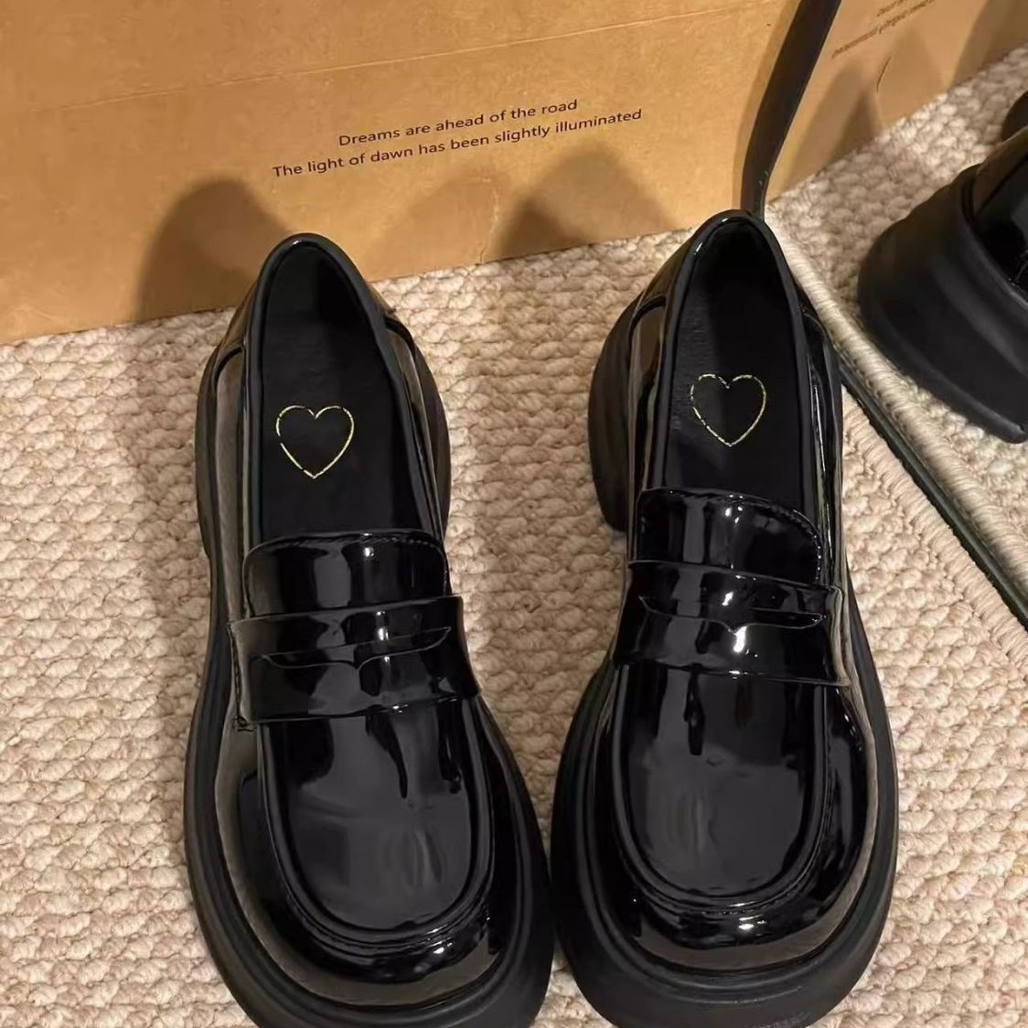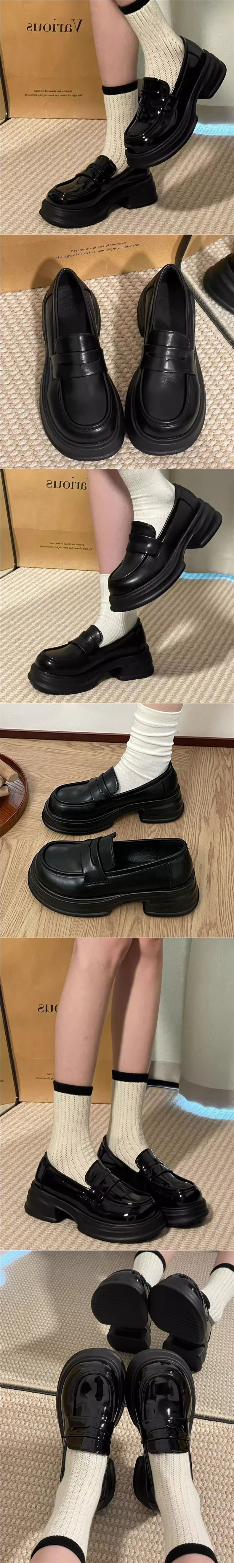34-46 대형 여성 신발 검은 색 작은 가죽 신발 영국 스타일 복고풍 jk 유니폼 신발 41 두꺼운 밑창 로퍼