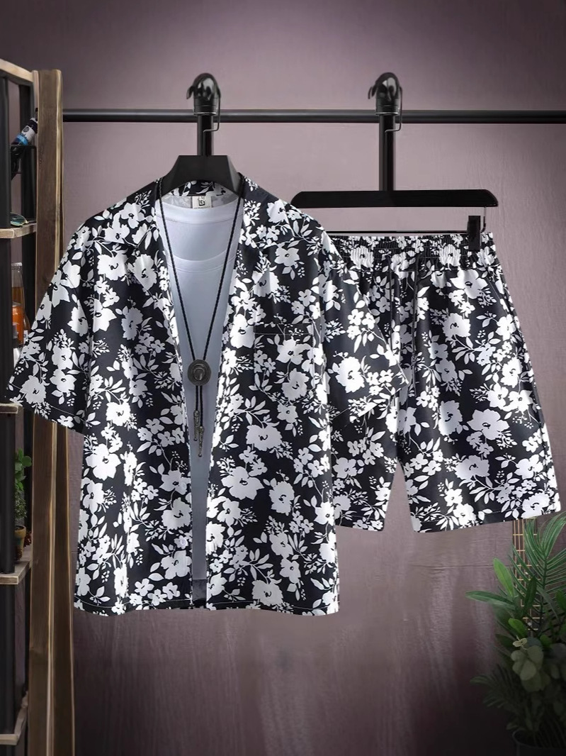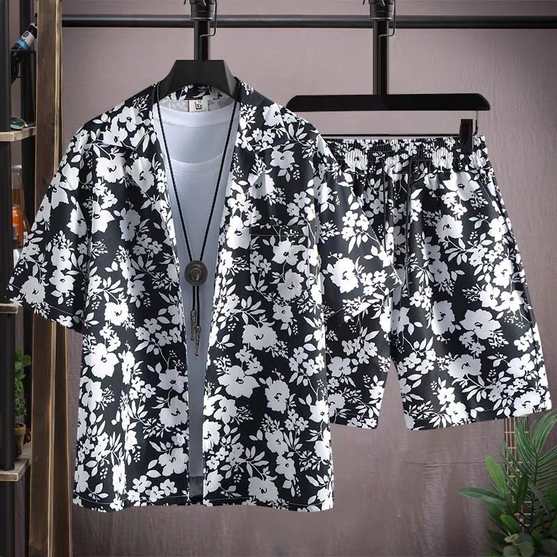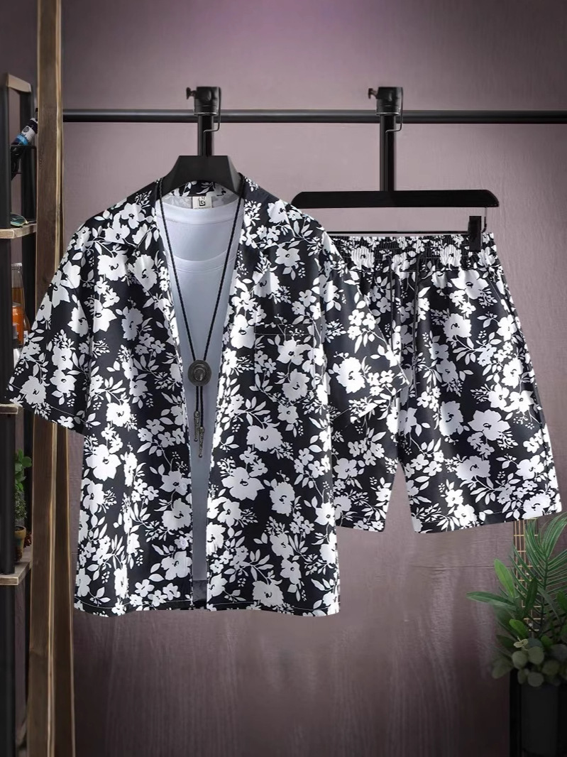 여름 해변 정장 남성용 반팔 남성용 속건성 의류 해변 여행복 커플 여름 얇은 반바지