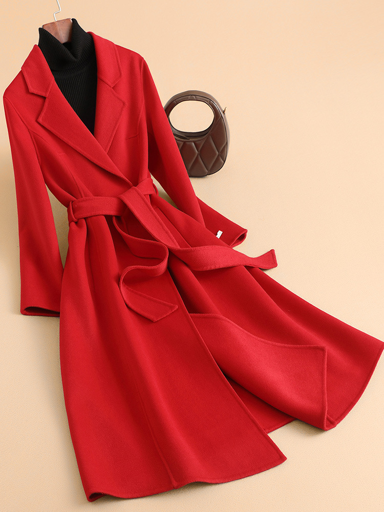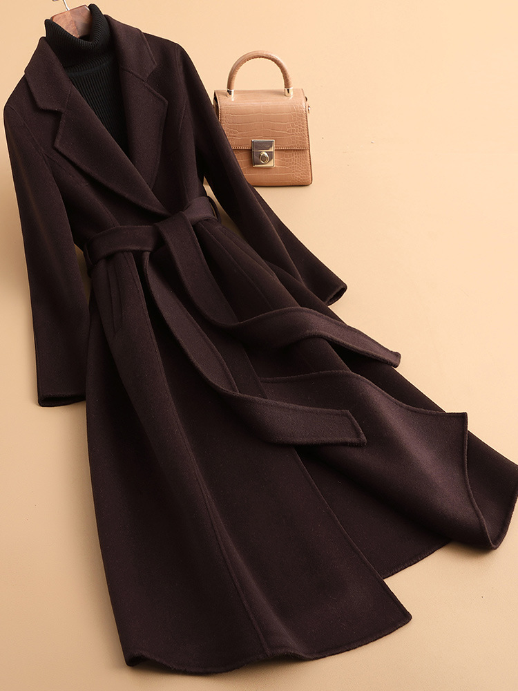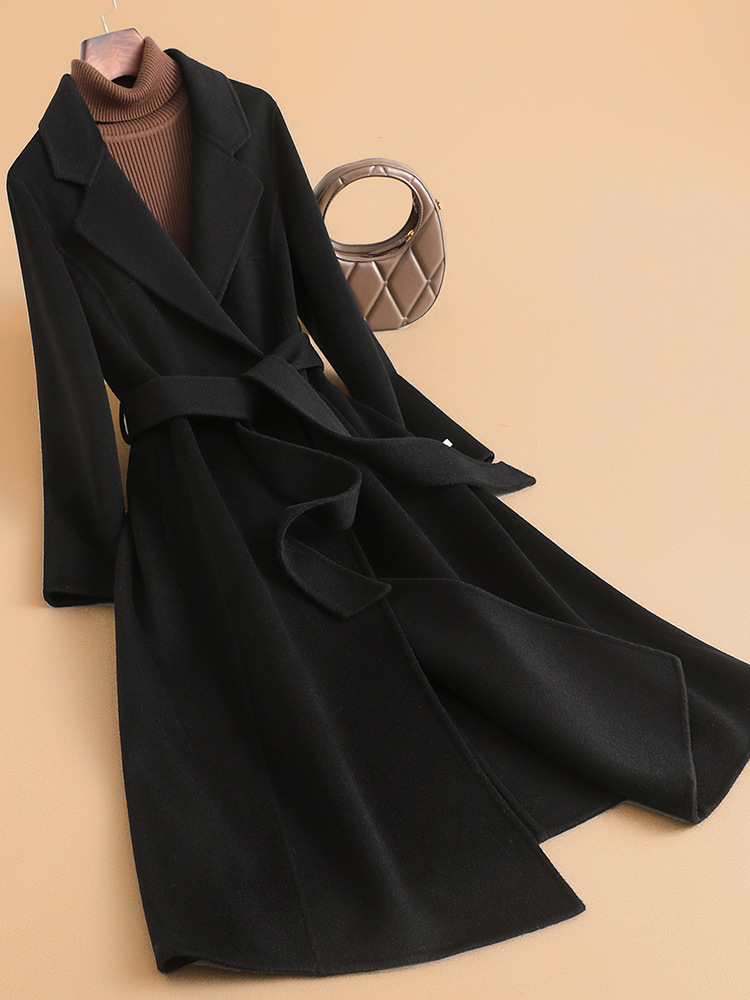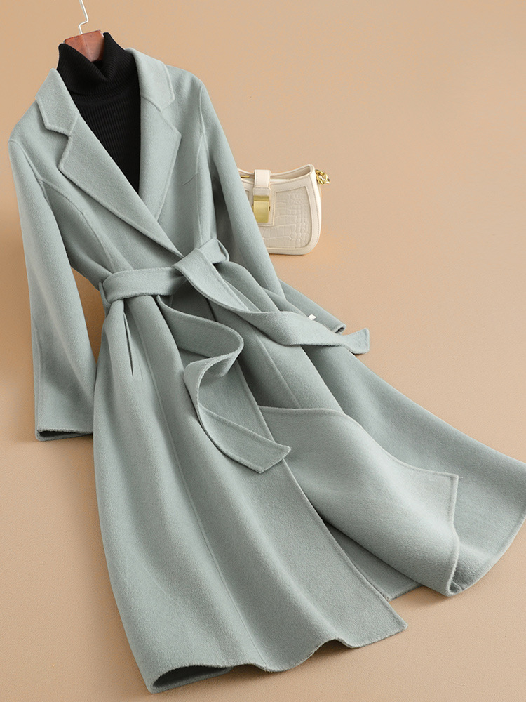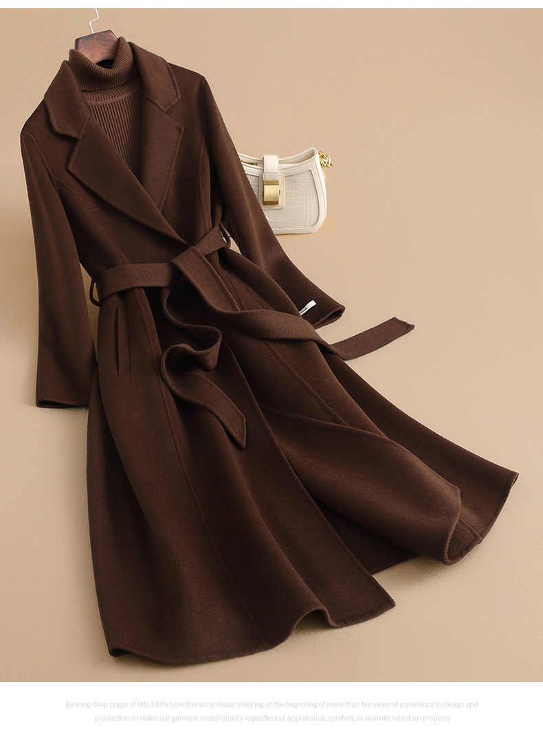 2025 가을 신상 양면 울 코트, 고급스러운 스몰 숄더 코트, 여성용 롱 코트