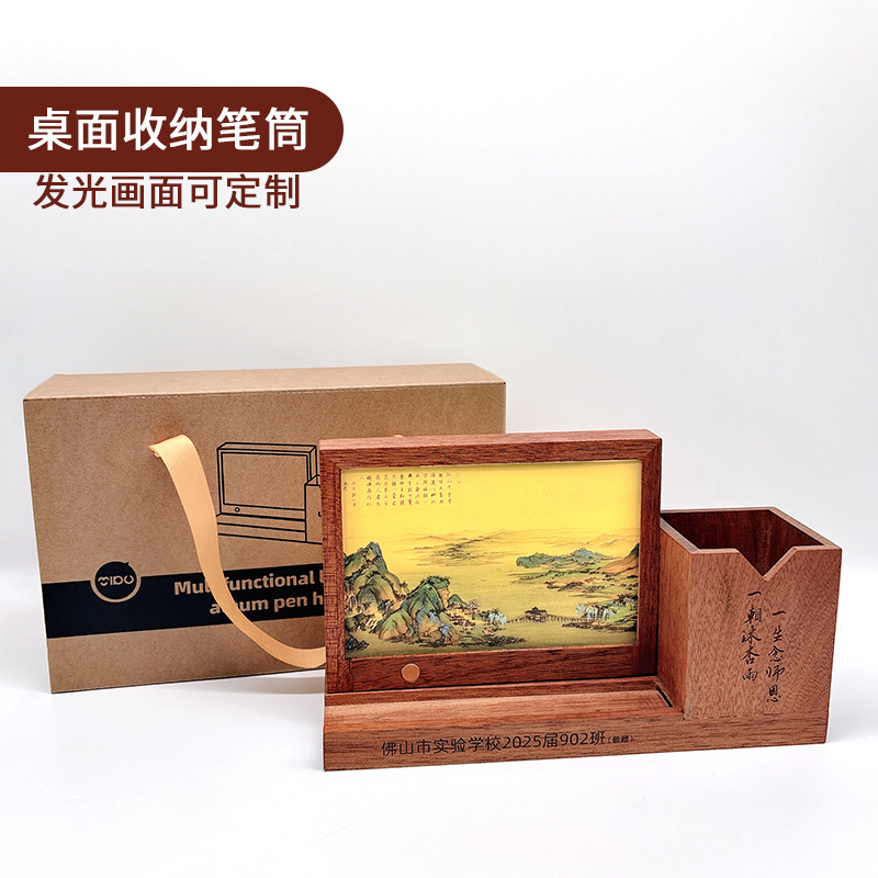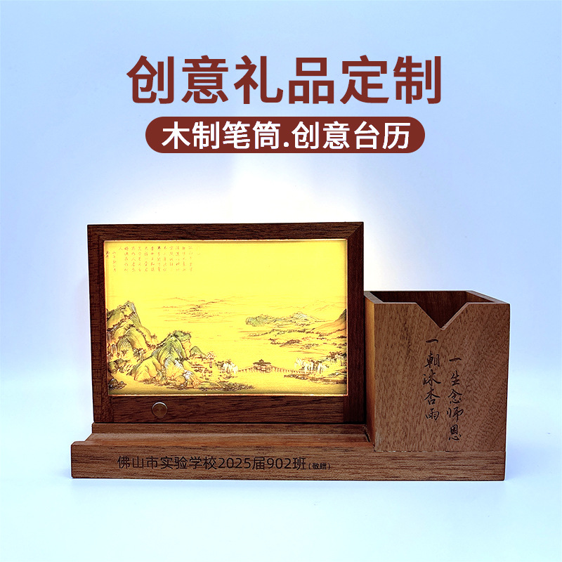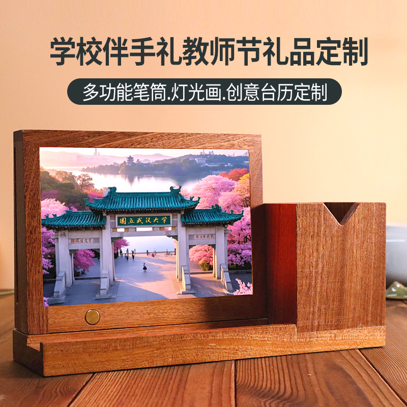 창의적인 나무 사무실 실용적인 문화 및 창의적인 발광 펜 홀더는 학교 기념일 기념품 장식품을 인쇄할 수 있습니다.