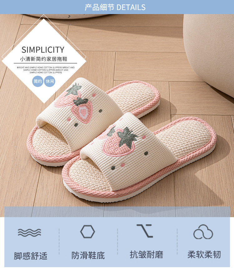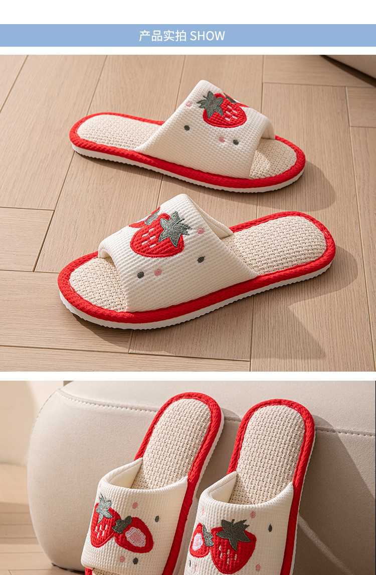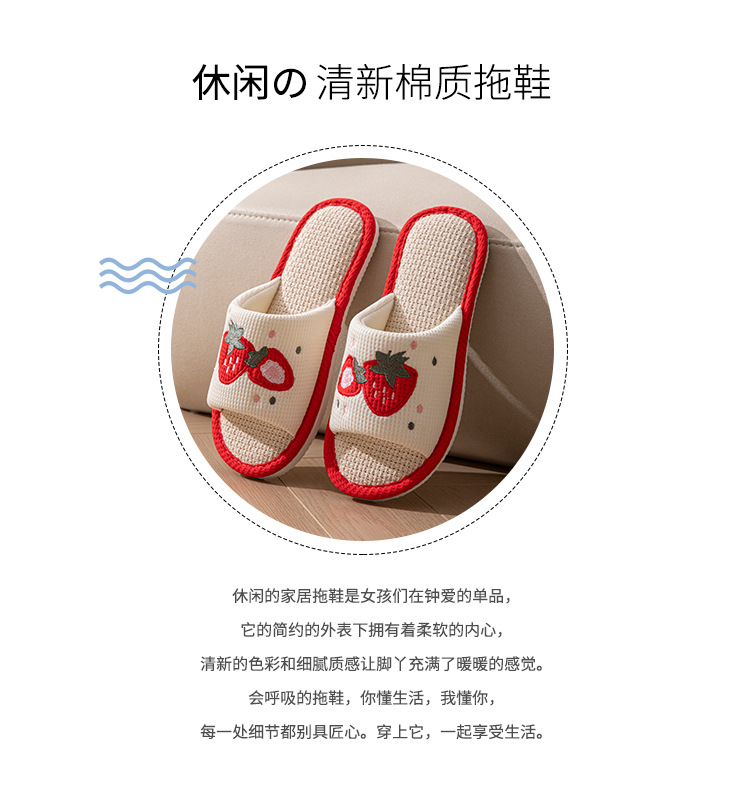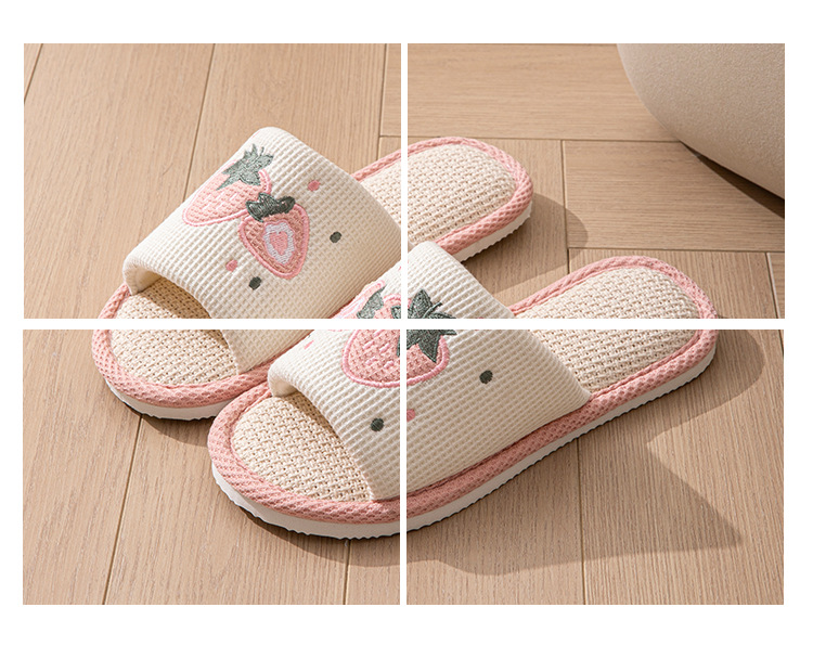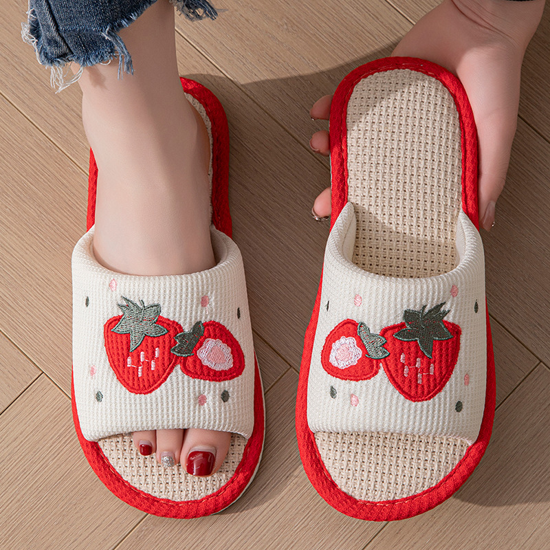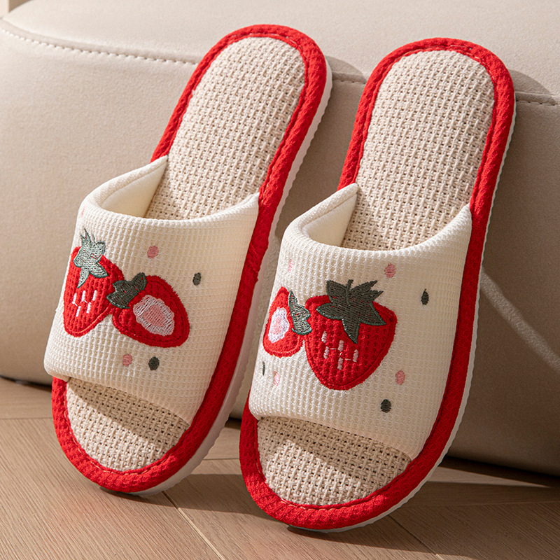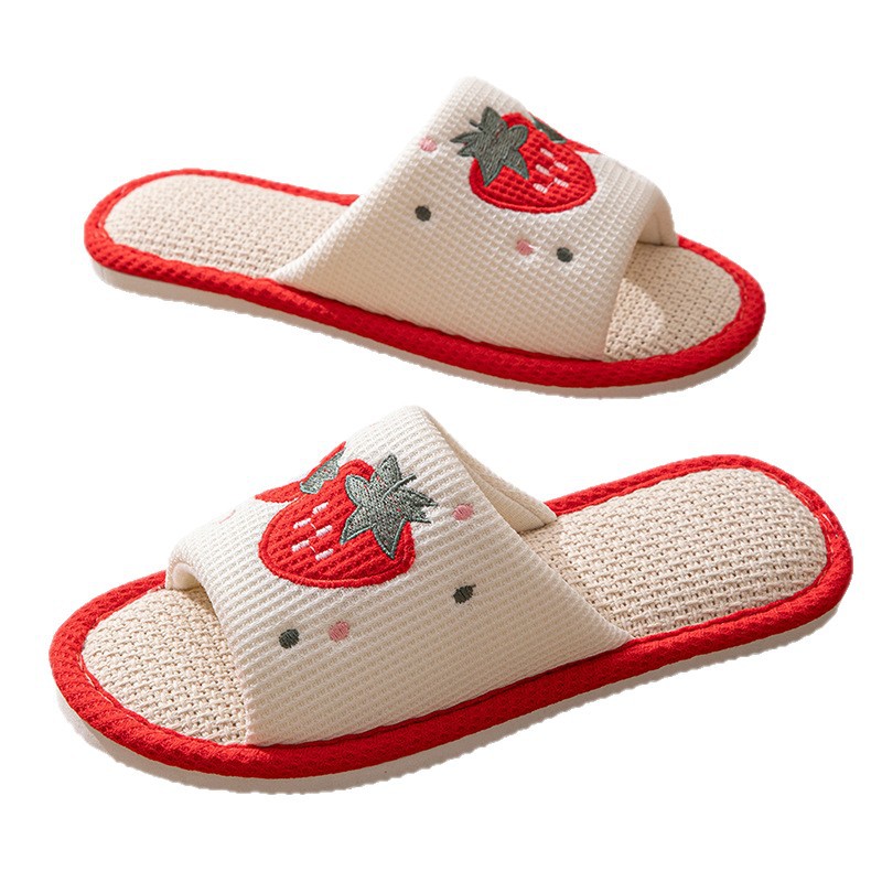 사계절 딸기 린넨 슬리퍼, 달콤한 집 소녀 부드러운 바닥 만화 집 미끄럼 방지 면 및 린넨 바닥 슬리퍼