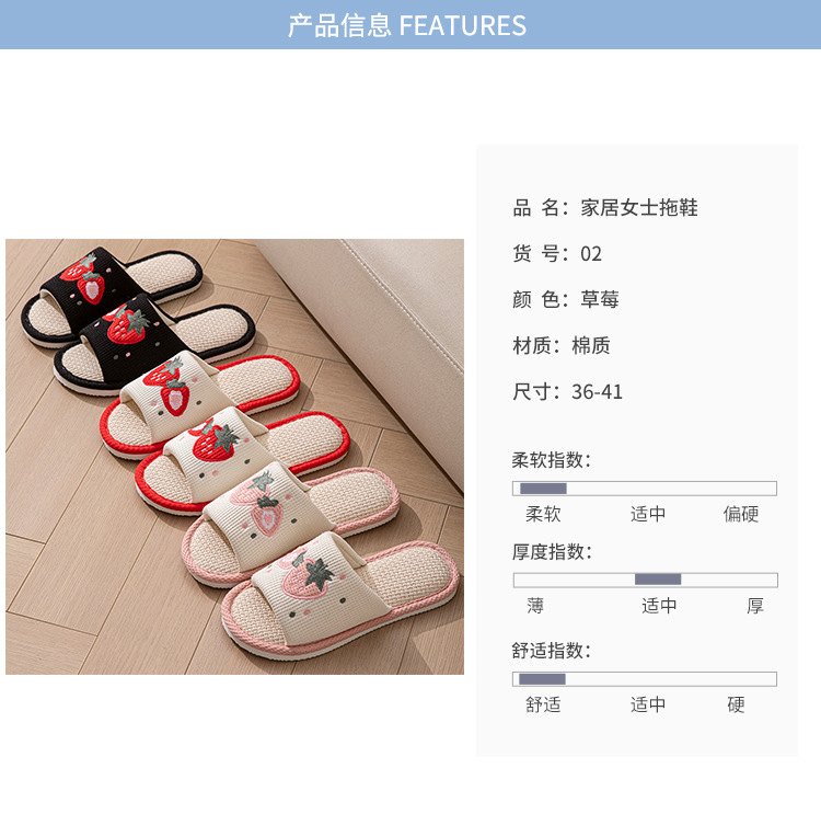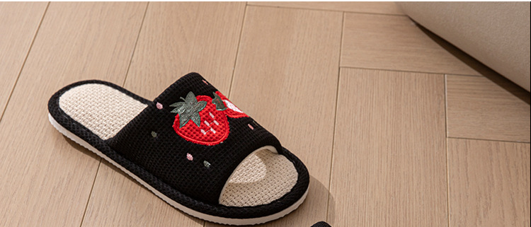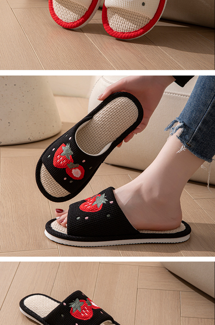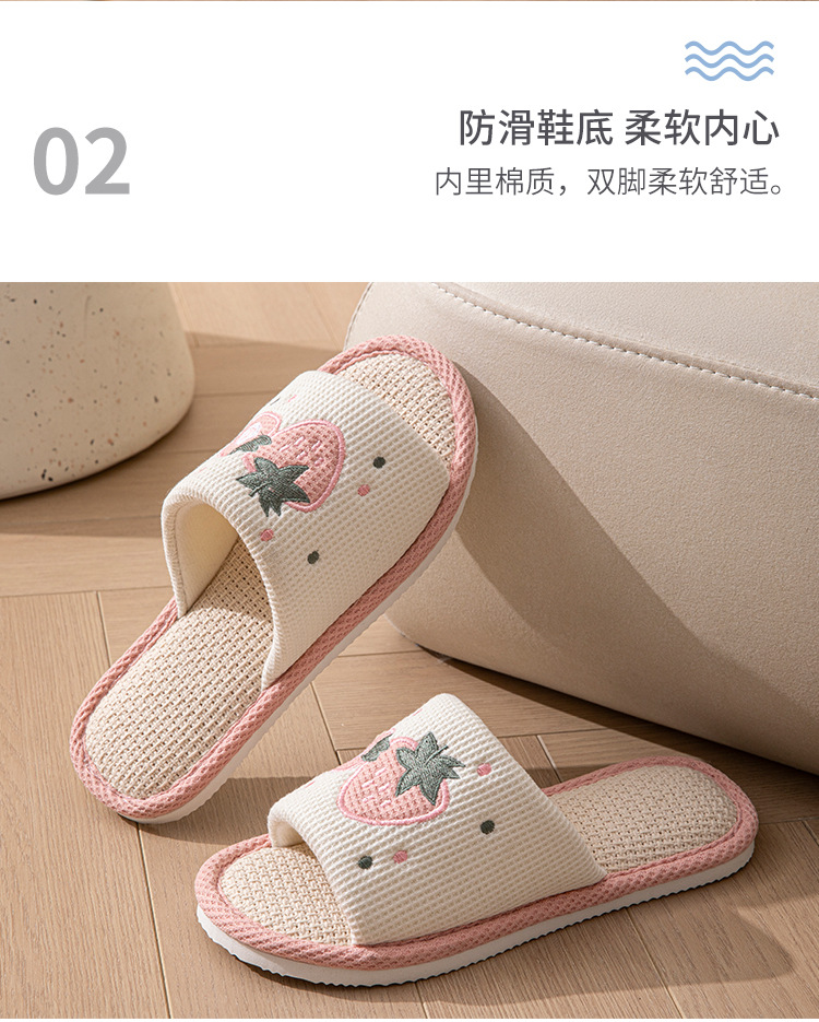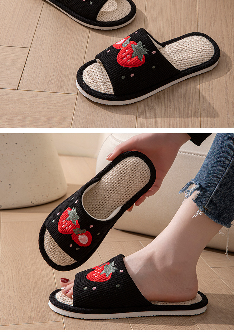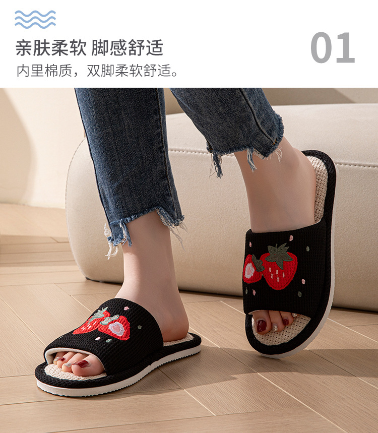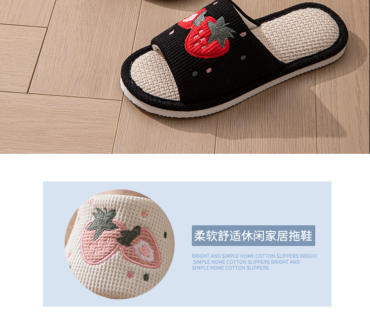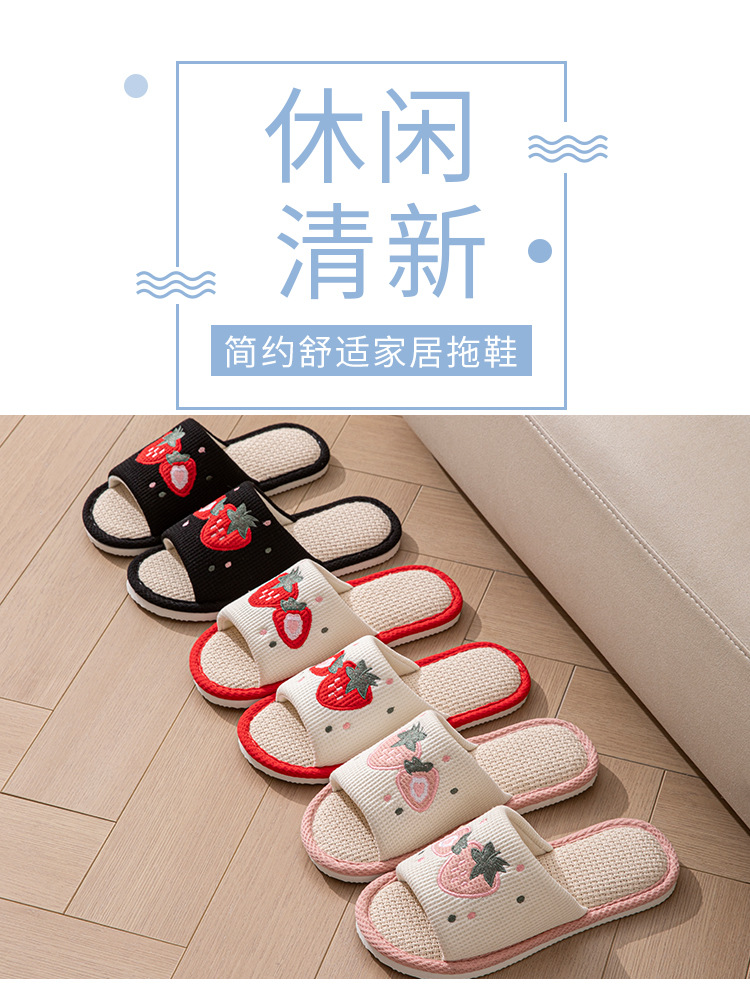 사계절 딸기 린넨 슬리퍼, 달콤한 집 소녀 부드러운 바닥 만화 집 미끄럼 방지 면 및 린넨 바닥 슬리퍼