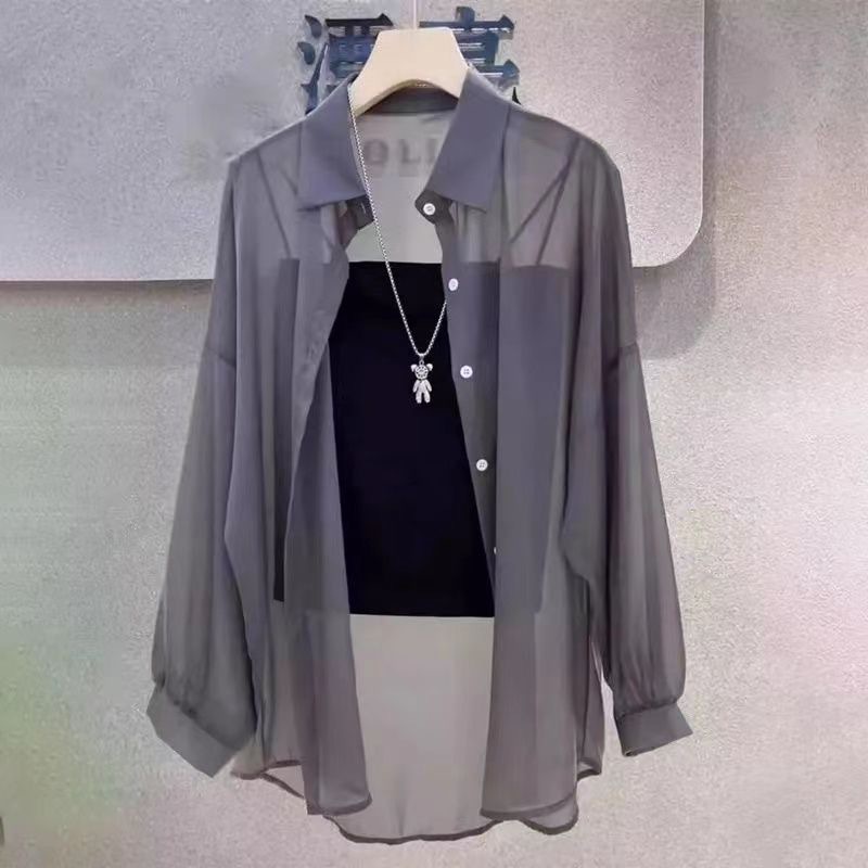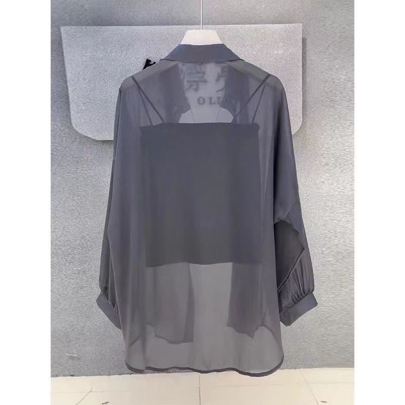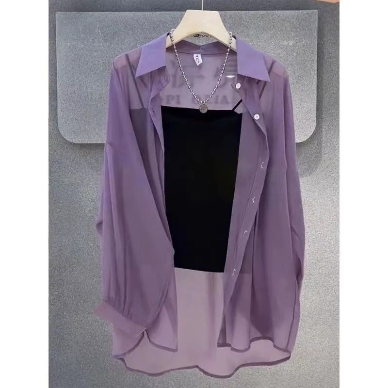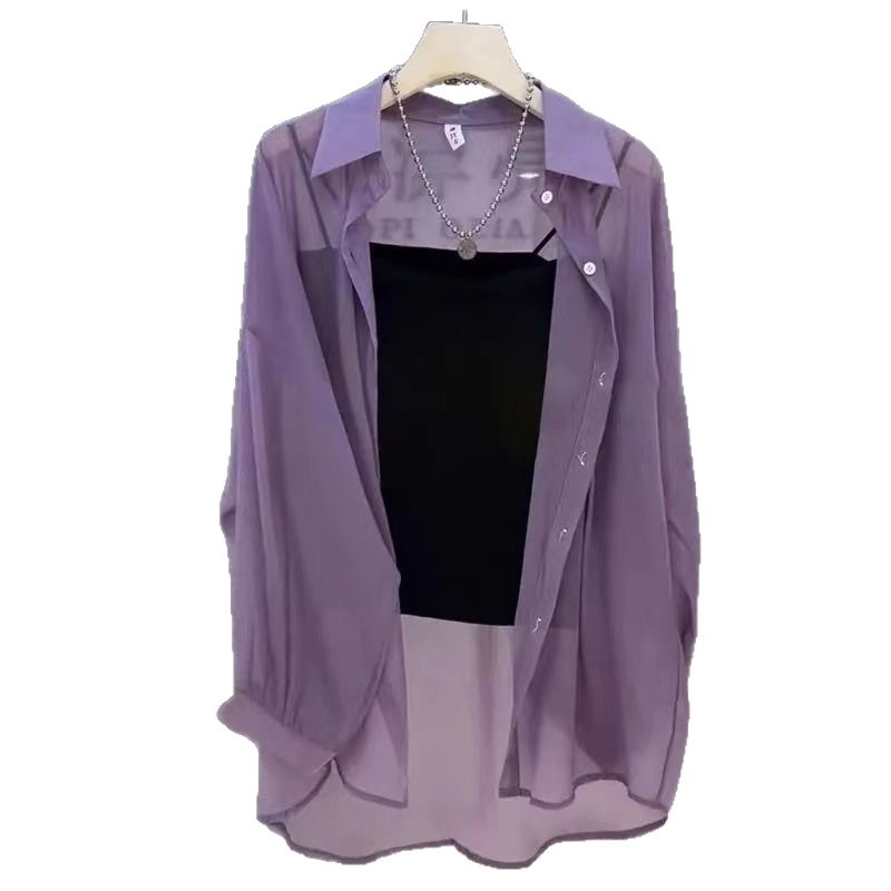 여름철 여성을 위한 주름 없는 쉬폰 자외선 차단 셔츠, 통기성이 좋고 활용도가 높은 셔츠, 힙을 덮는 얇은 셔츠 재킷
