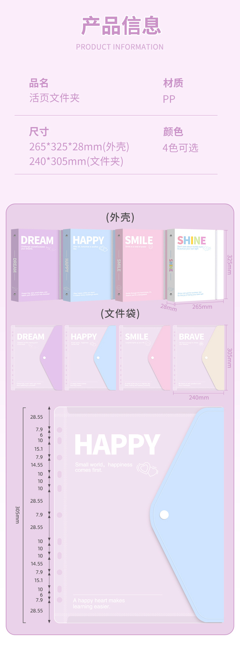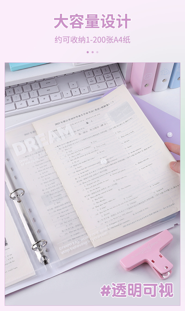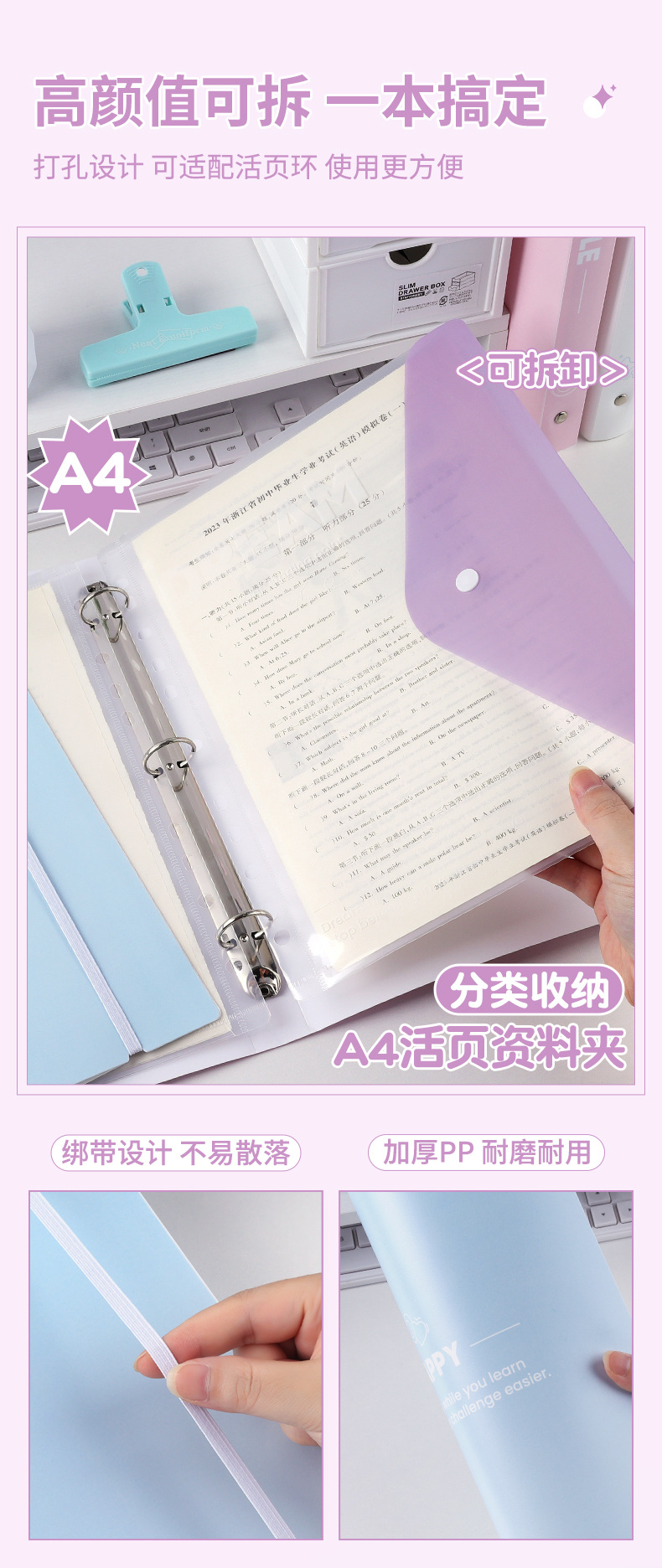 A4 루스리프 폴더 학습자료 시험지 삽입 검사장 ins 스타일 모란디 컬러 투명 수납장