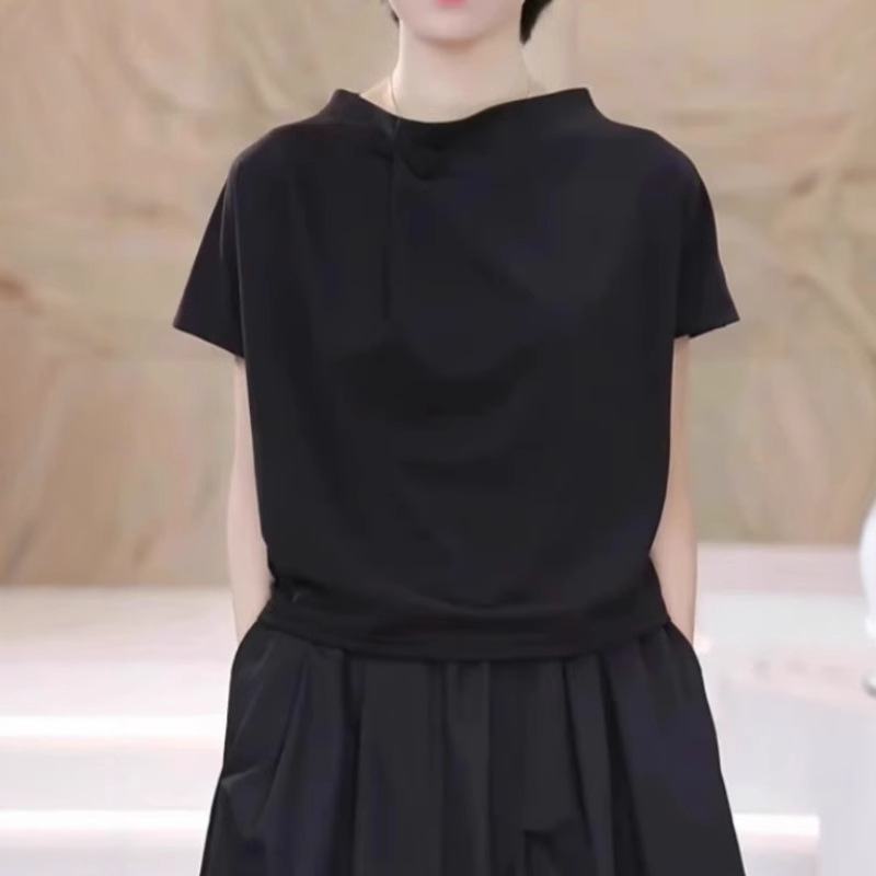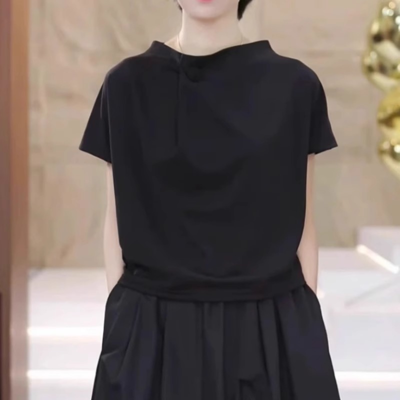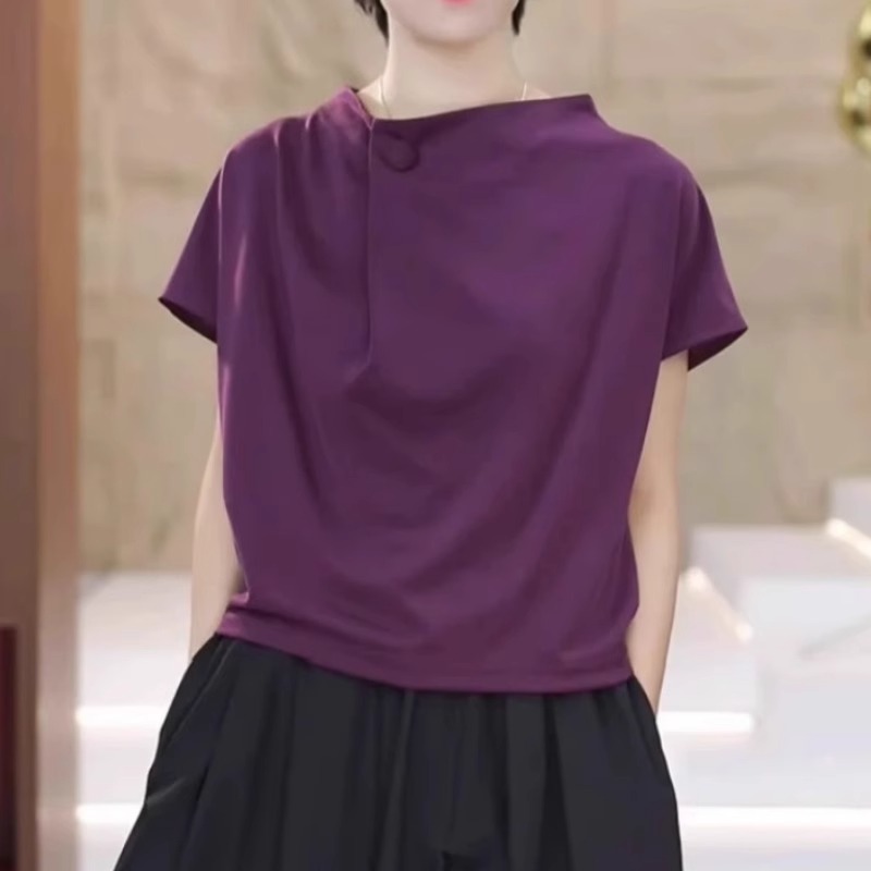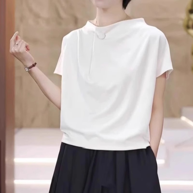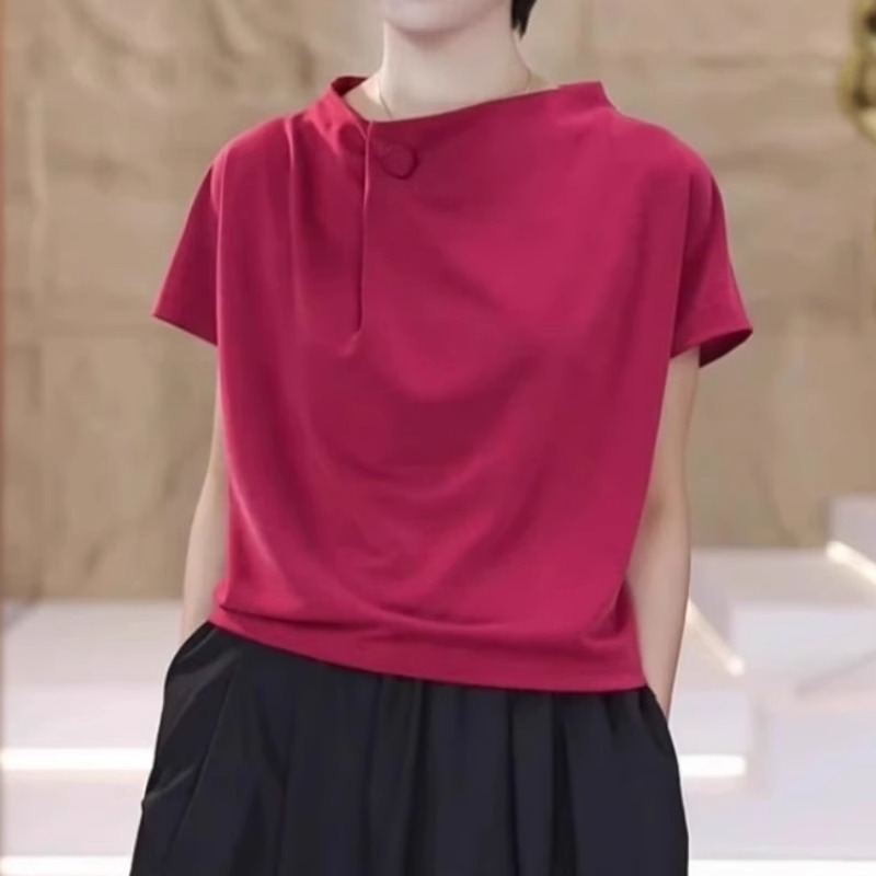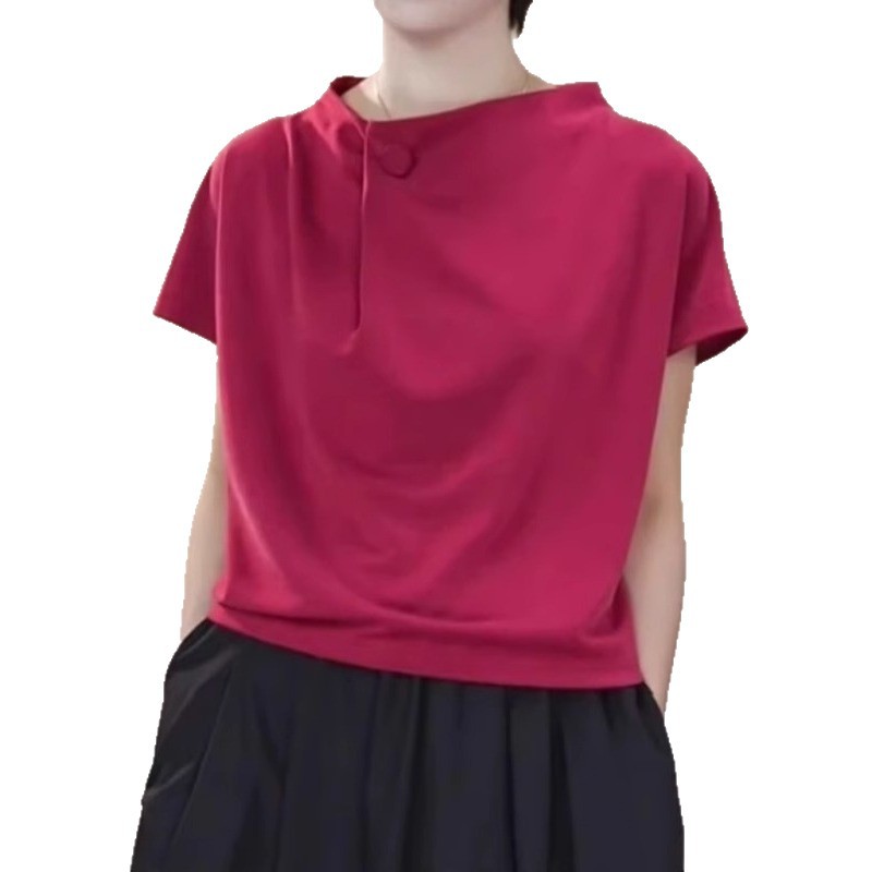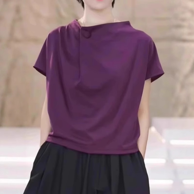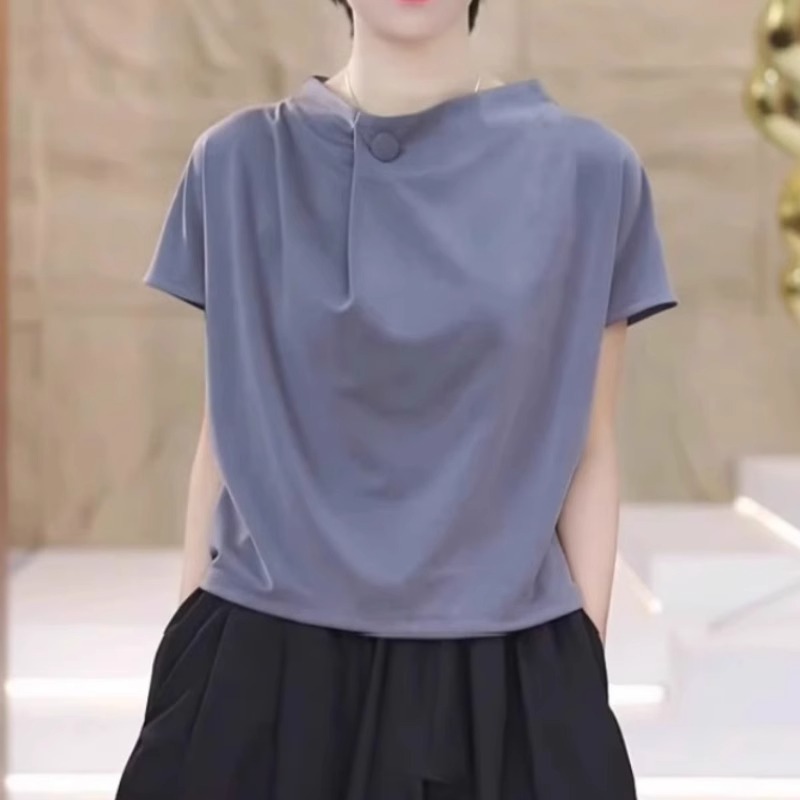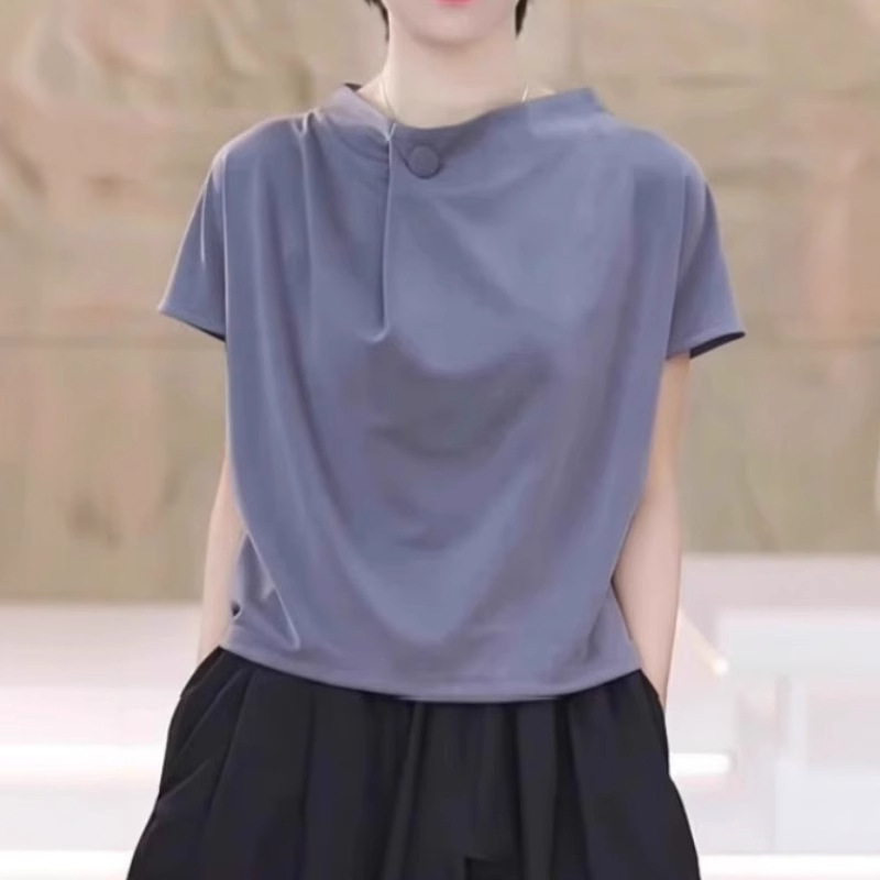 여름 대형 캐주얼 루즈 연령 감소 티셔츠 2025 새로운 가벼운 디자인 솔리드 컬러 반팔 셔츠 A4625