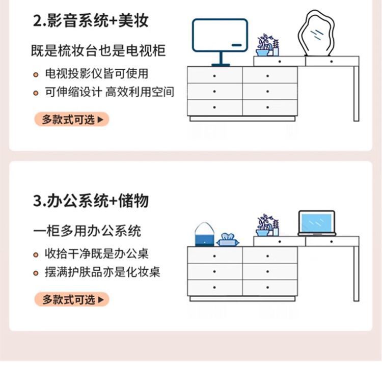업그레이드된 캐비닛 100개 + 화장대 100개 + 원형 스툴 -