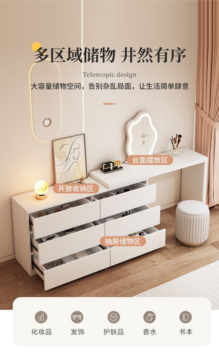 Jmo 침실 간단한 드레싱 테이블 및 서랍 캐비닛 통합 드레싱 캐비닛 작은 아파트 라이트 럭셔리 침대 캐비닛 개폐식 화장대