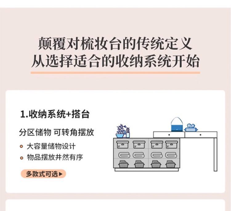 업그레이드된 캐비닛 100개 + 화장대 100개 + 거울 + 원형 스툴 -