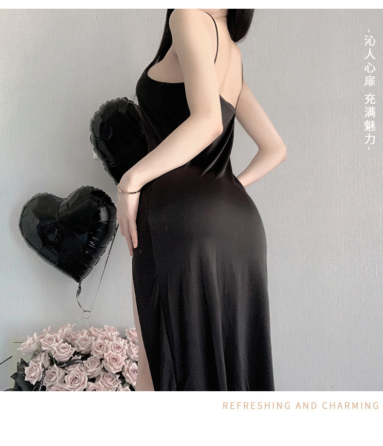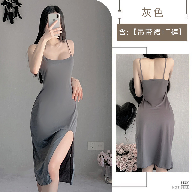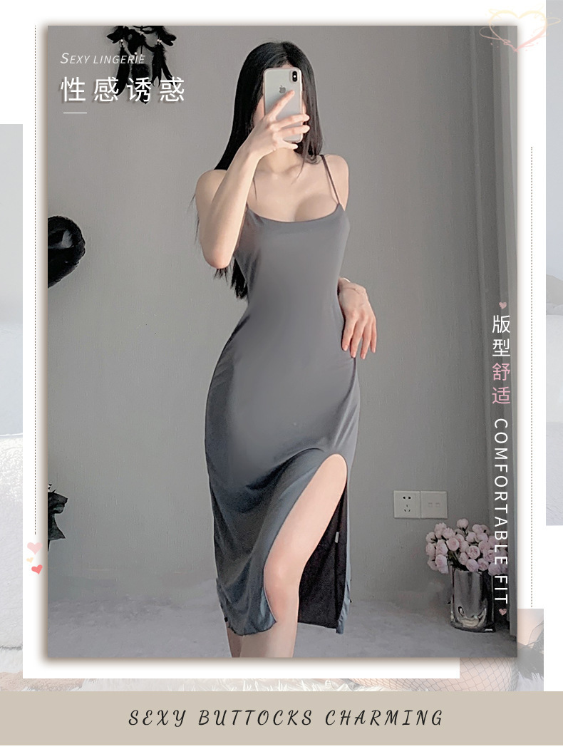 섹시한 속옷, 섹시한 슬릿 롱 스커트, 핫 서스펜더 나이트가운, 홈 여성 드레스, 백리스 슬림핏 스텔스 스커트