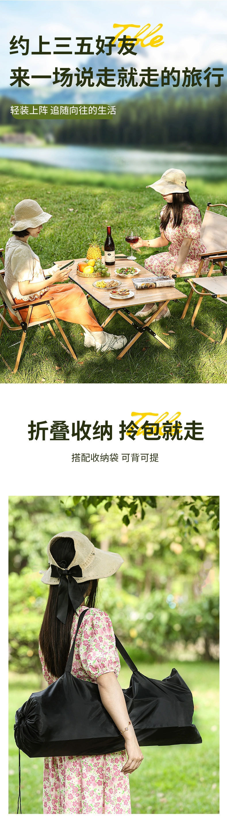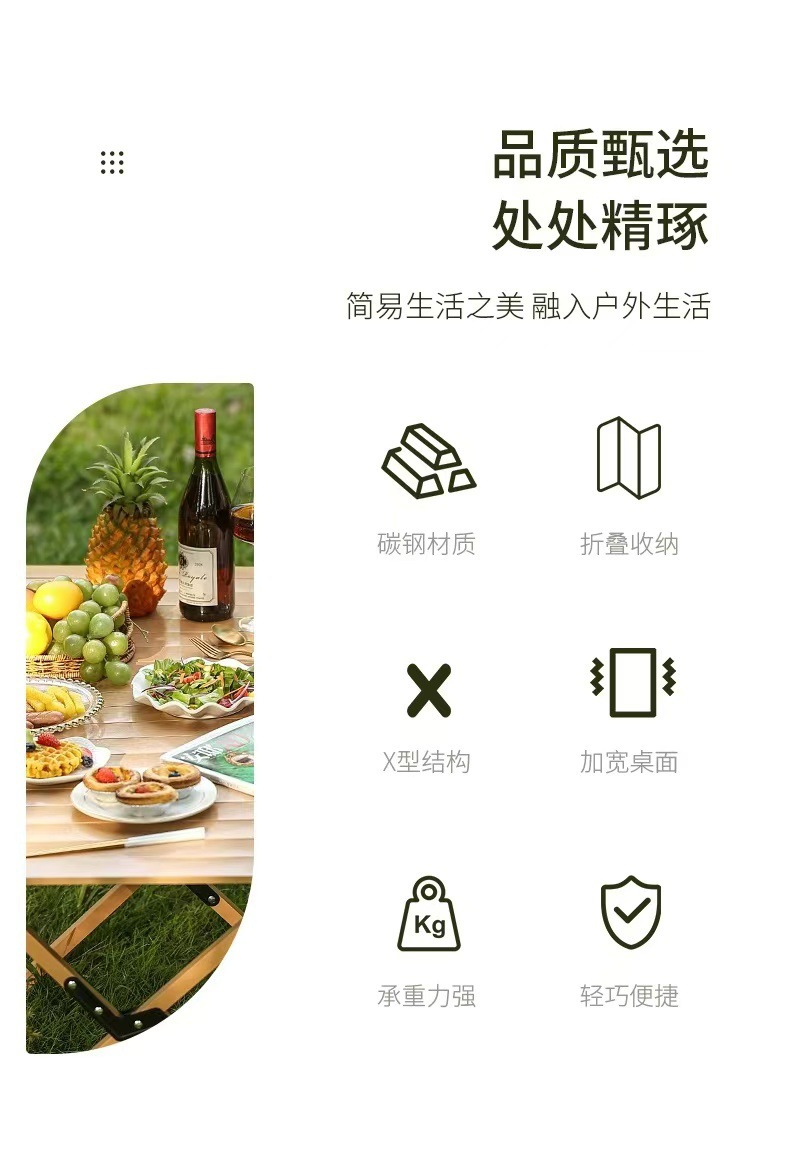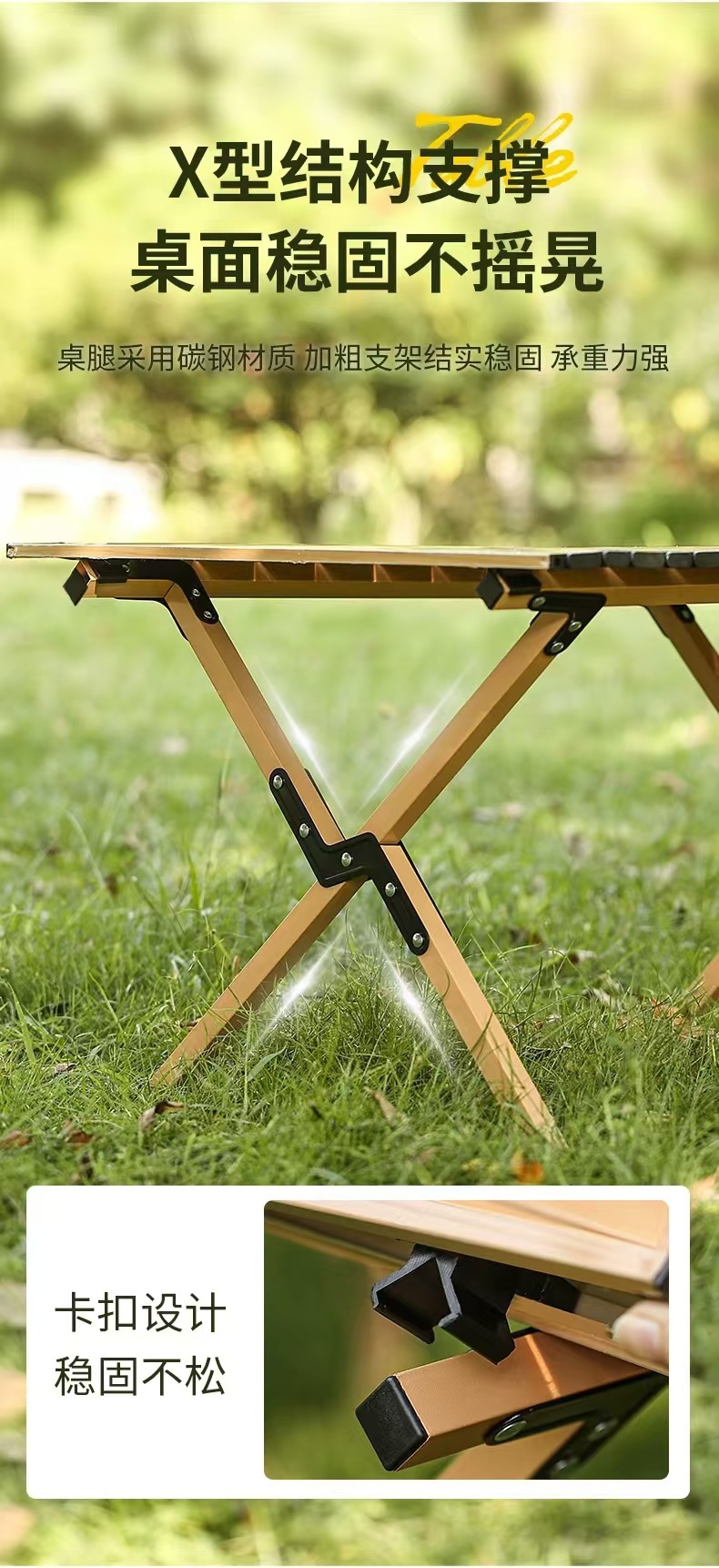 [이중 두꺼운 탄소강] 우드 컬러 90cm 길이 테이블 (두꺼운 수납 가방 포함) ✓