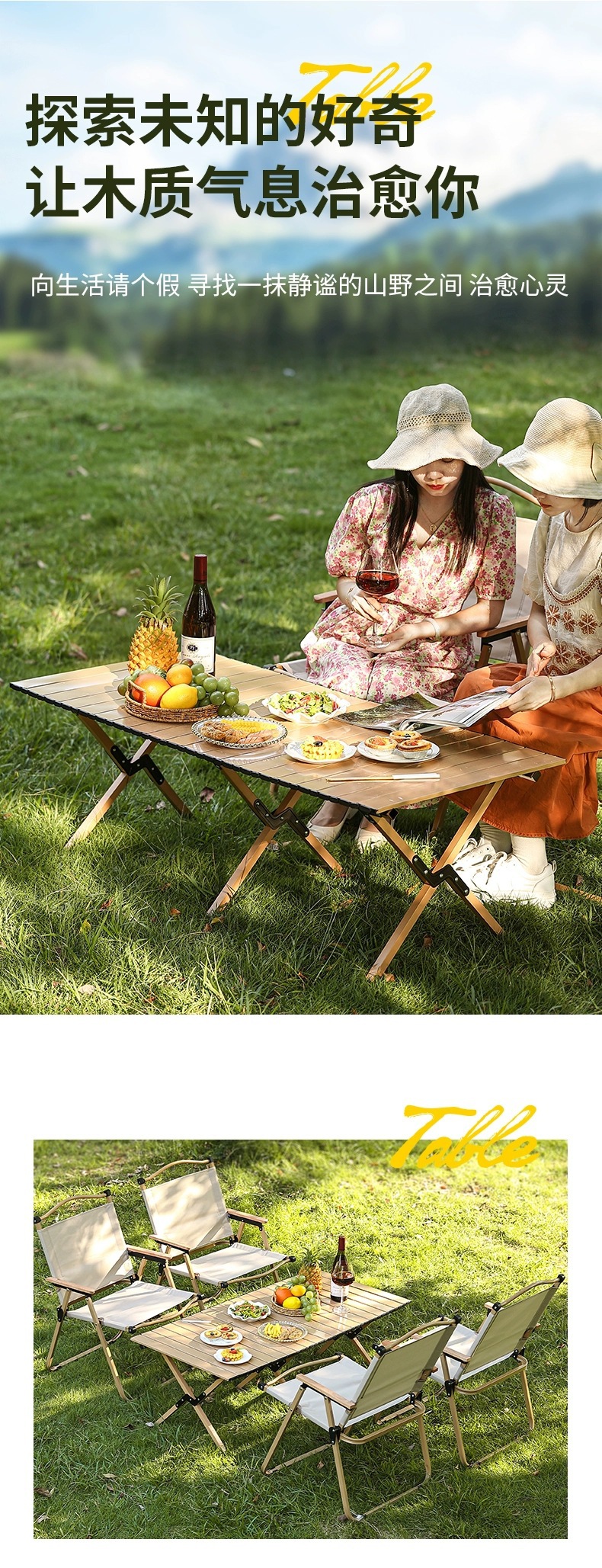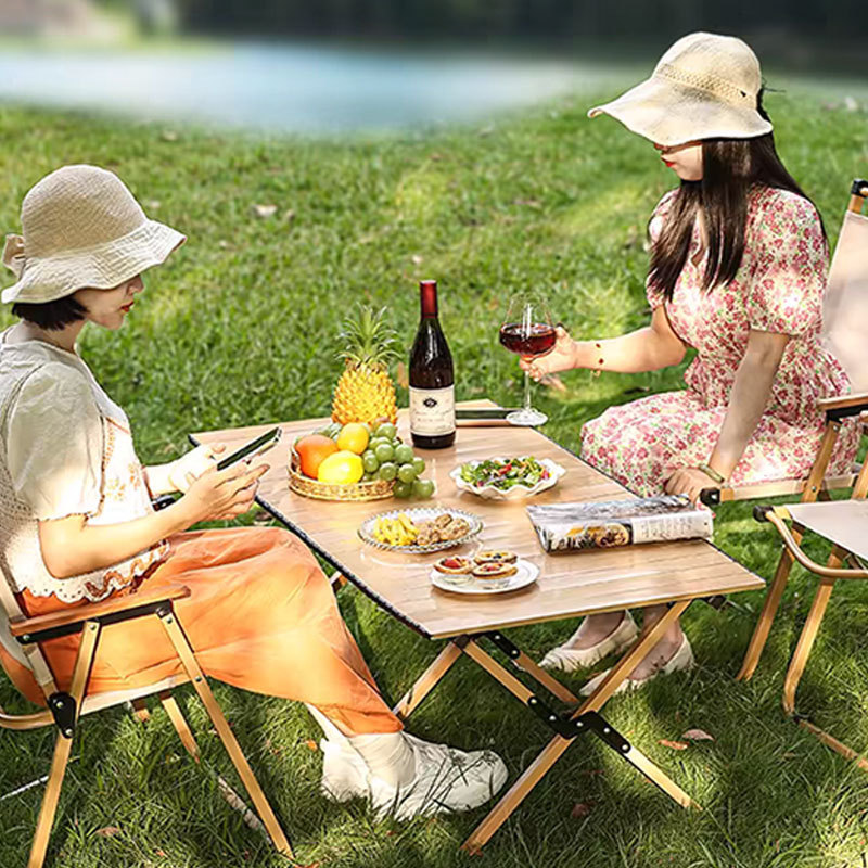 야외 접이식 테이블과 의자 휴대용 계란 롤 테이블 알루미늄 합금 양면 피크닉 캠핑 경량 전체 세트
