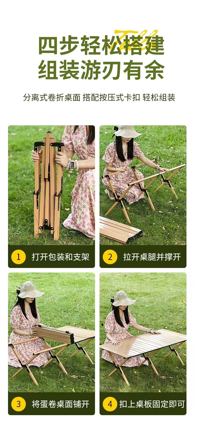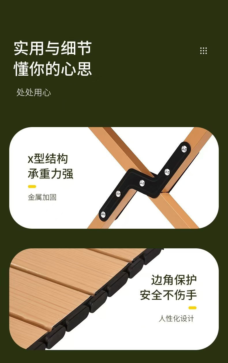 [이중 두꺼운 탄소강] 우드 컬러 120cm 길이 테이블 (두꺼운 수납 가방 포함) ✓