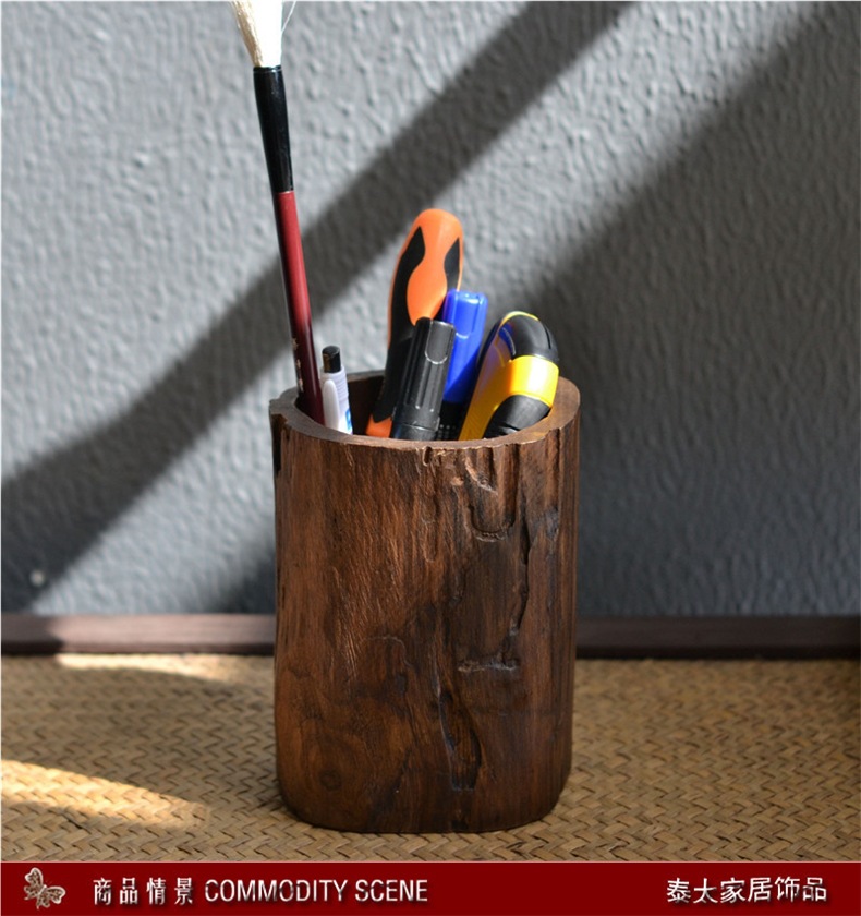 단단한 나무 펜 홀더 복고풍 홈 오피스 데스크탑 용품 선물 장식품 보관 상자 나무 실용성