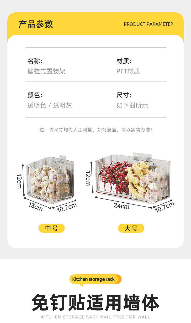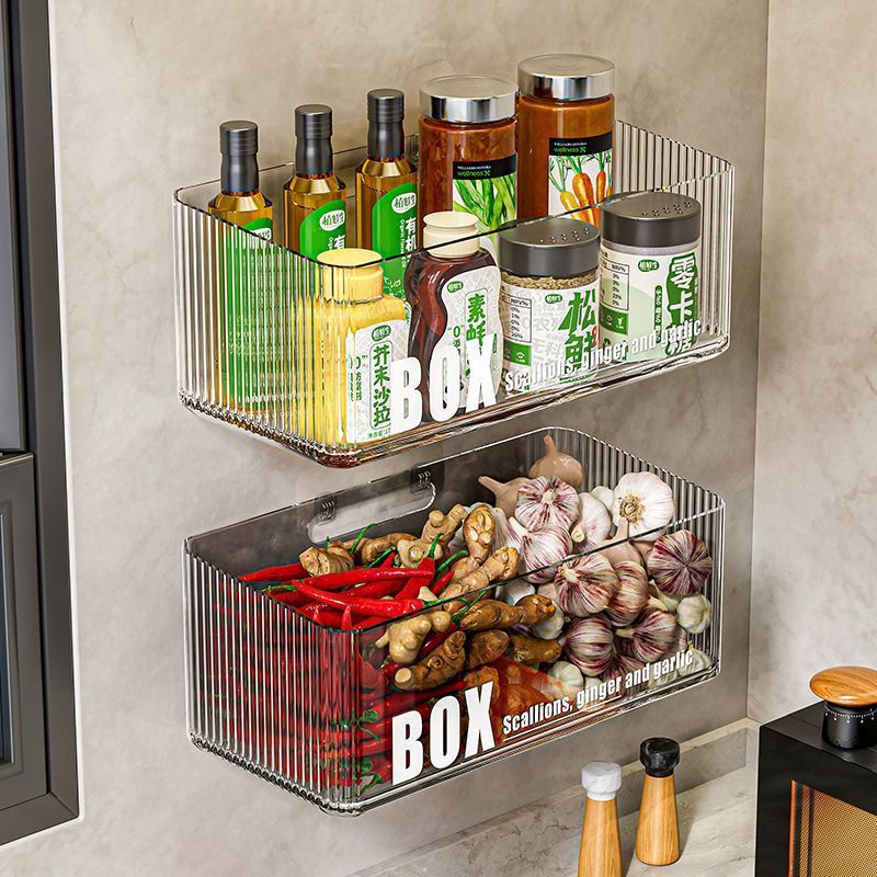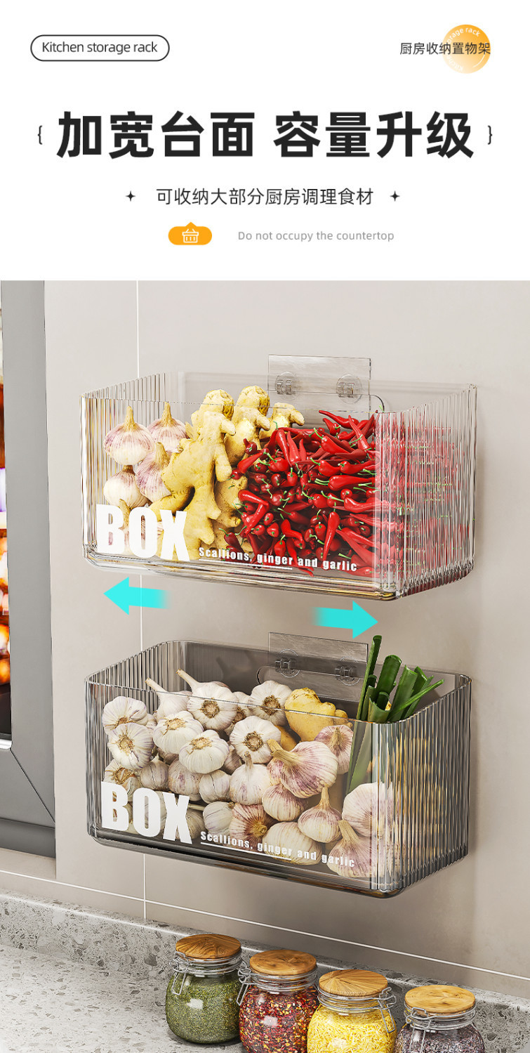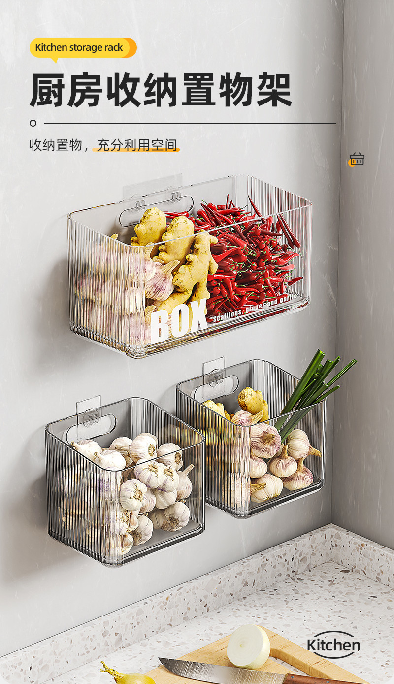 주방 벽걸이 선반 벽걸이형 수납함 양파 생강 마늘 조미료 용품 무타공 야채 바구니 수납