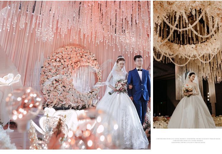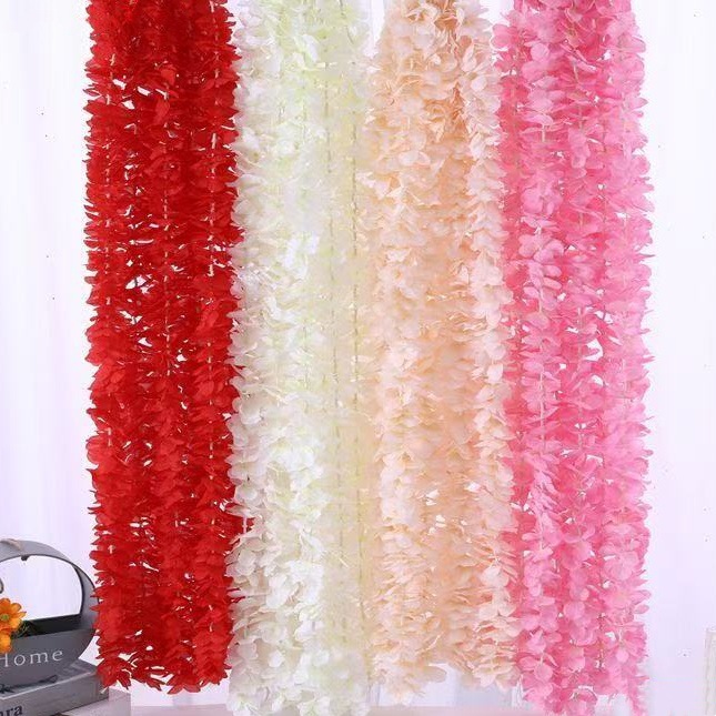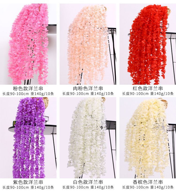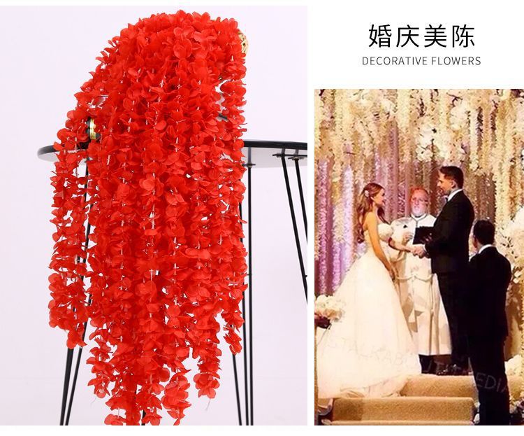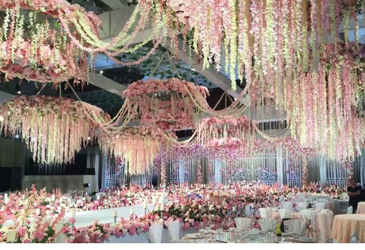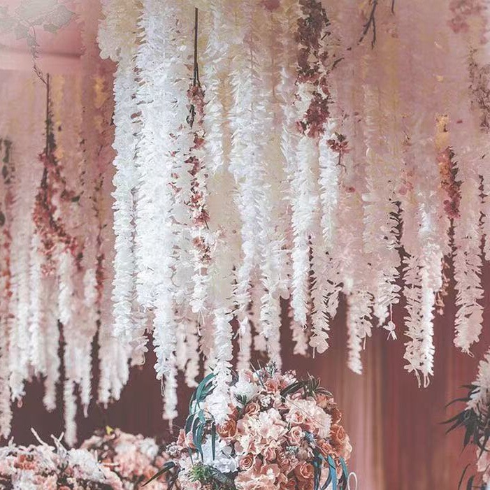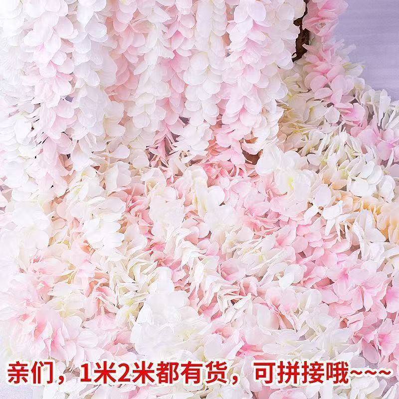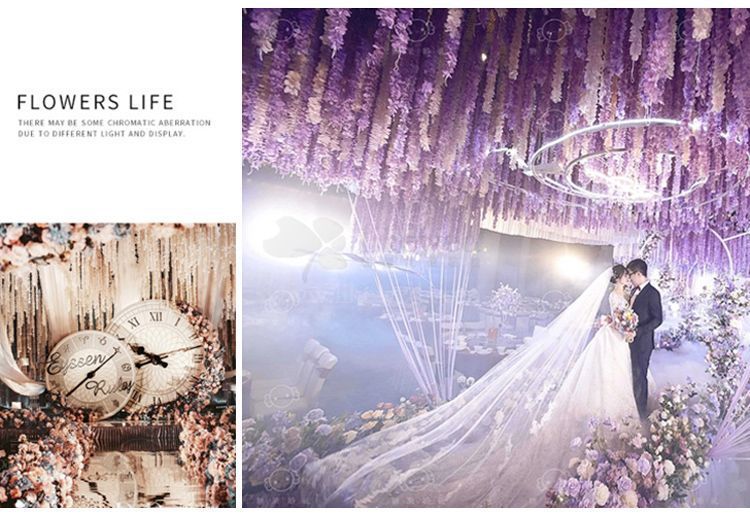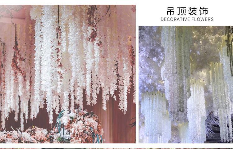 시뮬레이션 웨딩 천장 수국 등나무 꽃 웨딩홀 보라색 등나무 난초 꽃 줄 시뮬레이션 꽃 장식 등나무