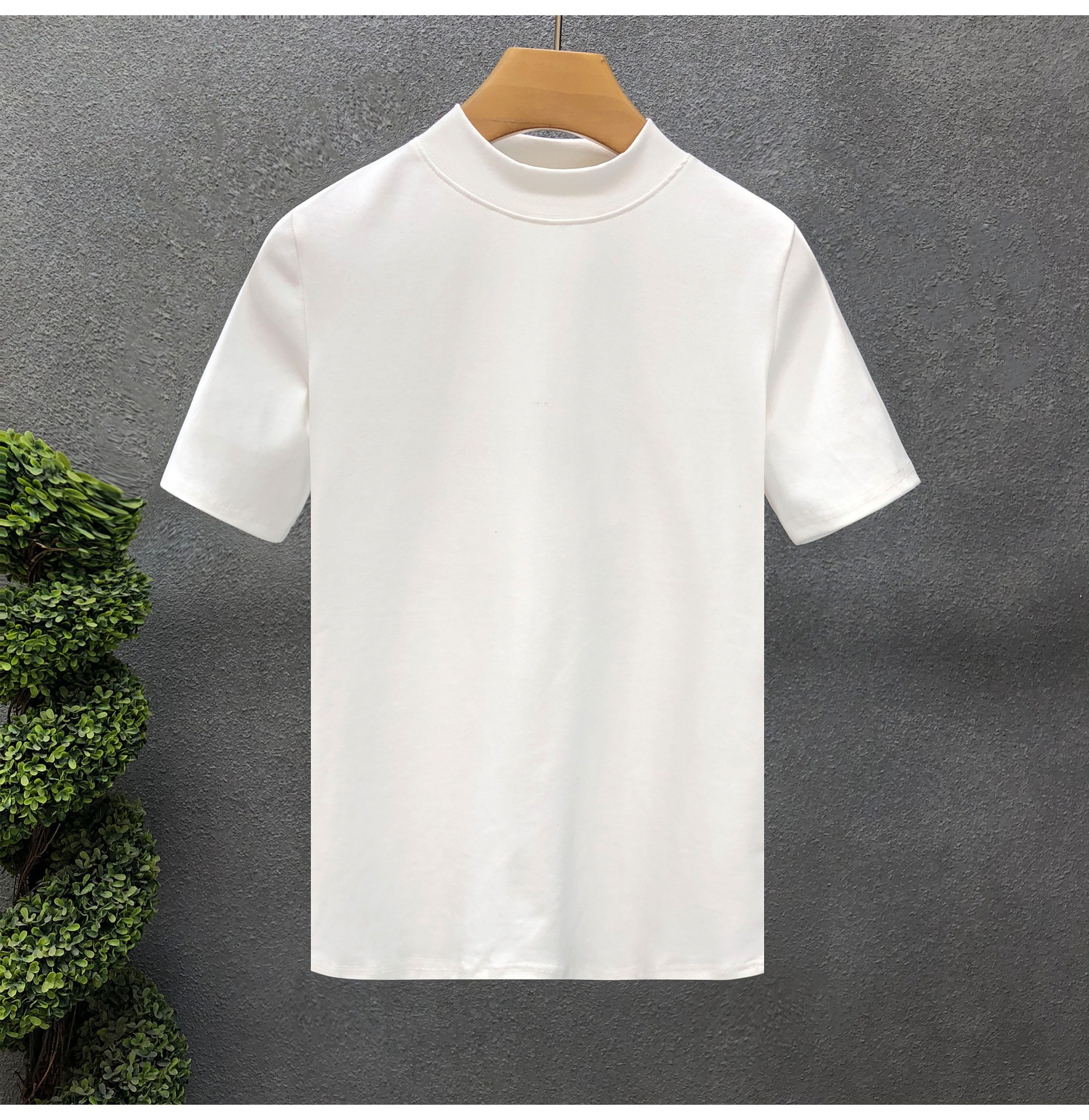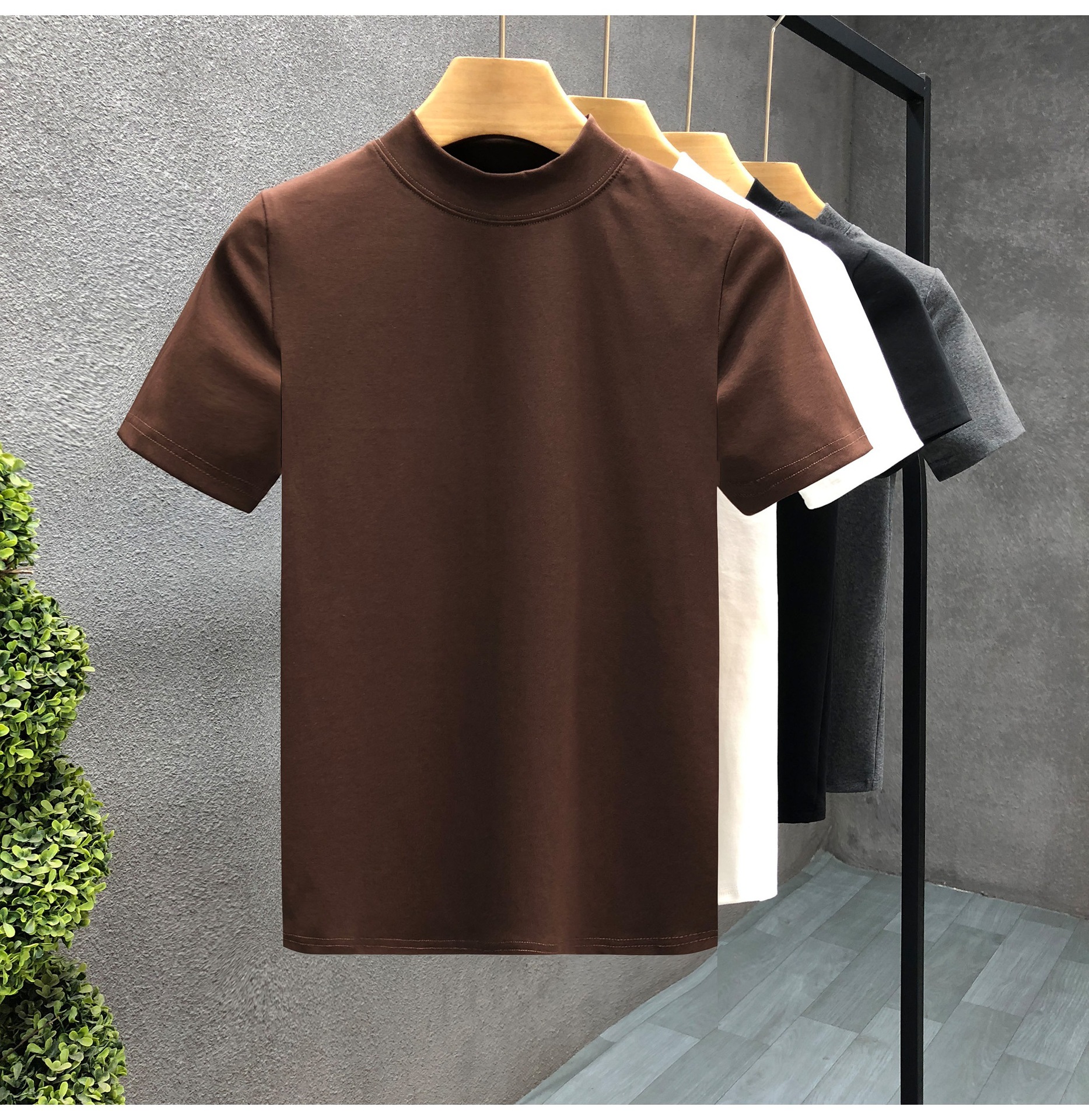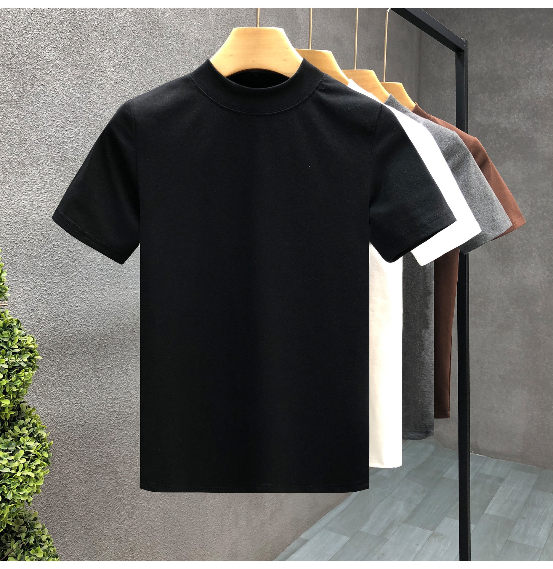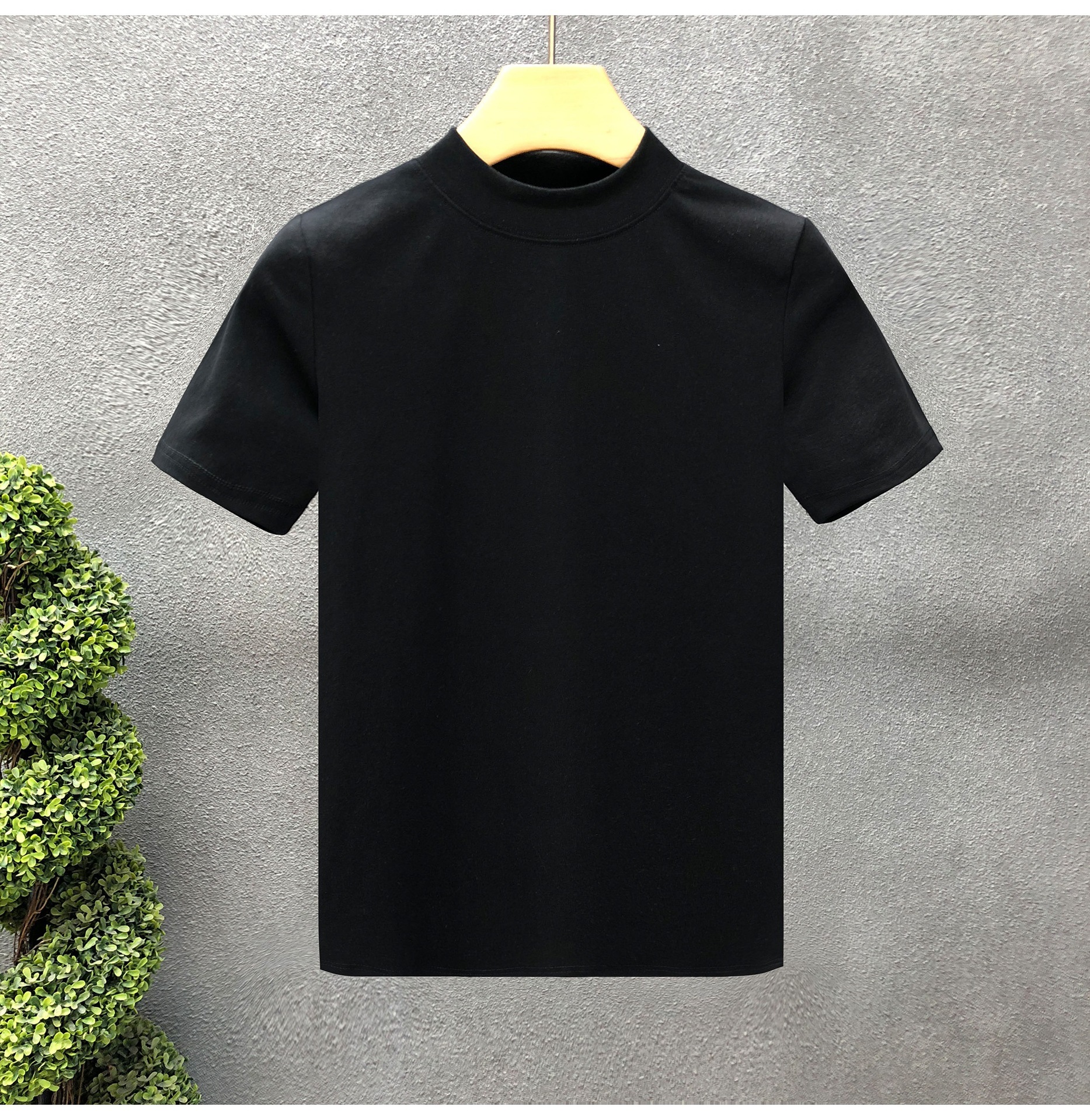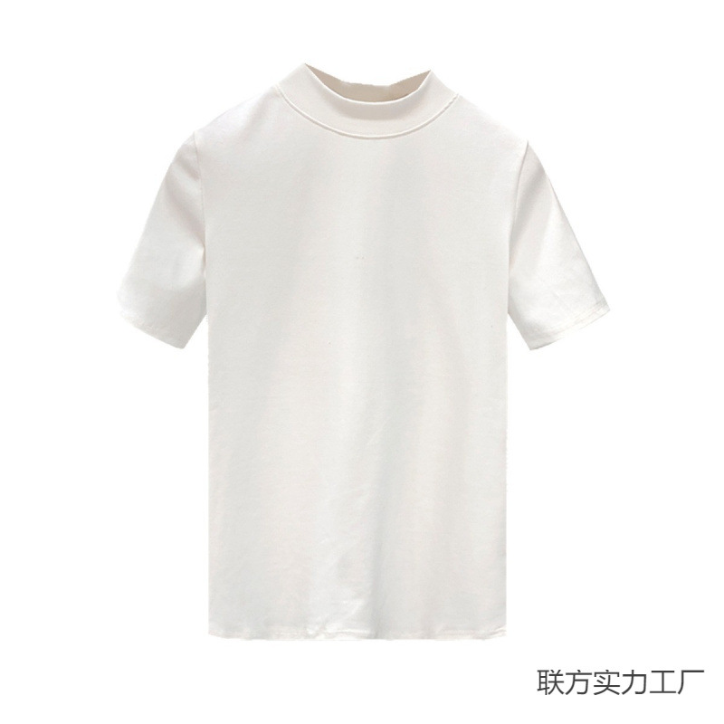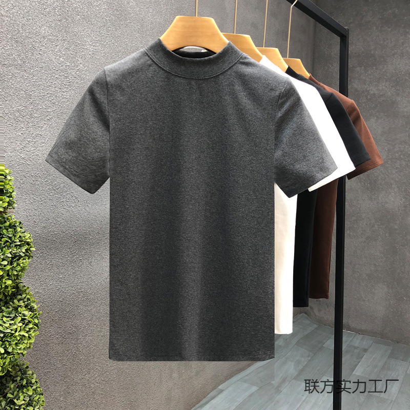 소년을위한 간단한 솔리드 컬러 하프 터틀넥 반팔 티셔츠 2024 여름 새로운 슬림핏 싱글웨어 남성용 하프 슬리브