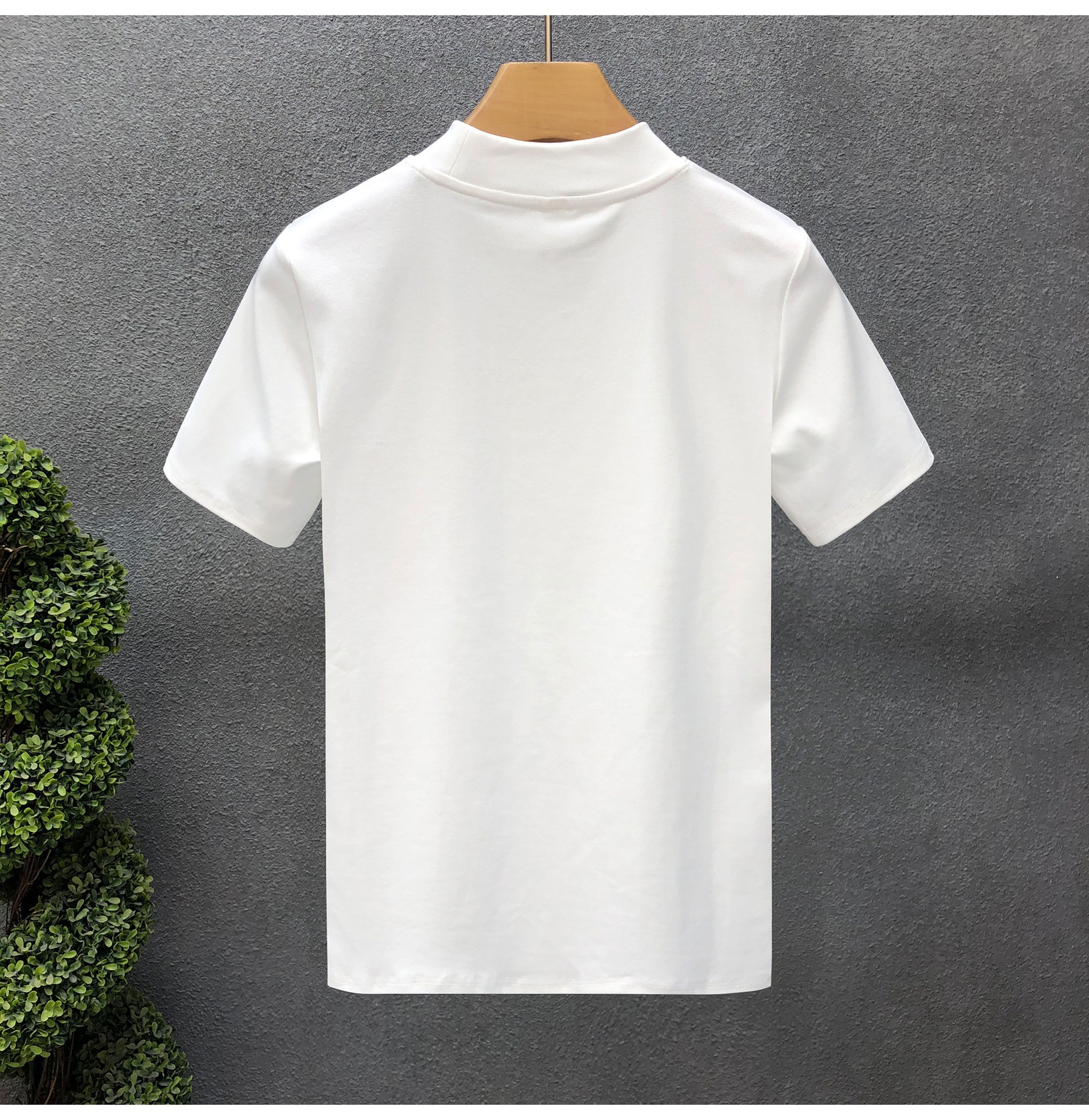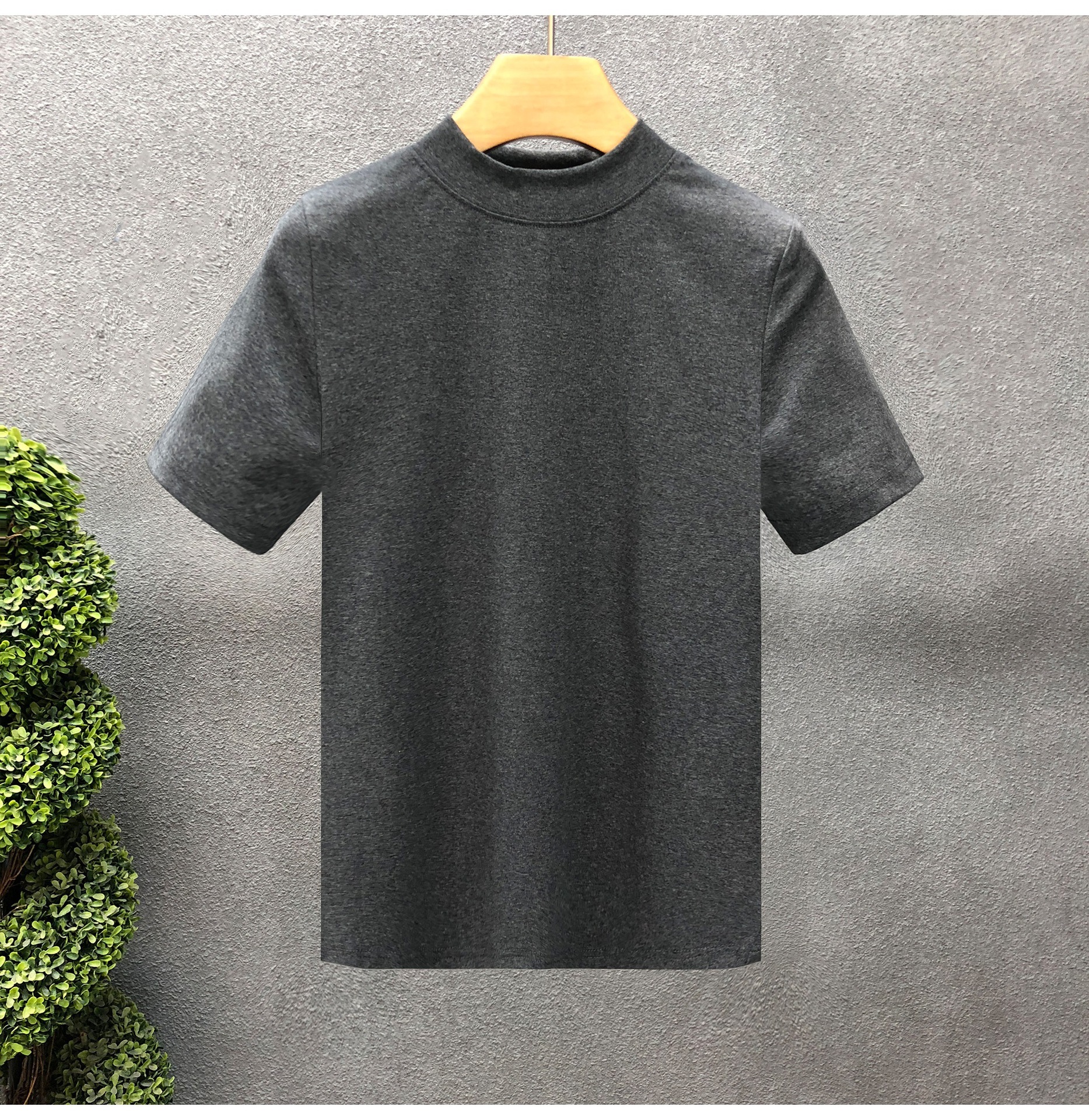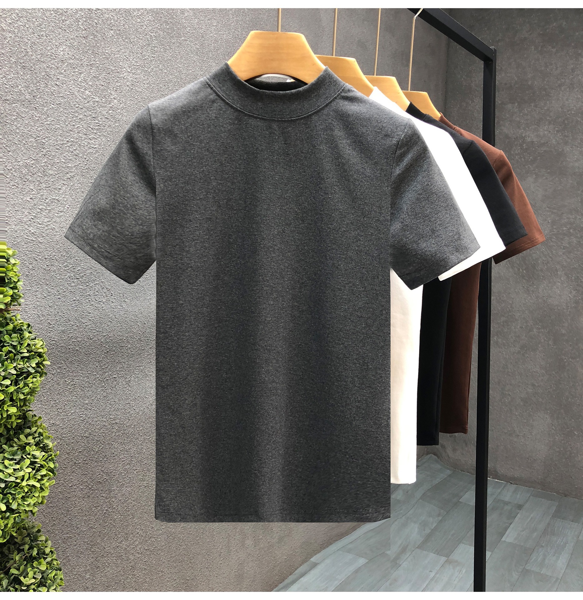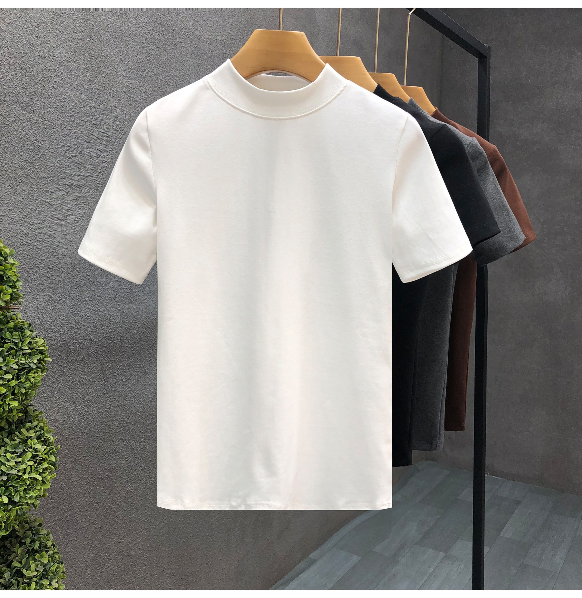소년을위한 간단한 솔리드 컬러 하프 터틀넥 반팔 티셔츠 2024 여름 새로운 슬림핏 싱글웨어 남성용 하프 슬리브