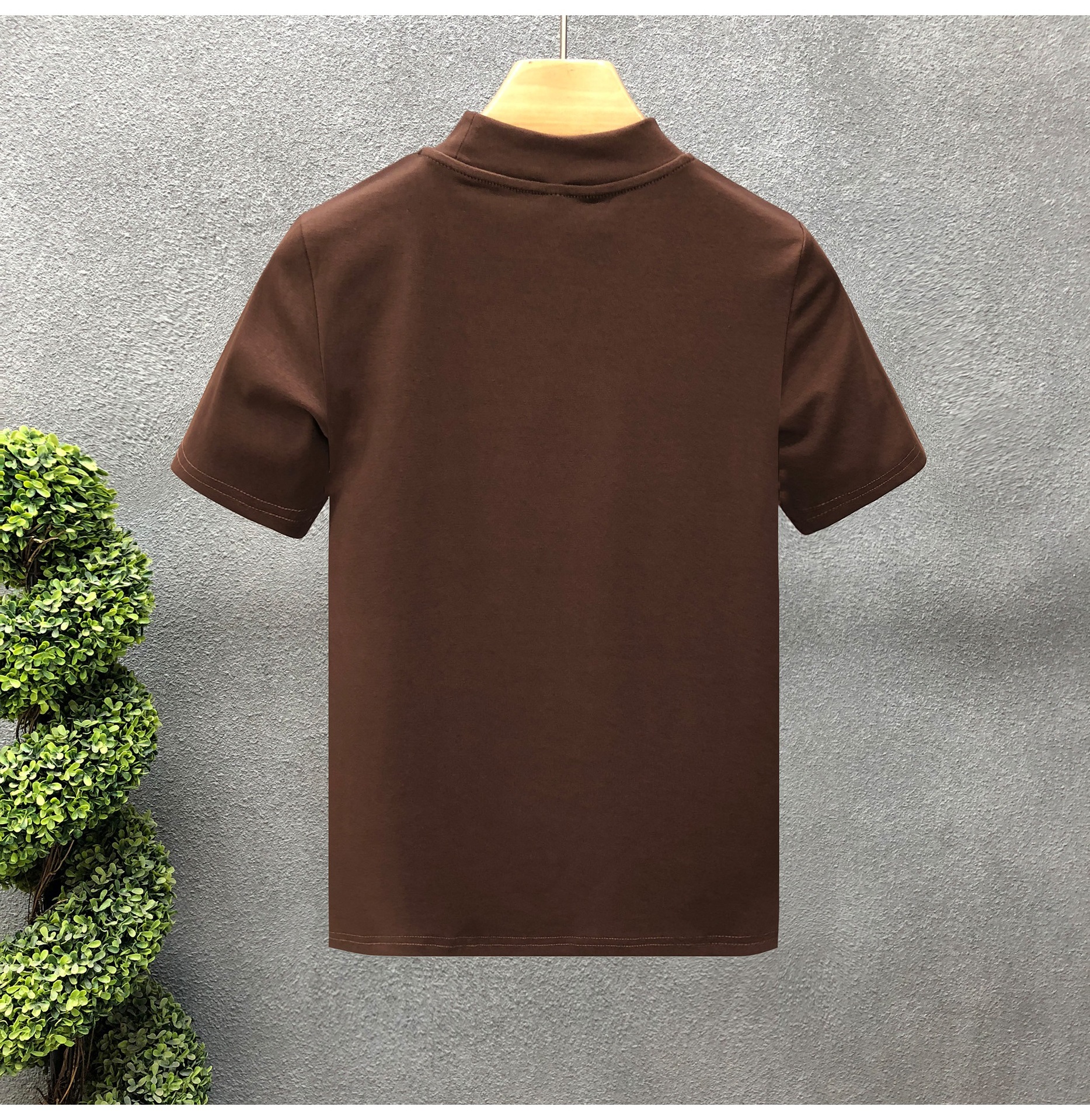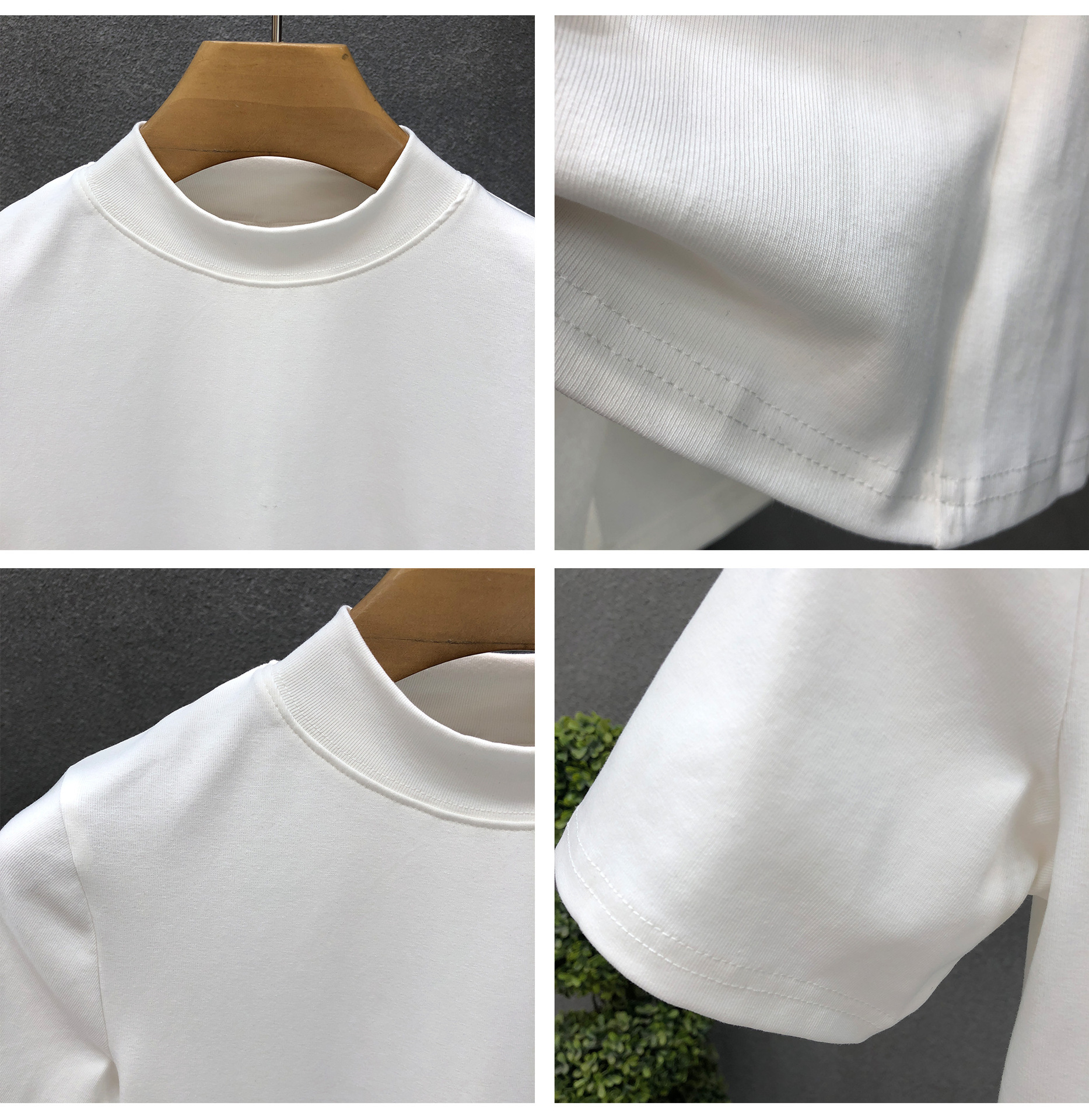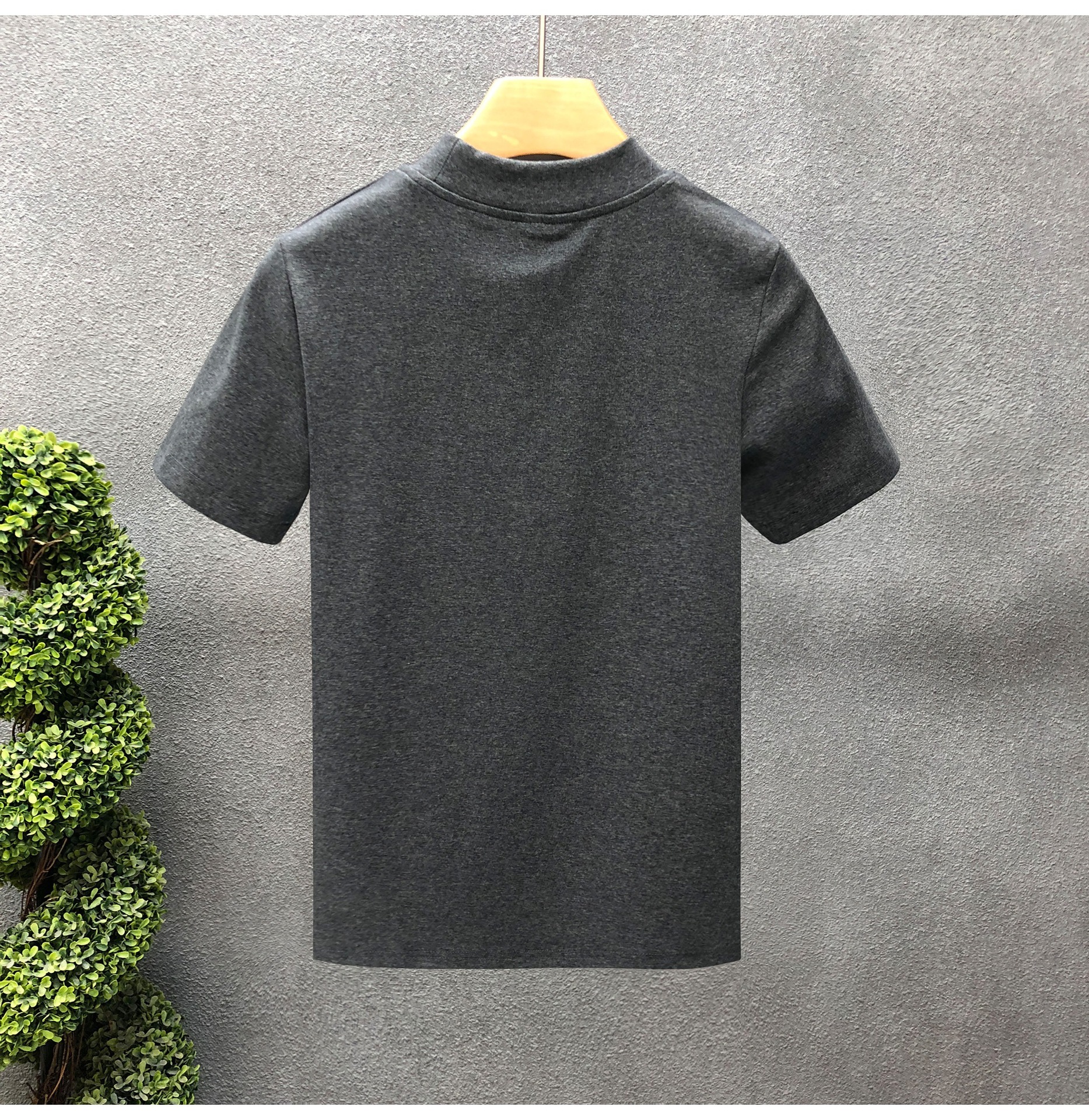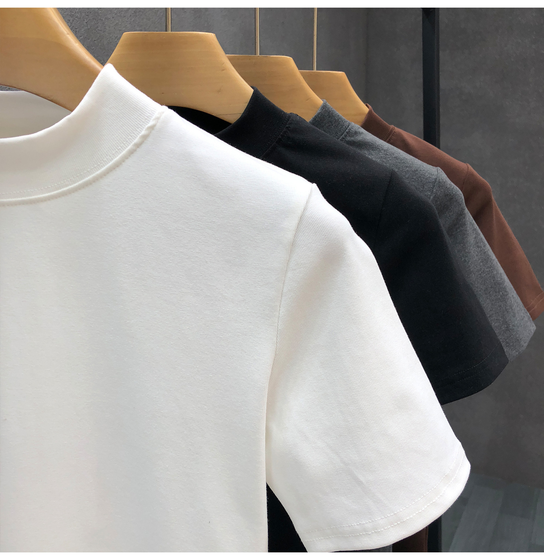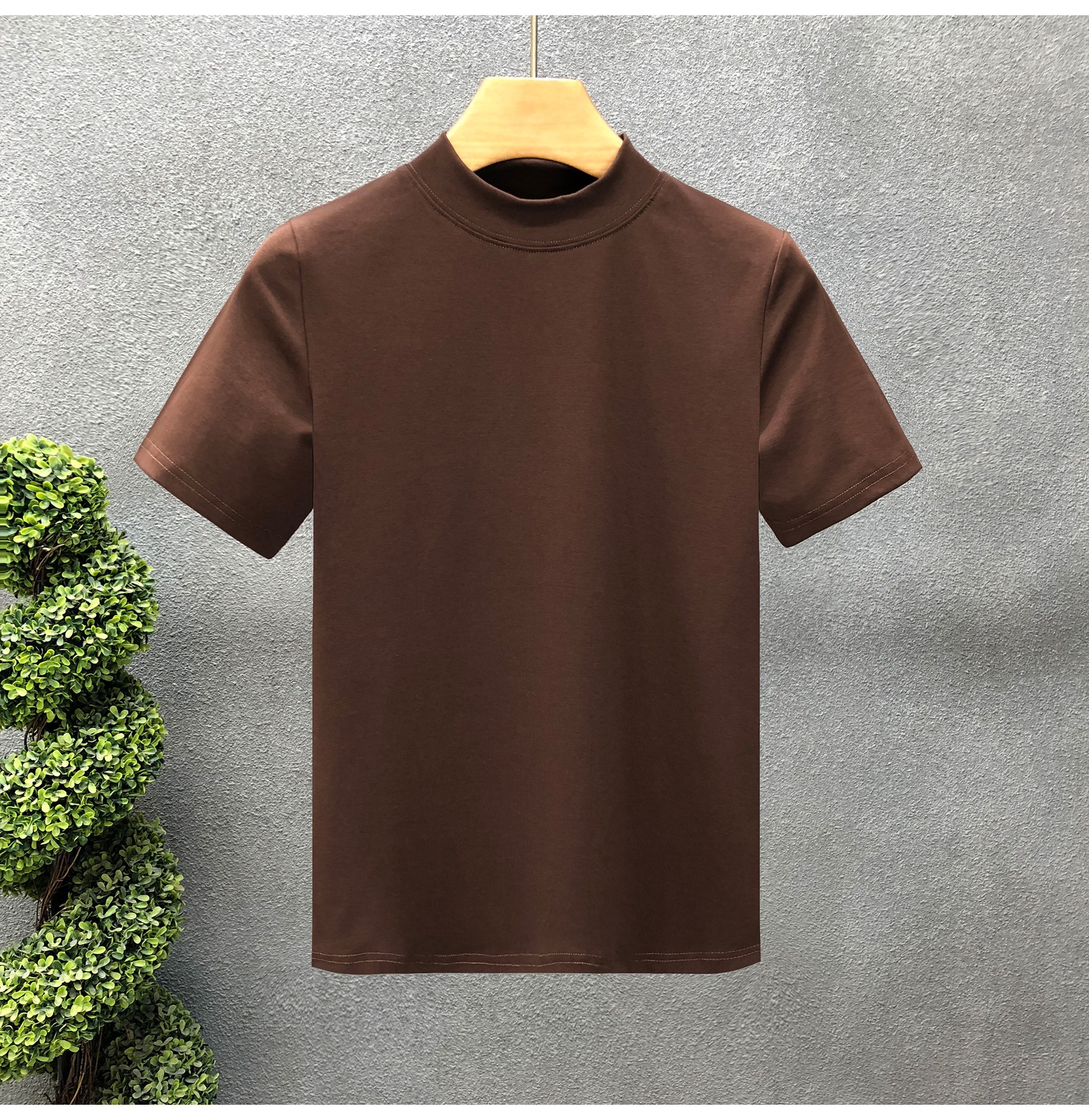 소년을위한 간단한 솔리드 컬러 하프 터틀넥 반팔 티셔츠 2024 여름 새로운 슬림핏 싱글웨어 남성용 하프 슬리브