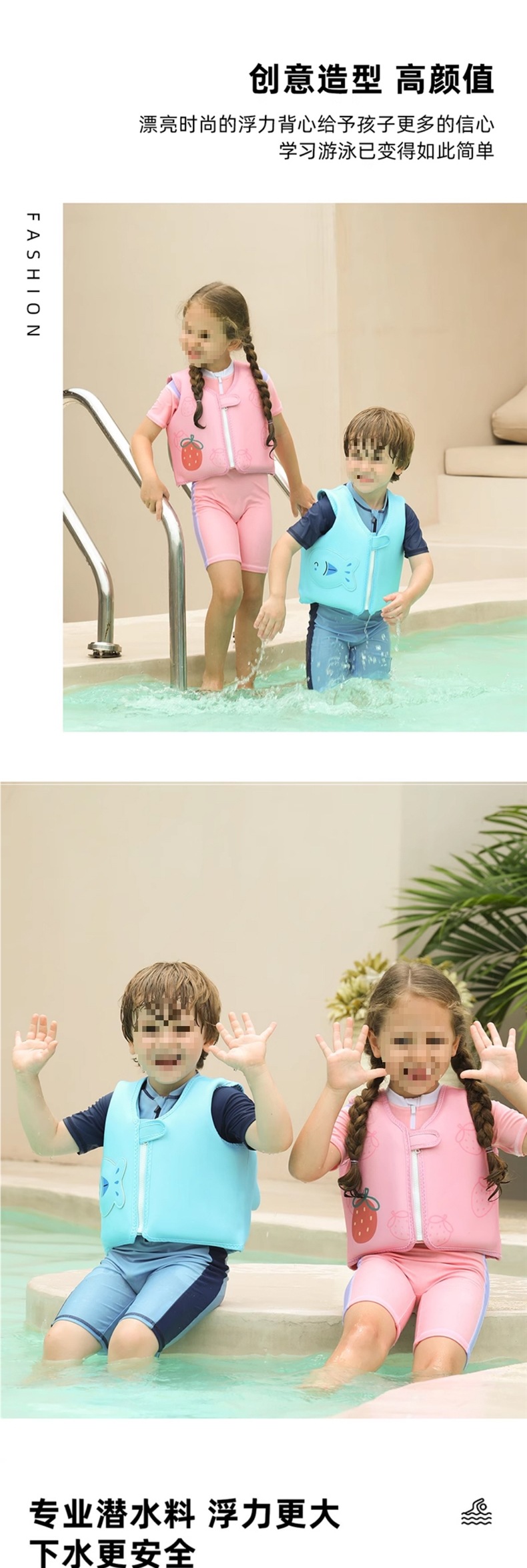 [업그레이드된 부력슈트+팔세트] 체리핑크 스타일 [아동복 10-22.5kg 권장]
