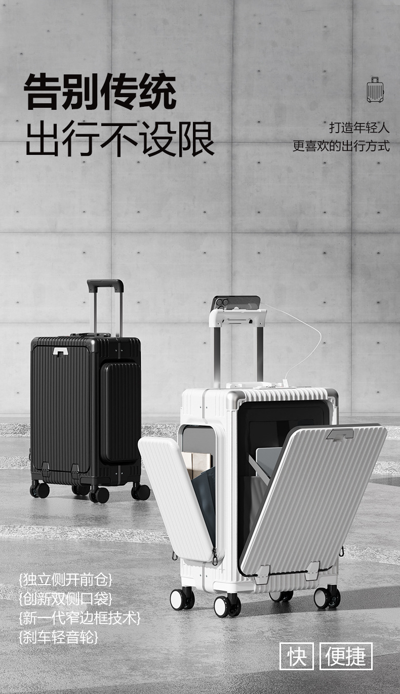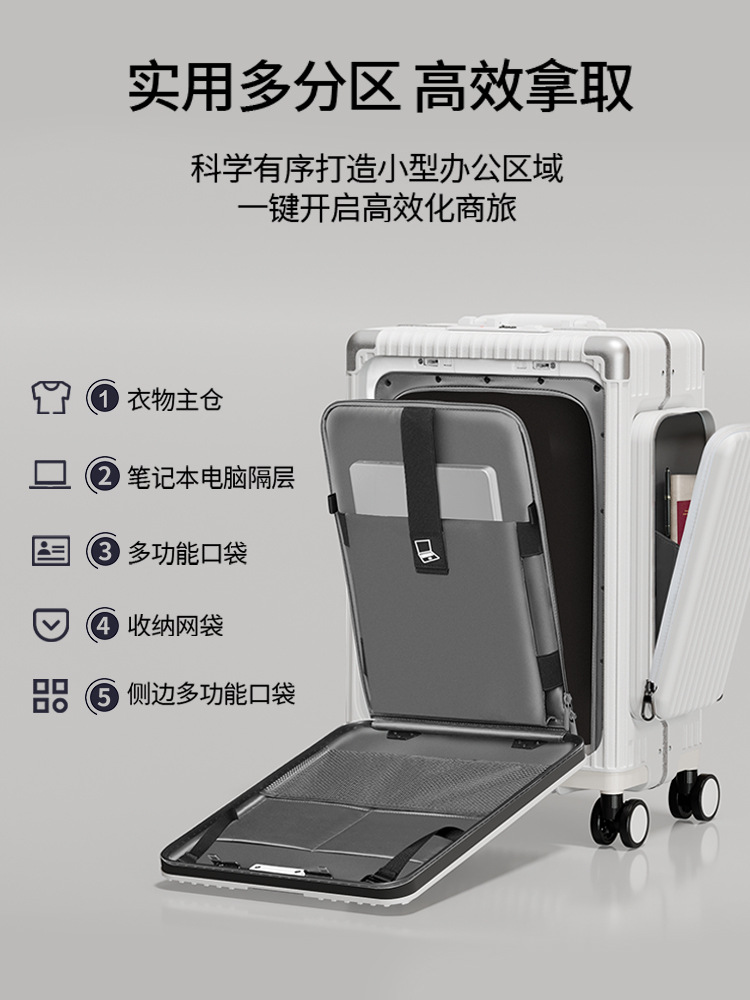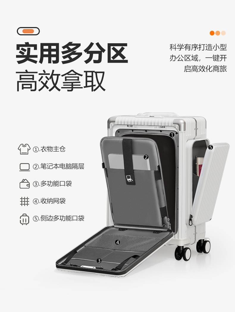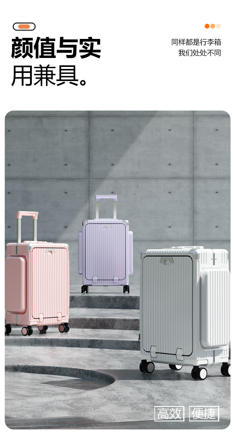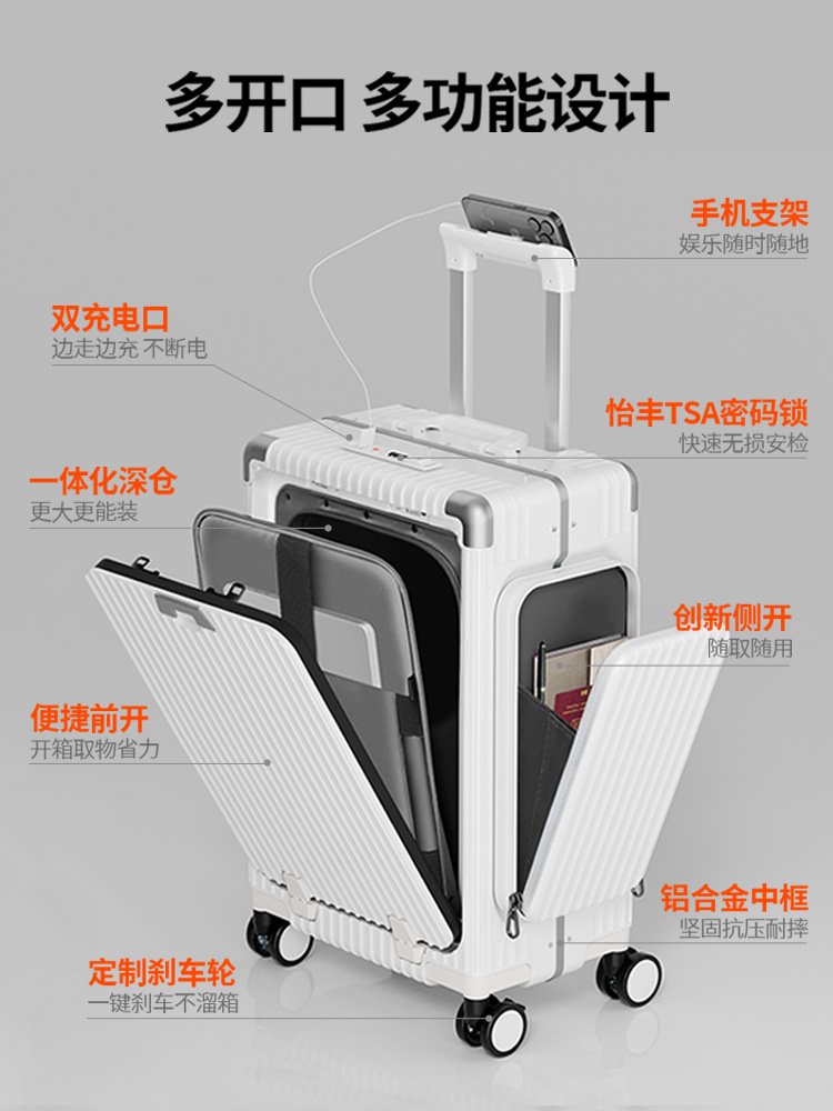 새로운 3단 다기능 전면 오픈 뚜껑 가방 20inch PC 양면 가방 대용량 여행 탑승 트롤리 케이스