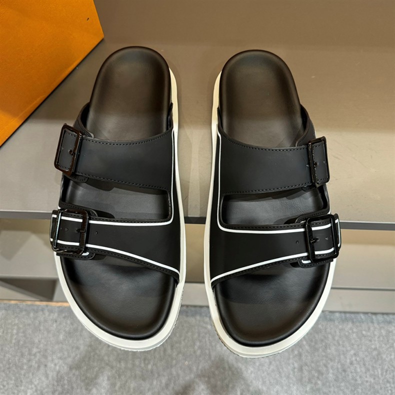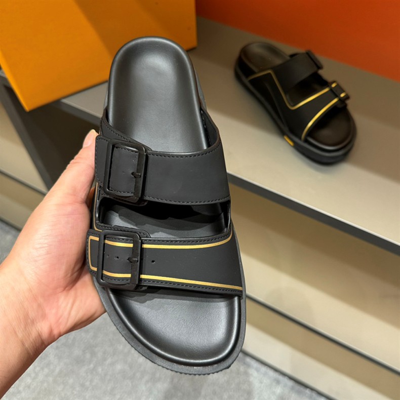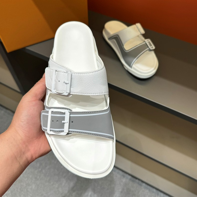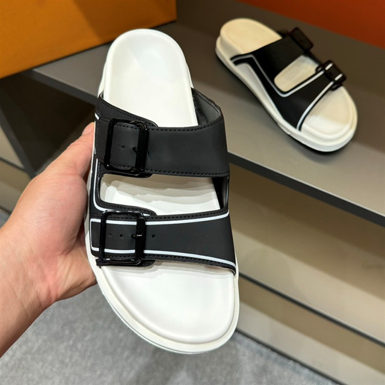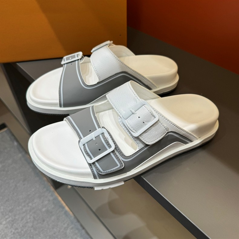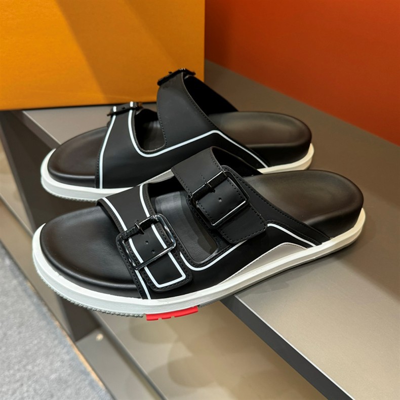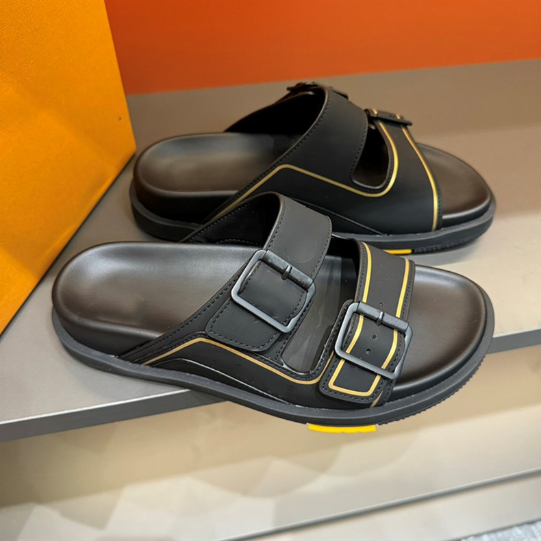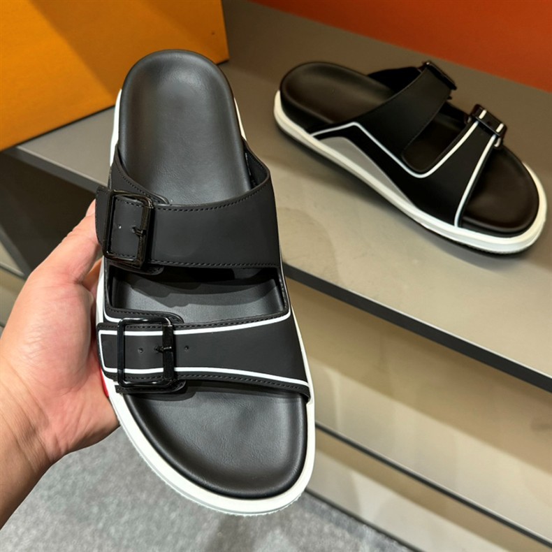 남성용 패셔너블 슬리퍼, 부드러운 밑창, 편안한 아우터, 천연가죽 비치슈즈, 유럽 스탠드 라이트 럭셔리 트렌디 브랜드 더블 스트랩 캐주얼 패션 슈즈