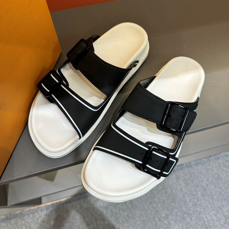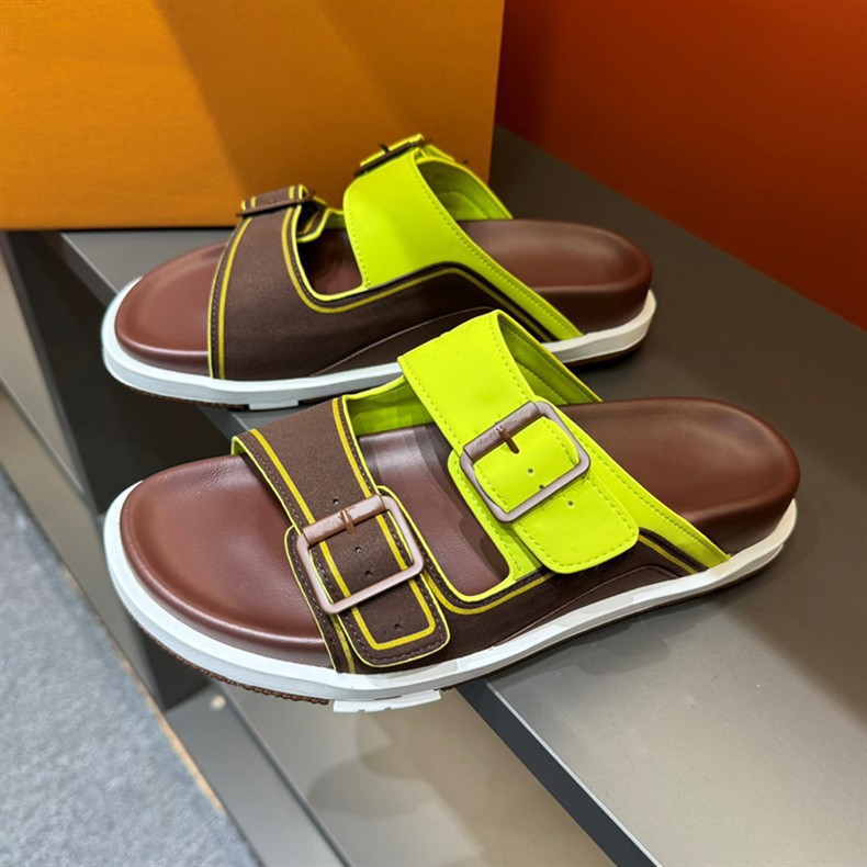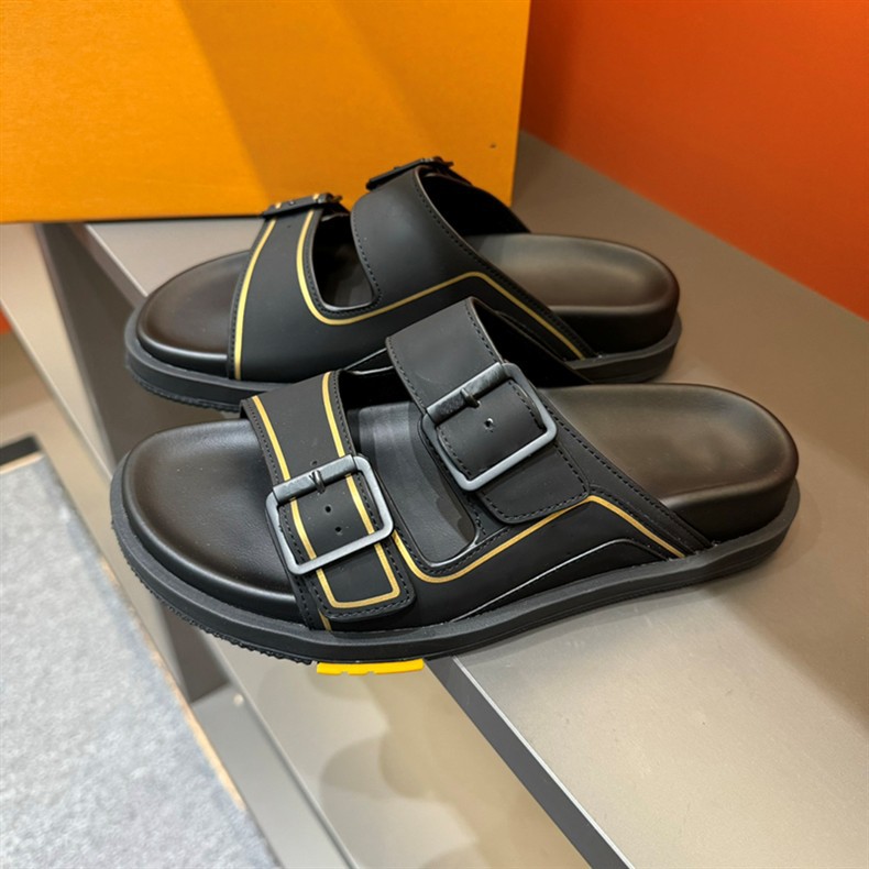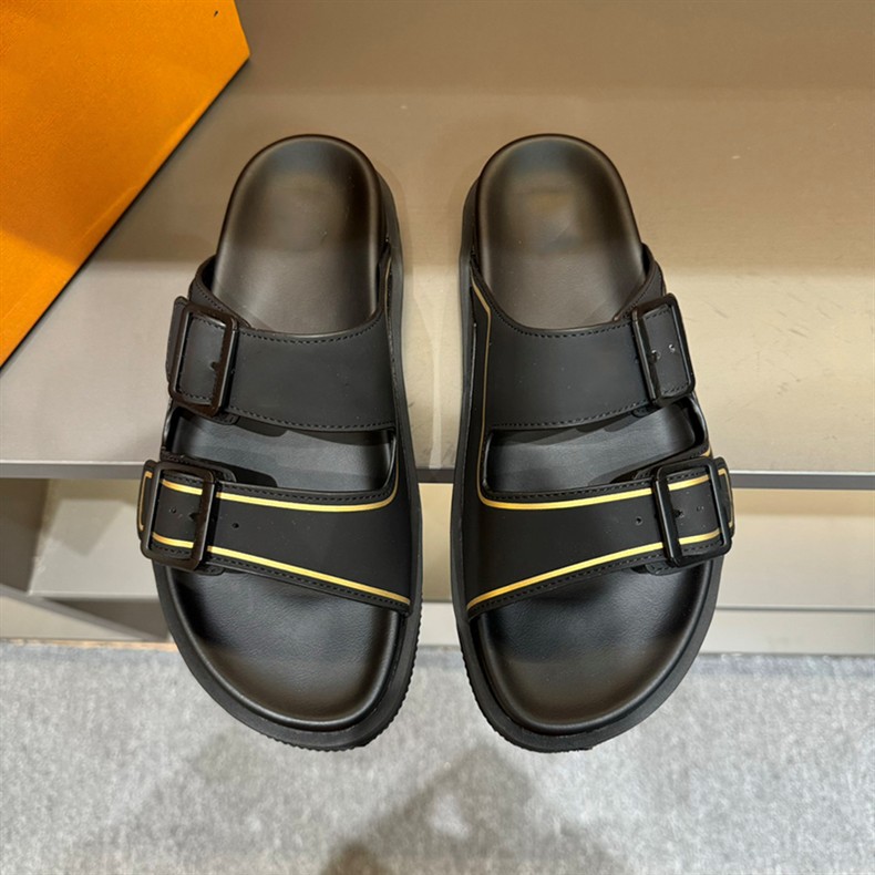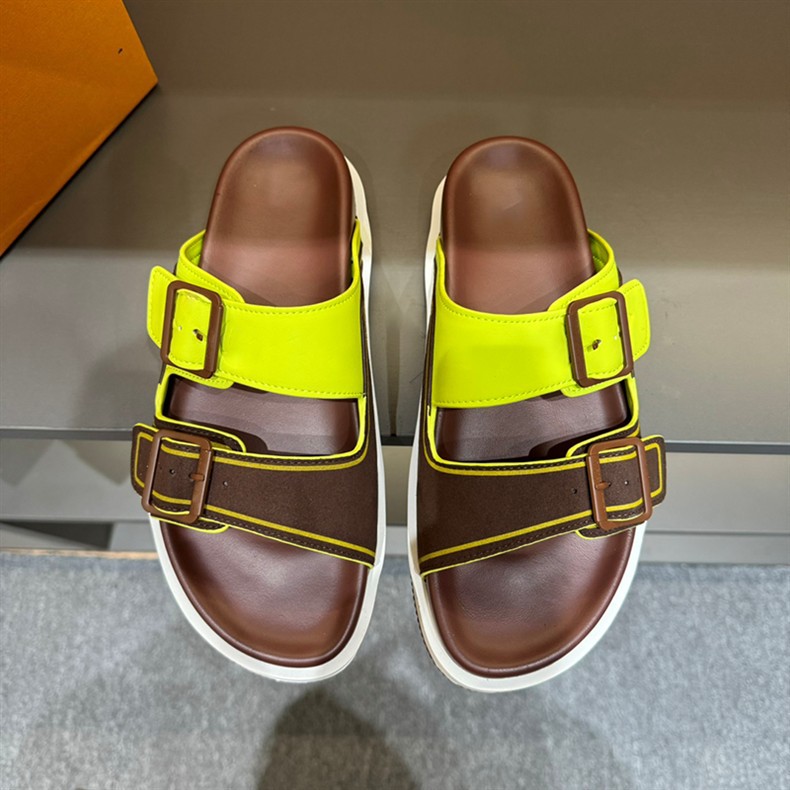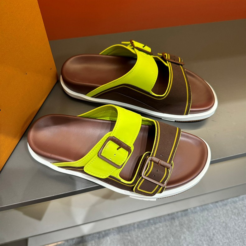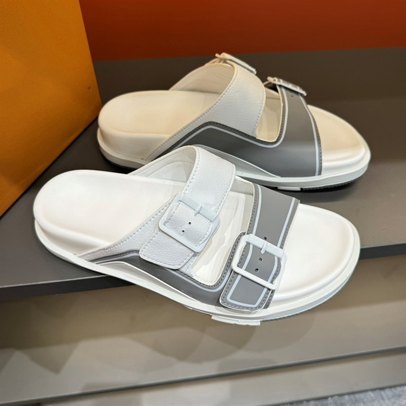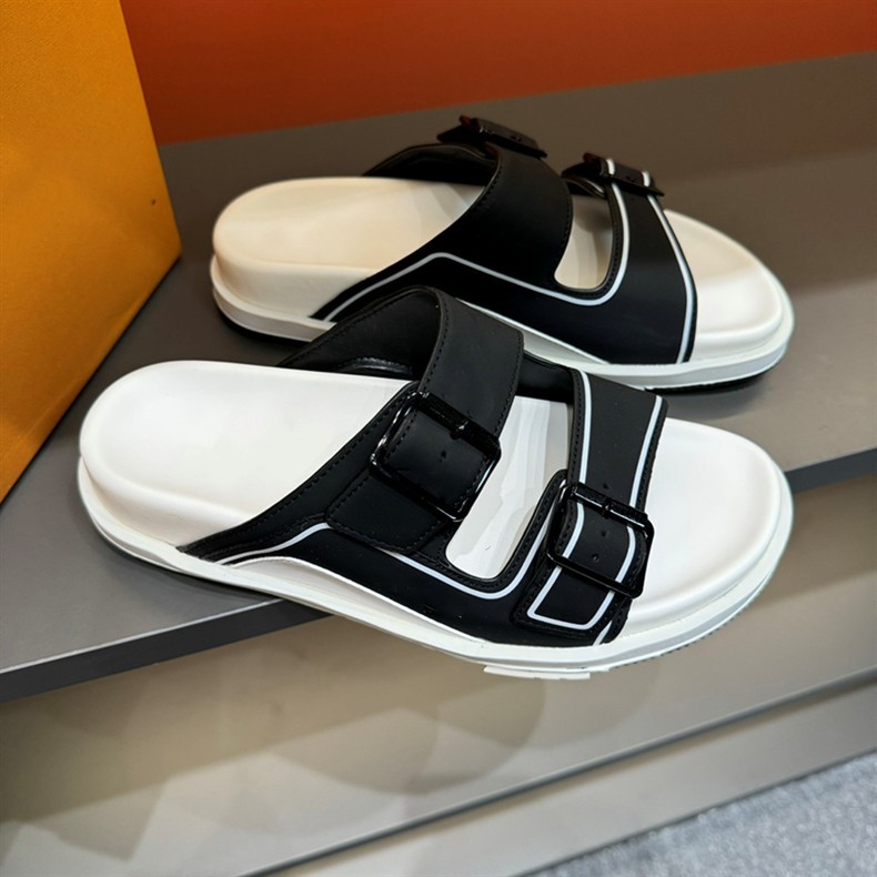 남성용 패셔너블 슬리퍼, 부드러운 밑창, 편안한 아우터, 천연가죽 비치슈즈, 유럽 스탠드 라이트 럭셔리 트렌디 브랜드 더블 스트랩 캐주얼 패션 슈즈