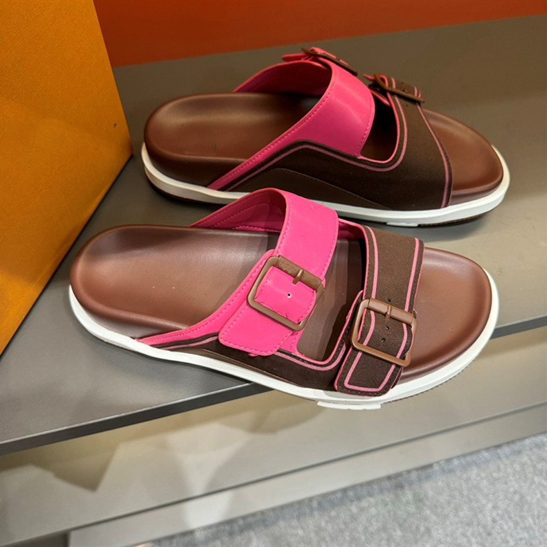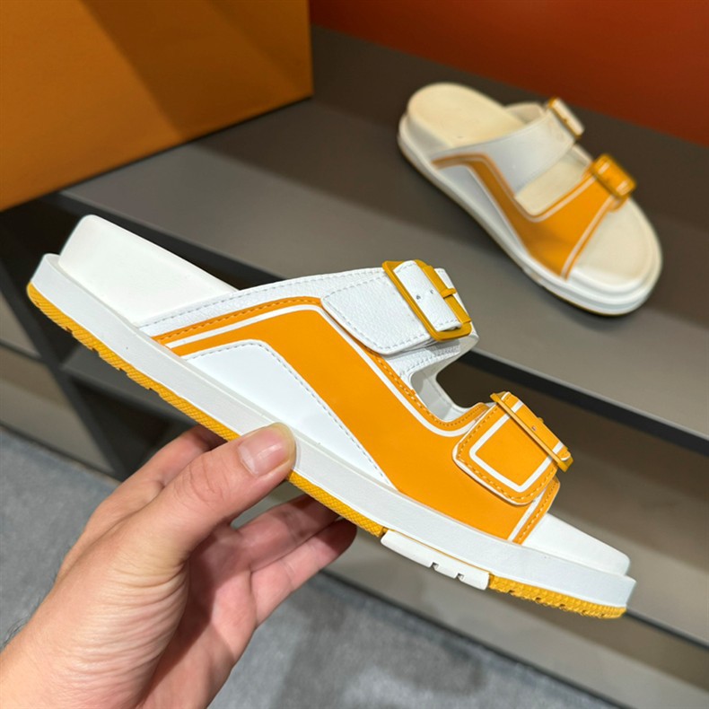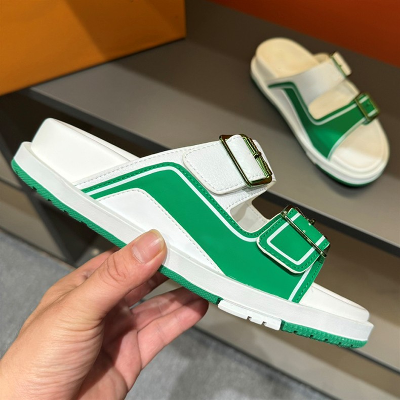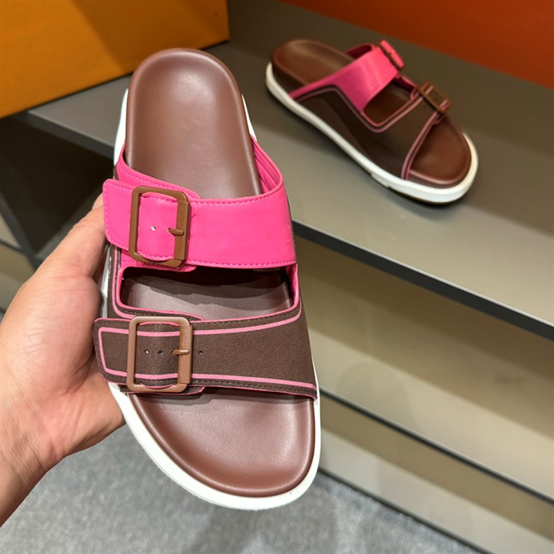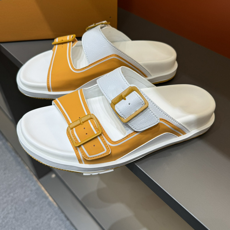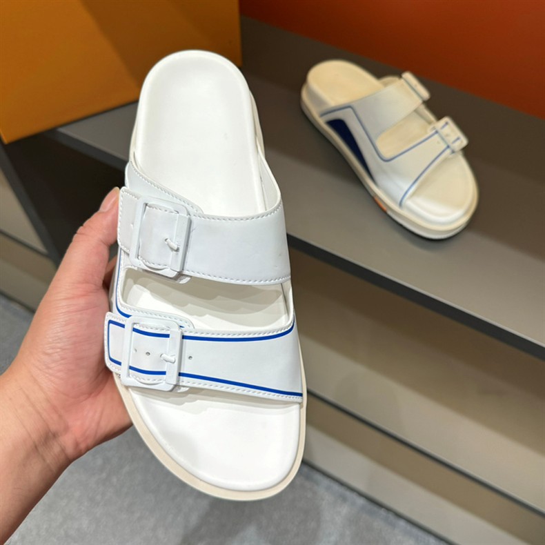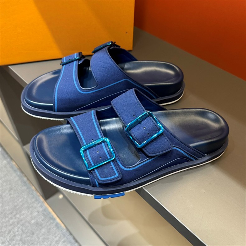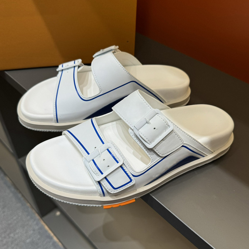 남성용 패셔너블 슬리퍼, 부드러운 밑창, 편안한 아우터, 천연가죽 비치슈즈, 유럽 스탠드 라이트 럭셔리 트렌디 브랜드 더블 스트랩 캐주얼 패션 슈즈