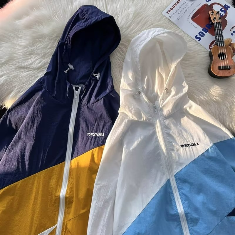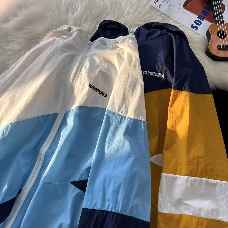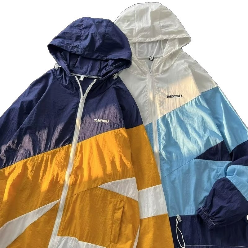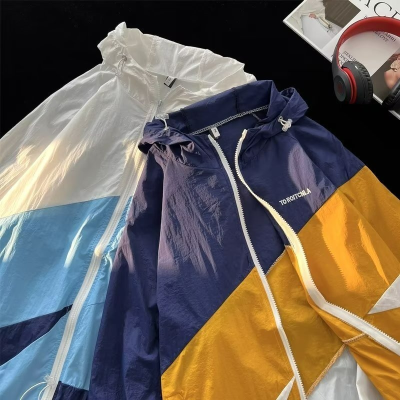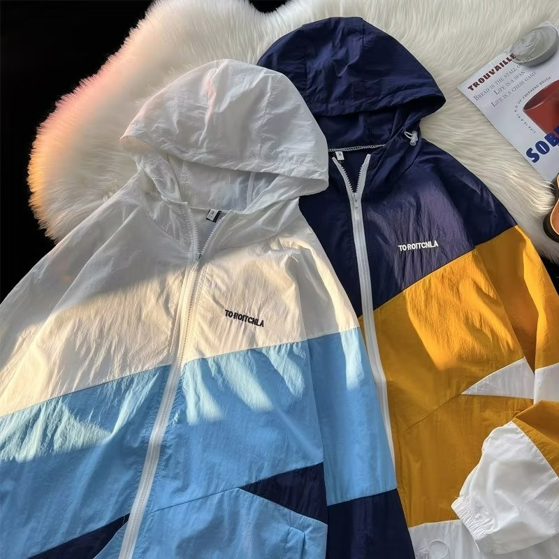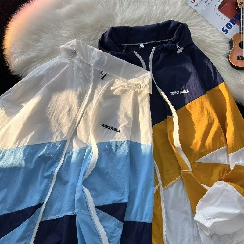 여름 컬러 매칭 도매 윈드 브레이커 남성과 여성을위한 태양 보호 통기성 얼음 실크 피부 의류 안티 UV 태양 보호 셔츠 재킷 유행