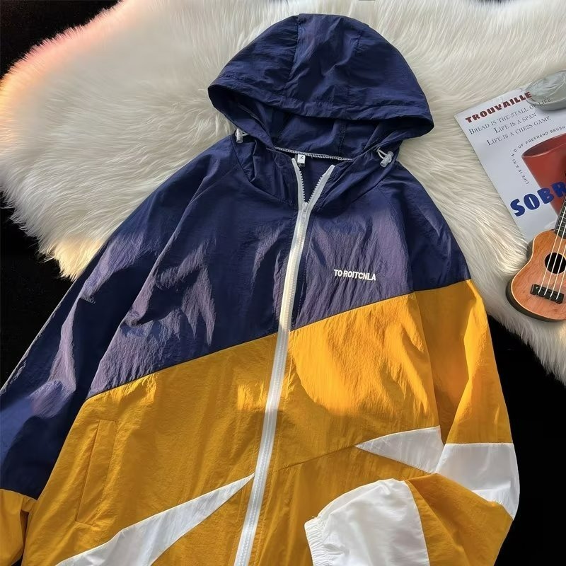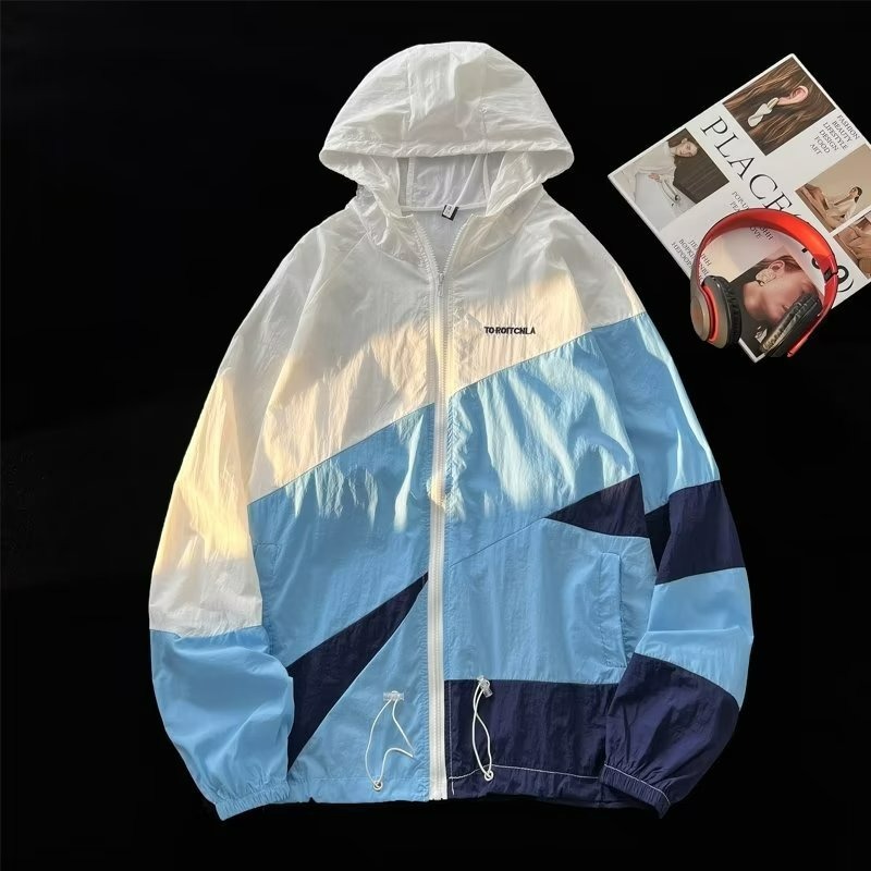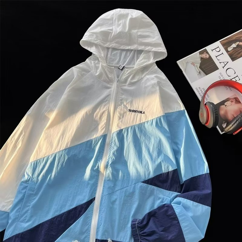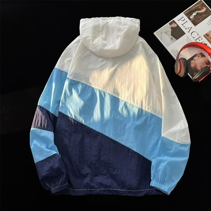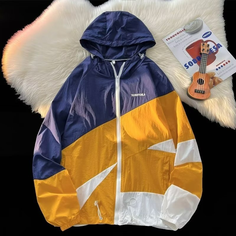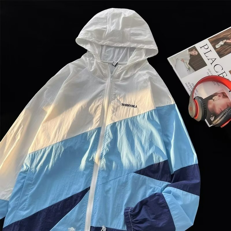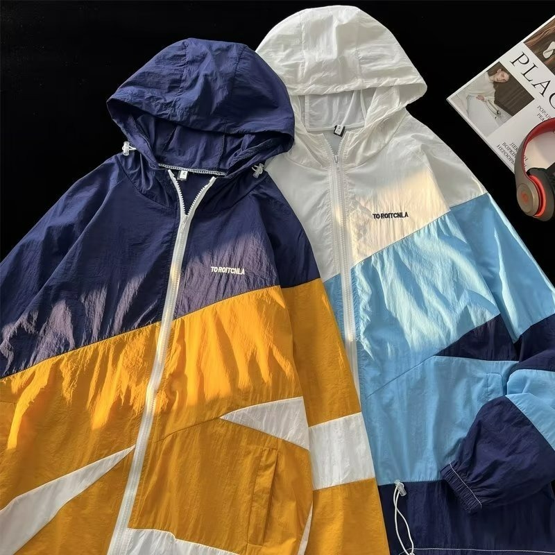 여름 컬러 매칭 도매 윈드 브레이커 남성과 여성을위한 태양 보호 통기성 얼음 실크 피부 의류 안티 UV 태양 보호 셔츠 재킷 유행