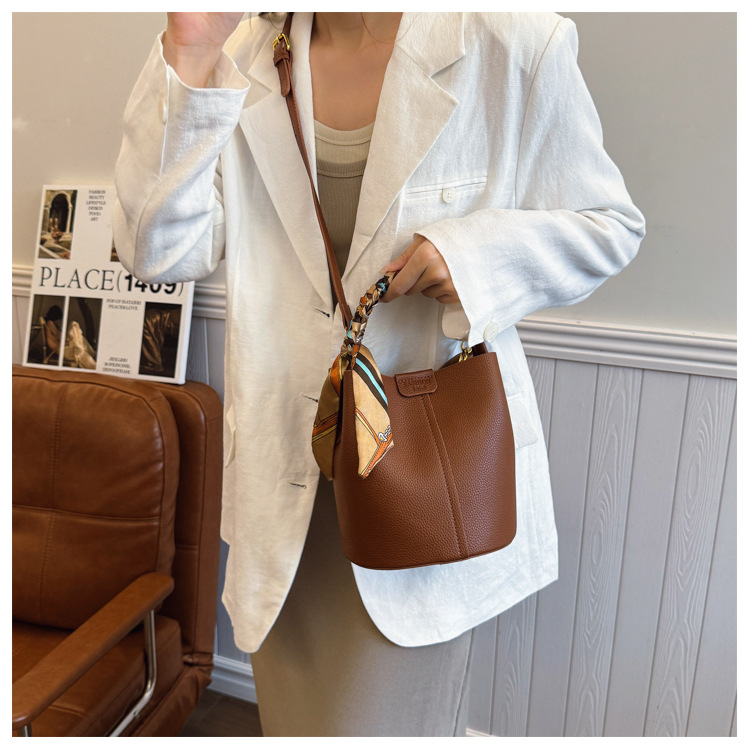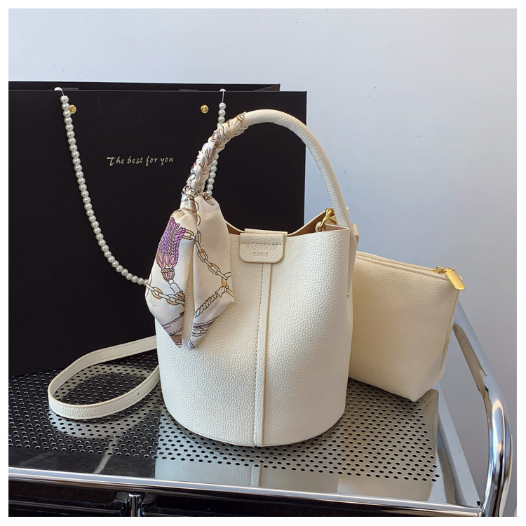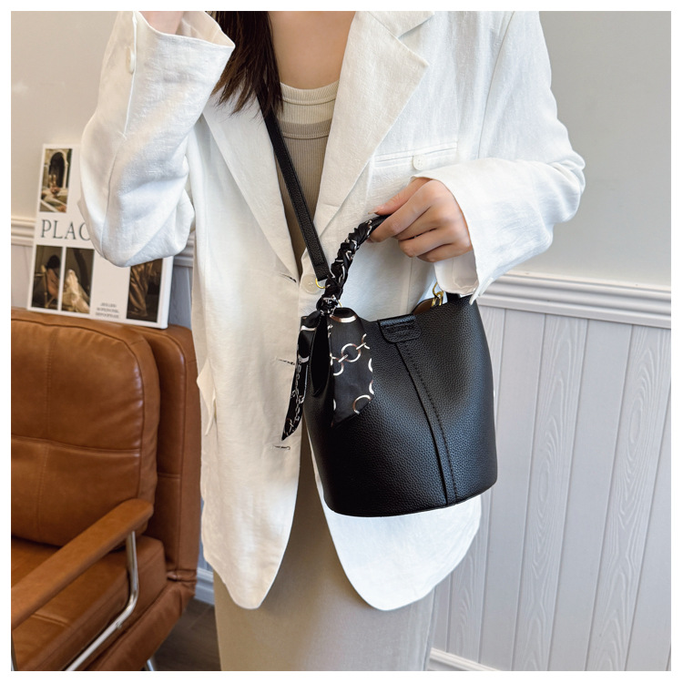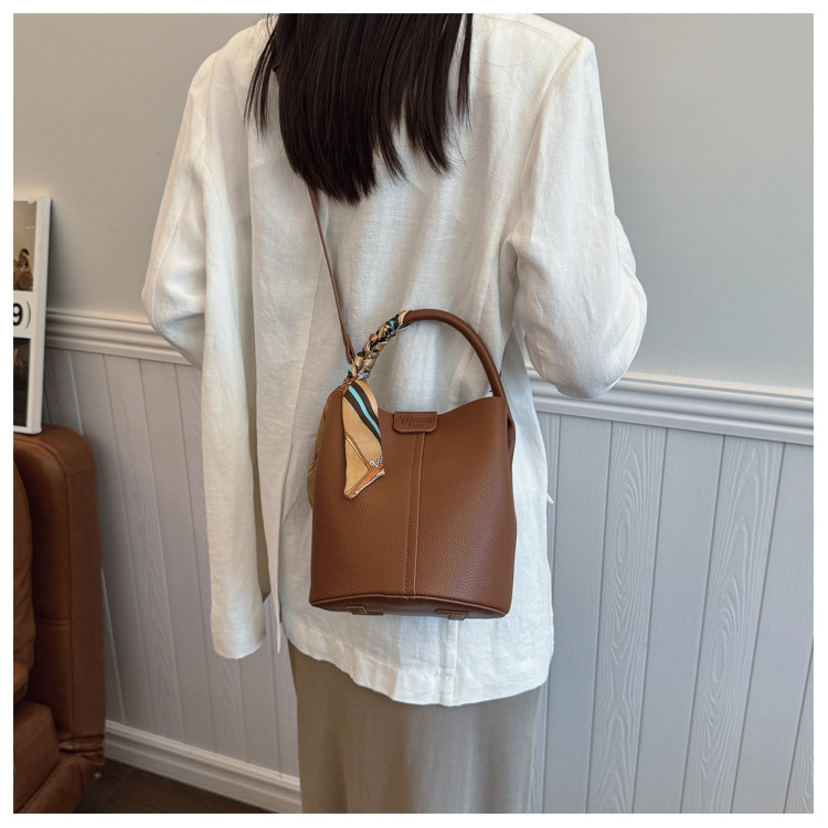 국경 간 여름 패션 핸드백 단색 2025 새로운 프랑스 스타일 작은 신선한 어깨 크로스 바디 백 외국 스타일 버킷 백